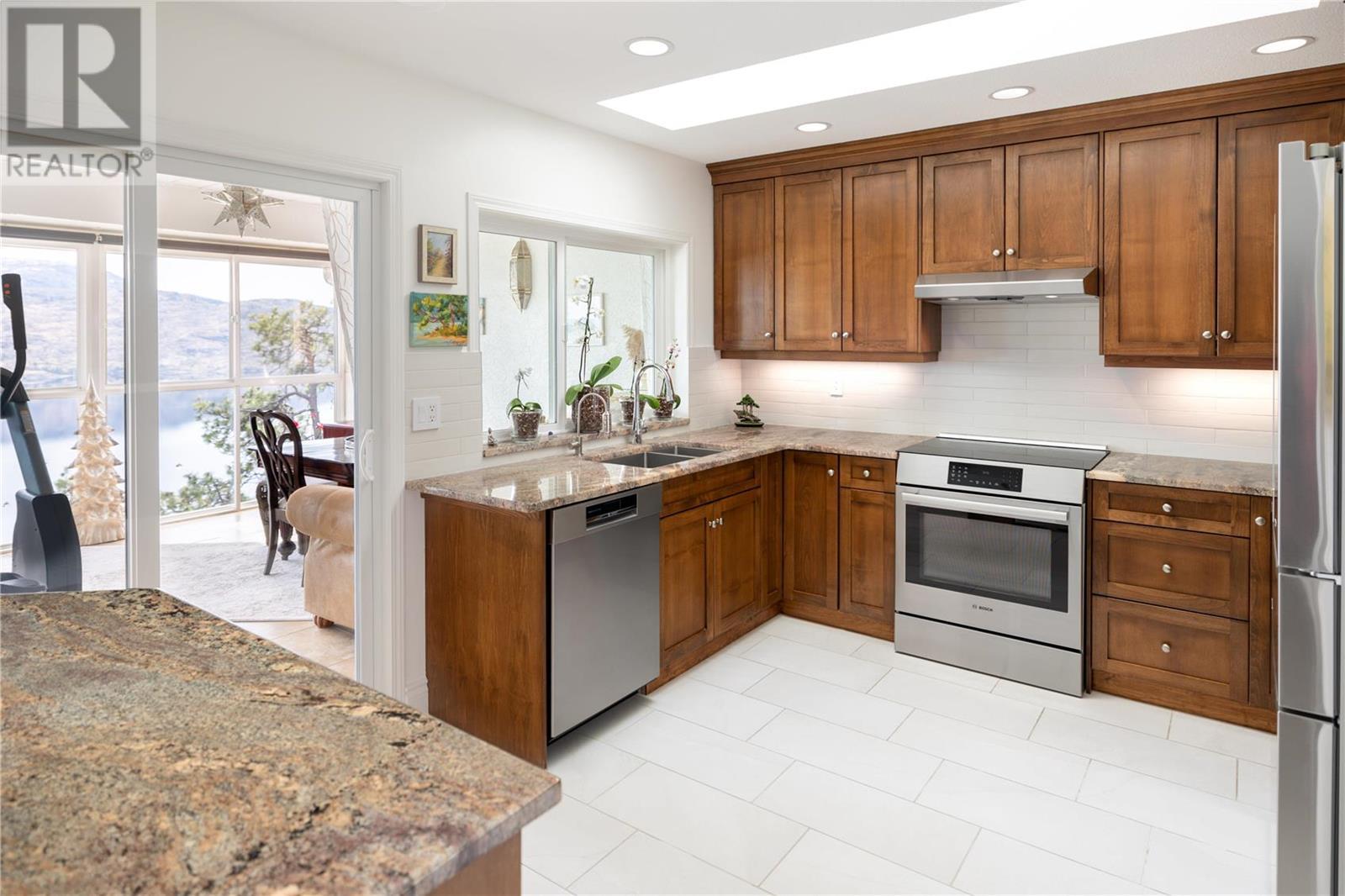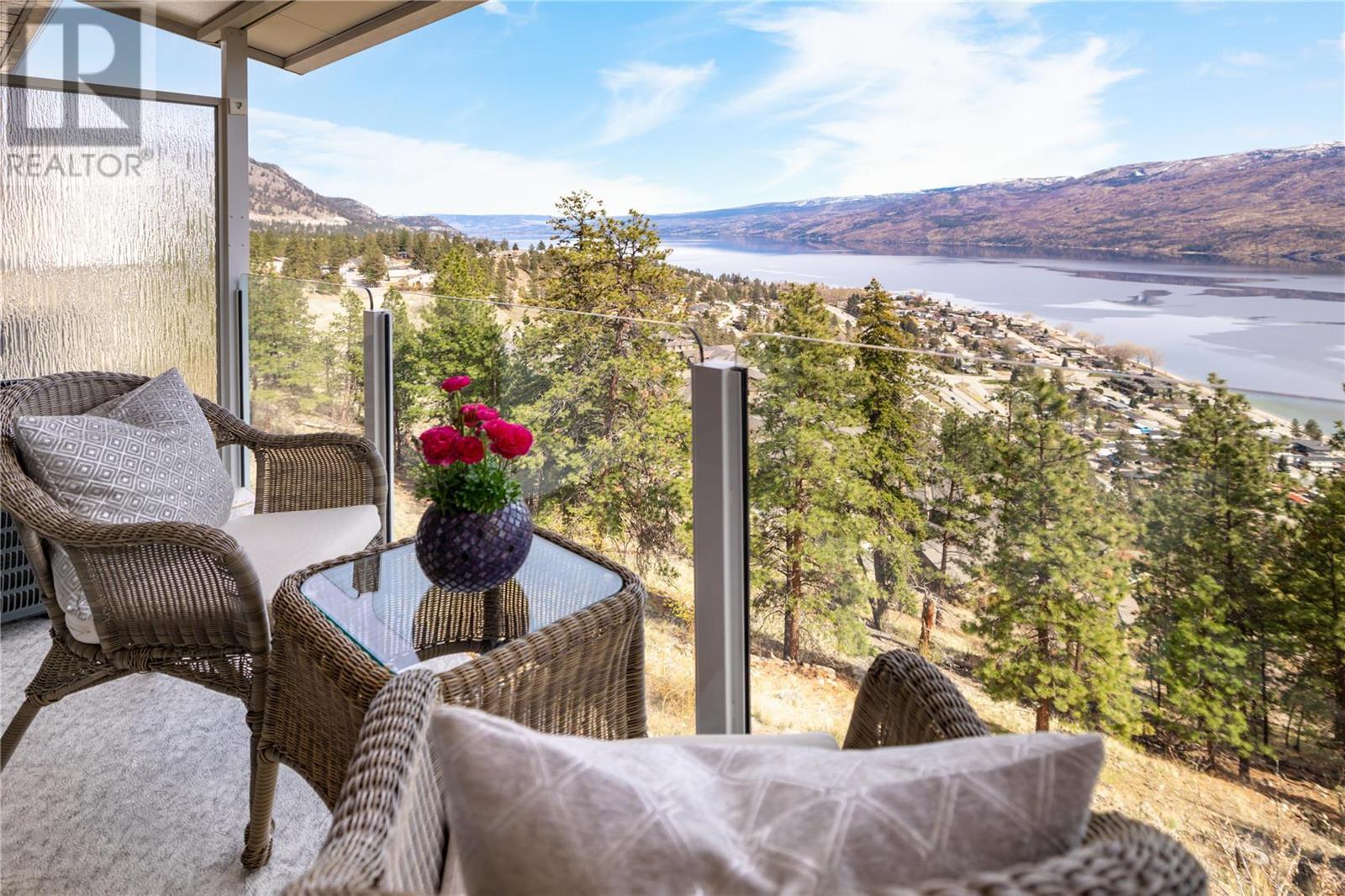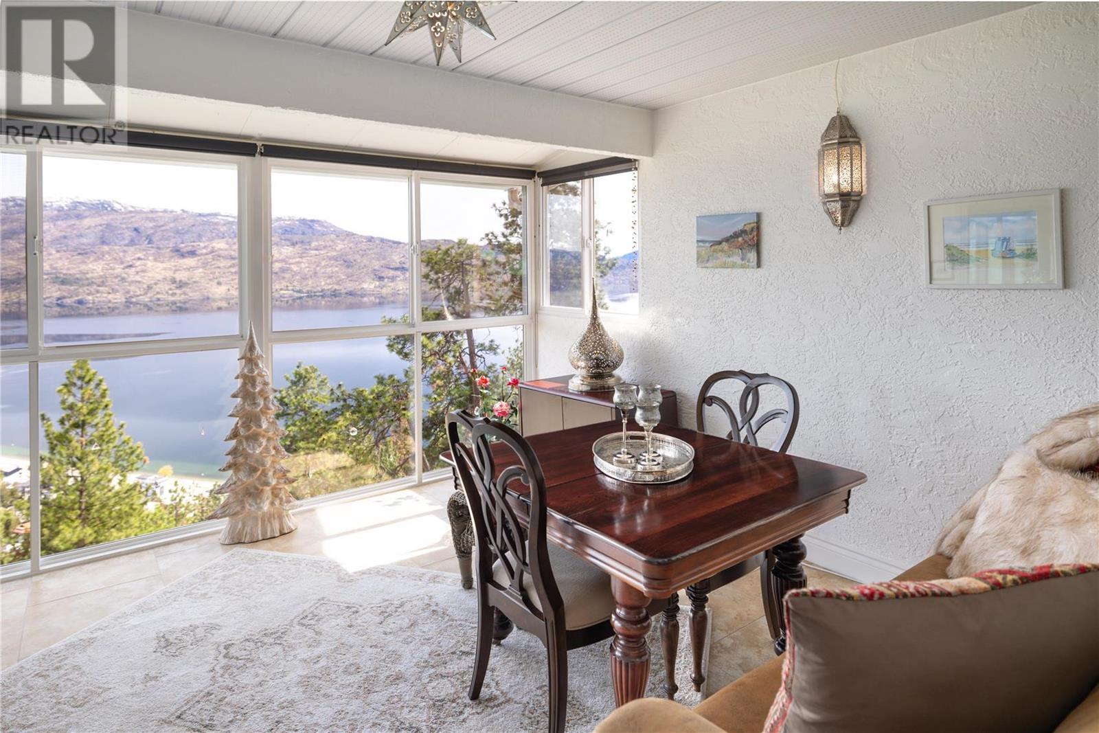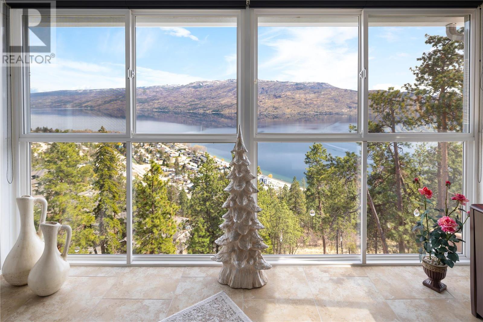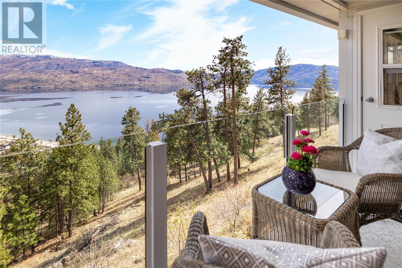 Exceptional fully renovated residence, where no expense has been spared in creating an exquisite living environment and lifestyle. Hundreds of thousands of dollars have been invested in intentional & luxurious enhancements, resulting in a home that is both visually stunning & highly functional. From wiring and plumbing to exterior windows and landscaping- this property is move-in ready! As you enter this private residence, you'll be greeted by unobstructed lake and mountain views that will take your breath away. The open concept living space features soaring ceilings and Italian tile radiant in-floor heating throughout, creating an inviting and cozy atmosphere. The view deck & three season sunroom are perfect for relaxing and entertaining, with floor to ceiling windows that offer panoramic views of the incredible natural surroundings. The kitchen is equipped with top-of-the-line Bosch appliances, custom cabinetry with no shortage of storage, & Madagascar granite countertops. The primary bedroom is king-sized and features a lavish ensuite, providing the perfect retreat after a long day. The second bedroom is a great size and offers convenient access to the second full updated bathroom, making it an ideal space for guests or family members. Heating, gas & more is included in the strata fee! Located steps to the future nine-hole golf course, only a short distance to the beachfront, Peachland amenities and a short drive to West Kelowna and central Kelowna. This is a must-see! (id:22211)