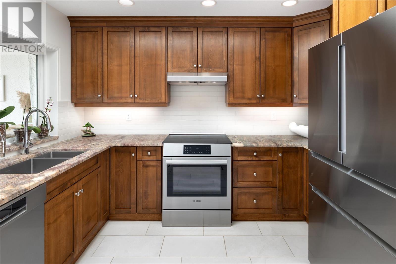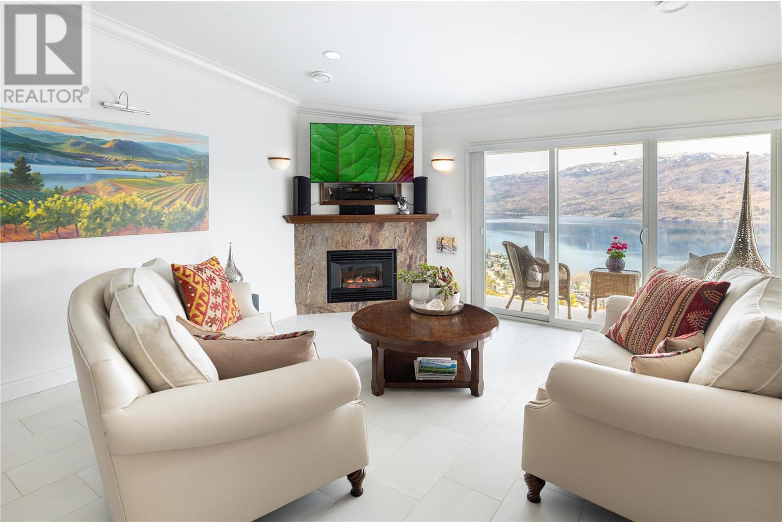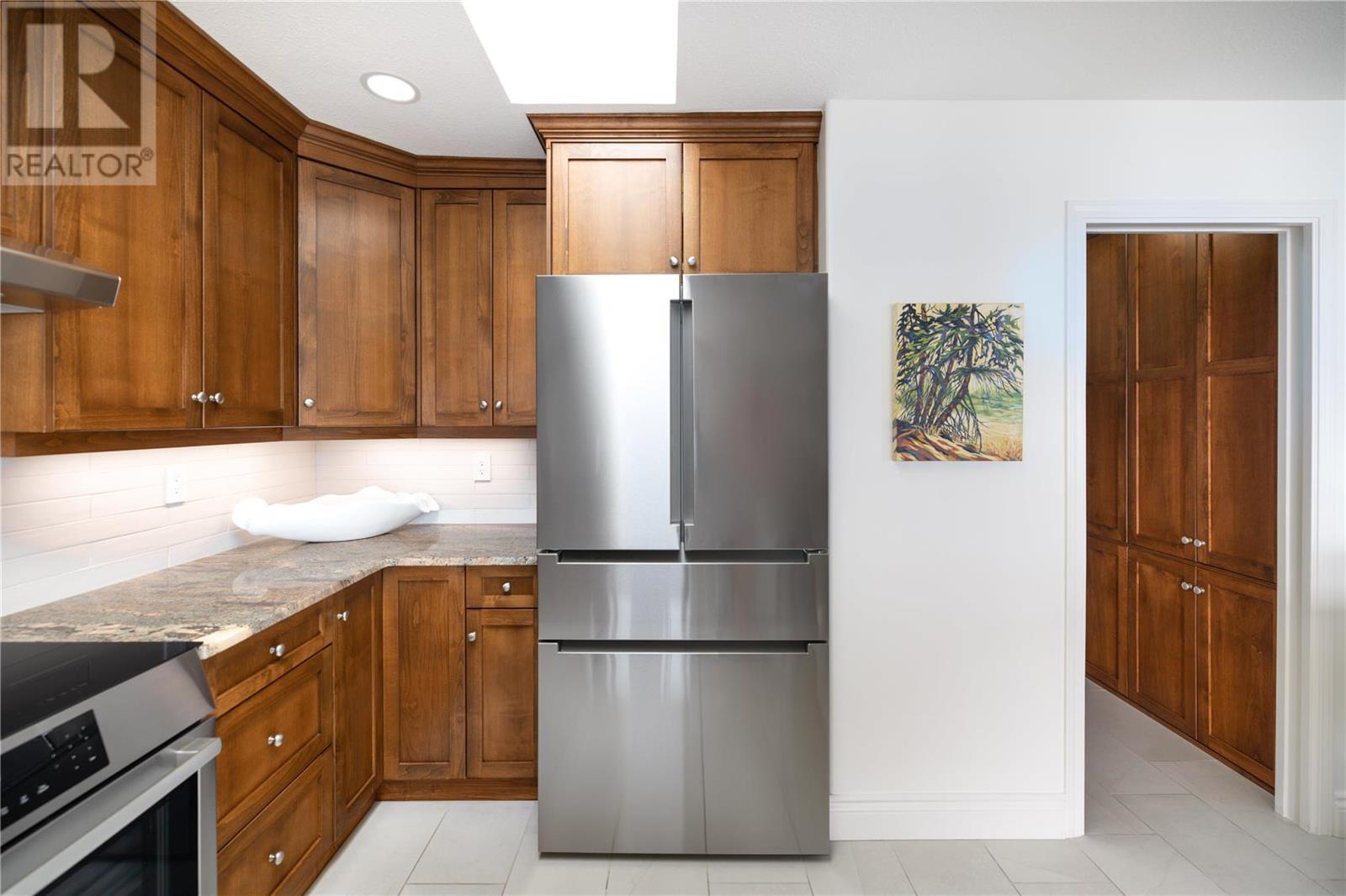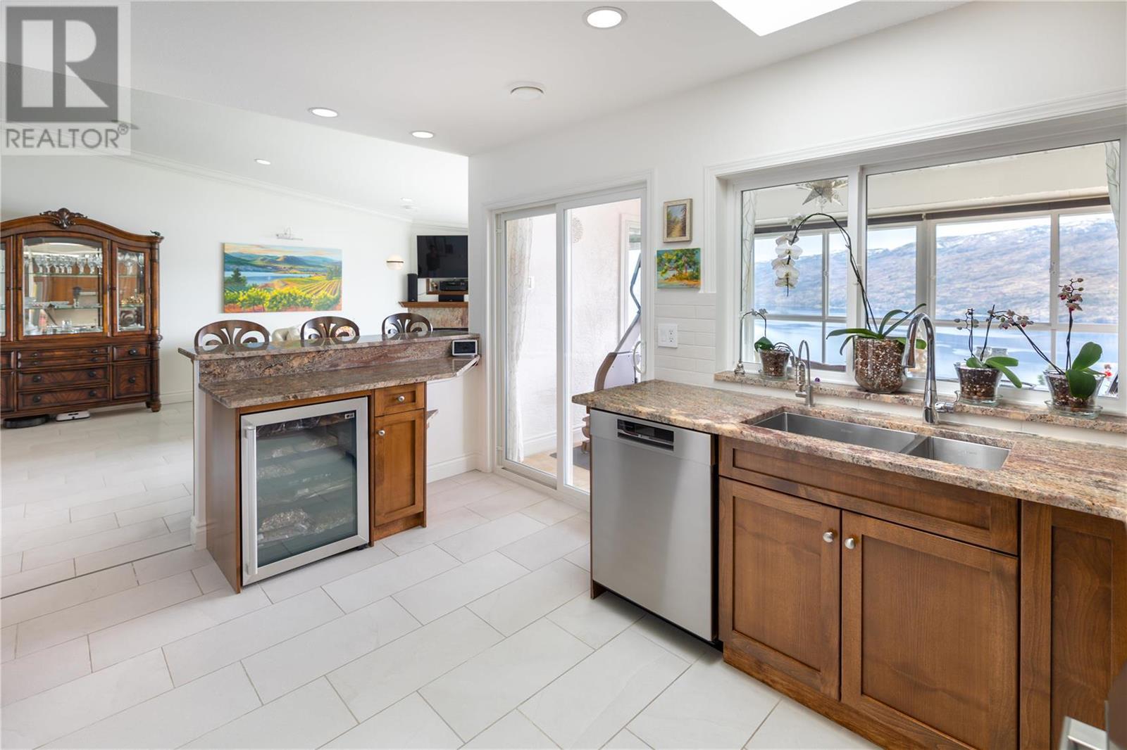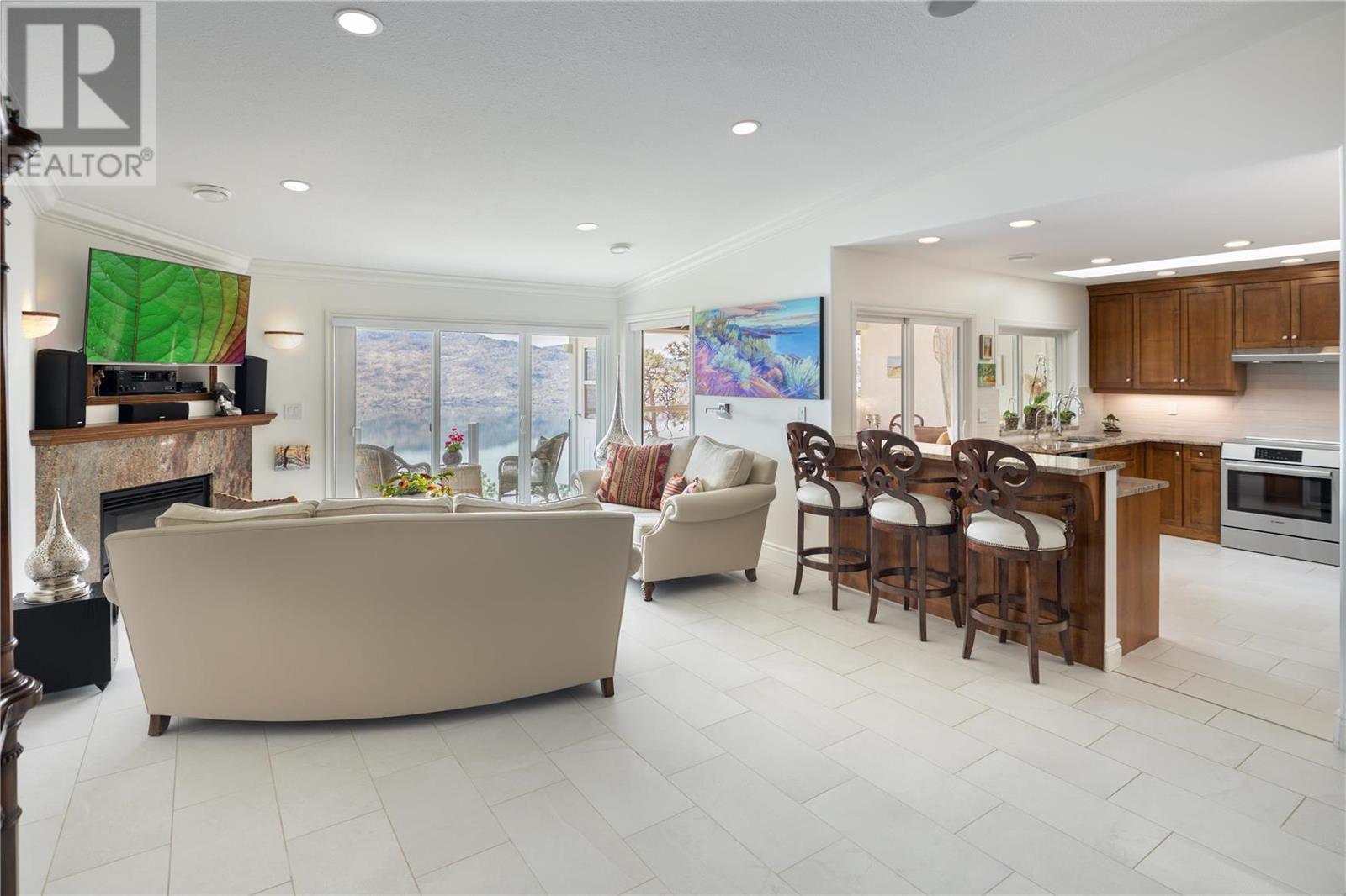 Exceptional fully renovated residence, where no expense has been spared in creating an exquisite living environment and lifestyle. Hundreds of thousands of dollars have been invested in intentional & luxurious enhancements, resulting in a home that is both visually stunning & highly functional. From wiring and plumbing to exterior windows and landscaping- this property is move-in ready! As you enter this private residence, you'll be greeted by unobstructed lake and mountain views that will take your breath away. The open concept living space features soaring ceilings and Italian tile radiant in-floor heating throughout, creating an inviting and cozy atmosphere. The view deck & three season sunroom are perfect for relaxing and entertaining, with floor to ceiling windows that offer panoramic views of the incredible natural surroundings. The kitchen is equipped with top-of-the-line Bosch appliances, custom cabinetry with no shortage of storage, & Madagascar granite countertops. The primary bedroom is king-sized and features a lavish ensuite, providing the perfect retreat after a long day. The second bedroom is a great size and offers convenient access to the second full updated bathroom, making it an ideal space for guests or family members. Heating, gas & more is included in the strata fee! Located steps to the future nine-hole golf course, only a short distance to the beachfront, Peachland amenities and a short drive to West Kelowna and central Kelowna. This is a must-see! (id:22211)