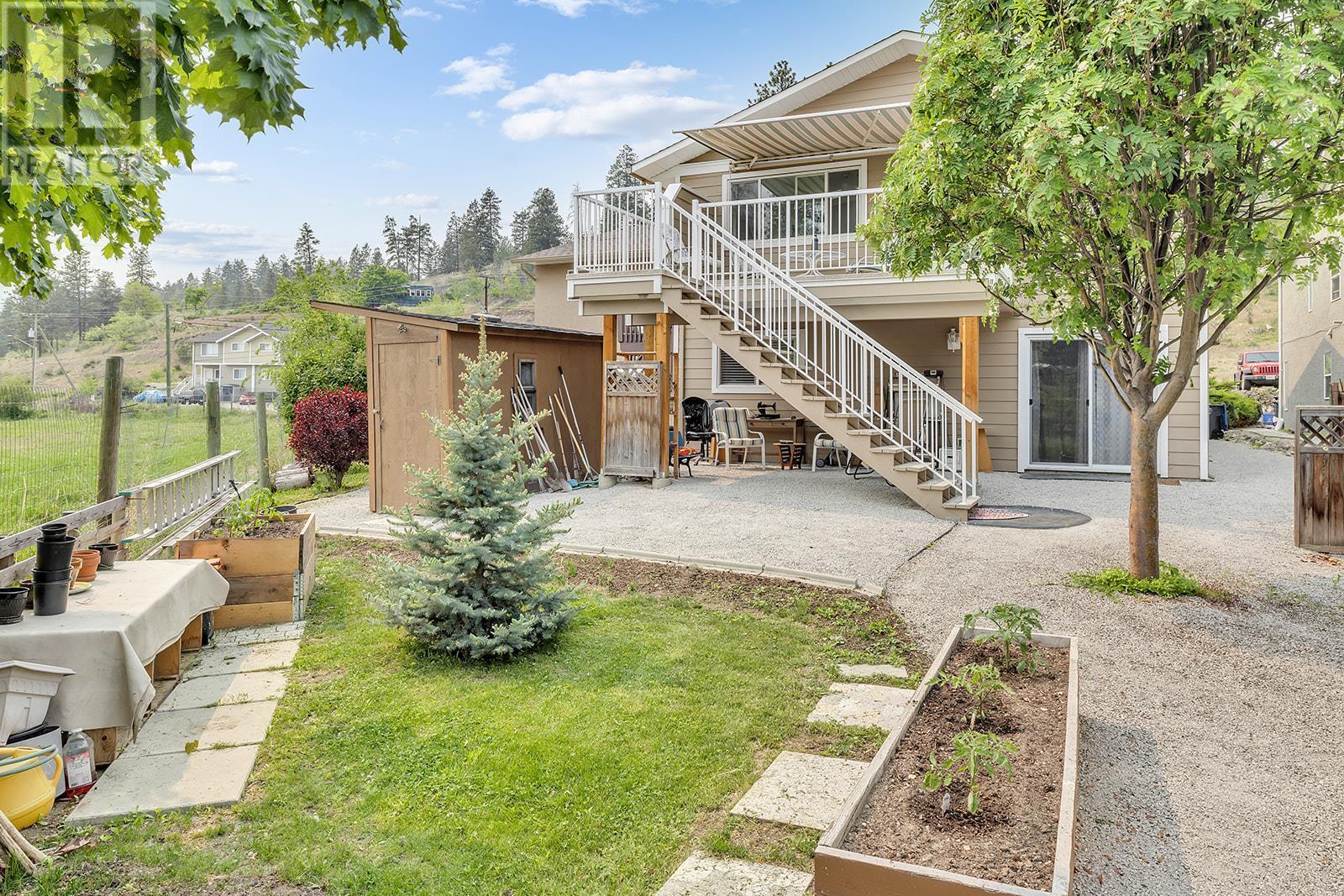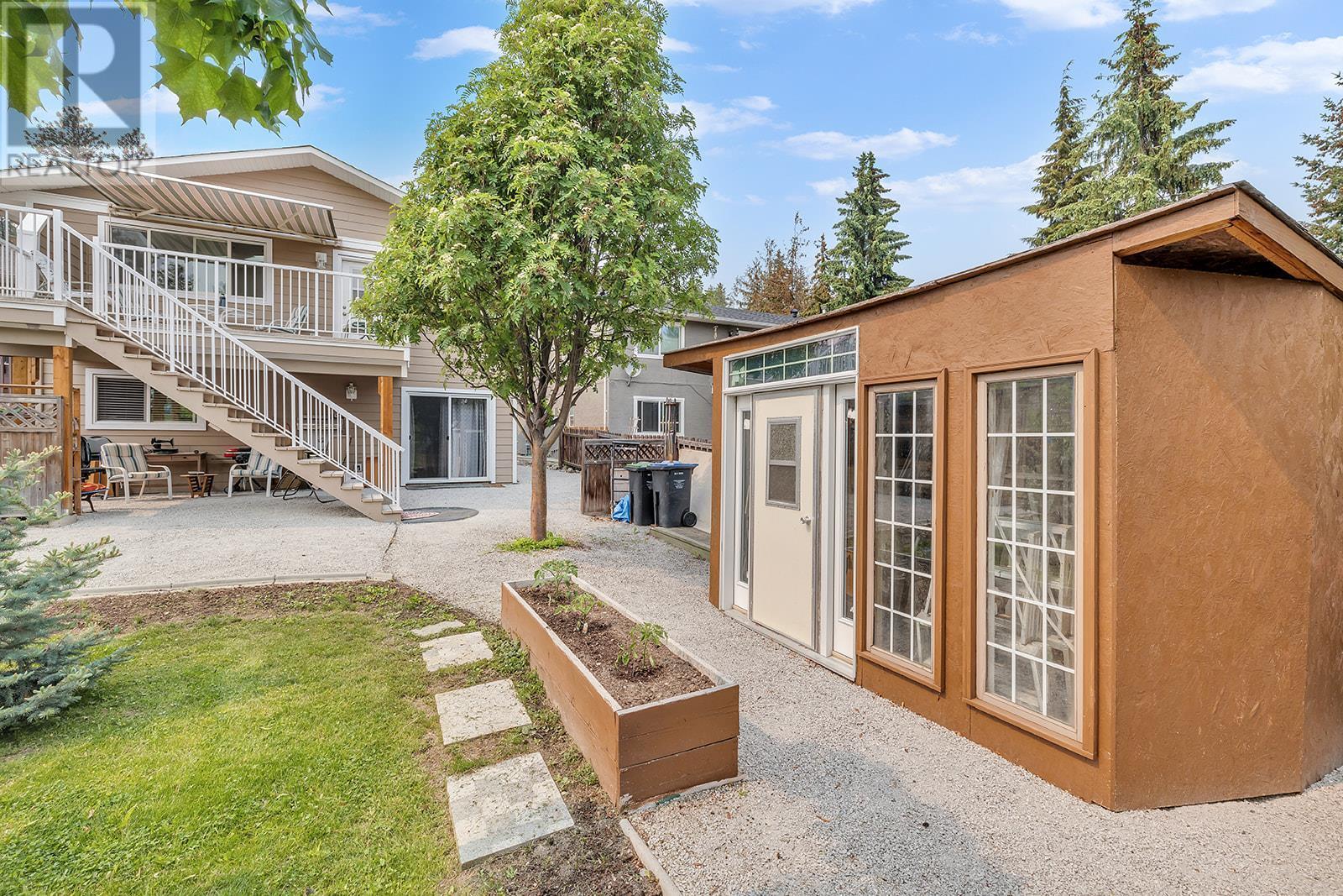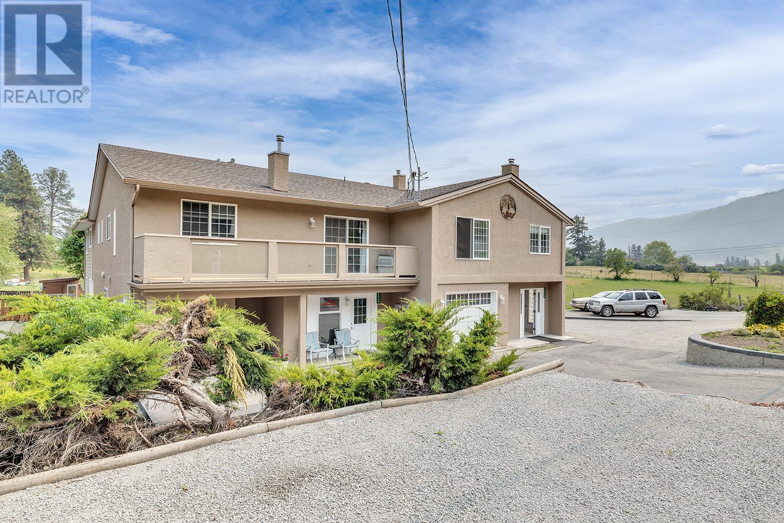 INVESTORS! Here is that hidden gem you've been asking your agent to watch for! Located on Princeton Ave in Peachland, this half duplex is next to a pasture so you have peace and quiet, while still being a short drive to Beach Ave (and NO steep driveway!). You can either enter through the front door, or into the garage which is currently being used as an office (but could be used as a gym or changed back to a garage). Suite 1: Upstairs there are 3 bedrooms and 2 bathrooms. The master bedroom has a 3 pc ensuite and big walk-in closet. A gas fireplace and a small deck off of the living room make it super cozy. Through the kitchen you'll enter into a super bright and spacious newly built addition, including a covered deck off the back overlooking the pasture and mountains. Suite 2: You'll find another kitchen, laundry, 1 bed + 1 bath, living room, and separate entrance. HWT and furnace are fairly new, and service the whole 1/2 duplex. Around the back of the duplex there's access to Suite 3: studio with its own kitchen and bathroom. The fenced back yard has 2 sheds, garden boxes, and lots of space to enjoy summer days! In the front of the building there are 4 parking stalls. (id:22211)