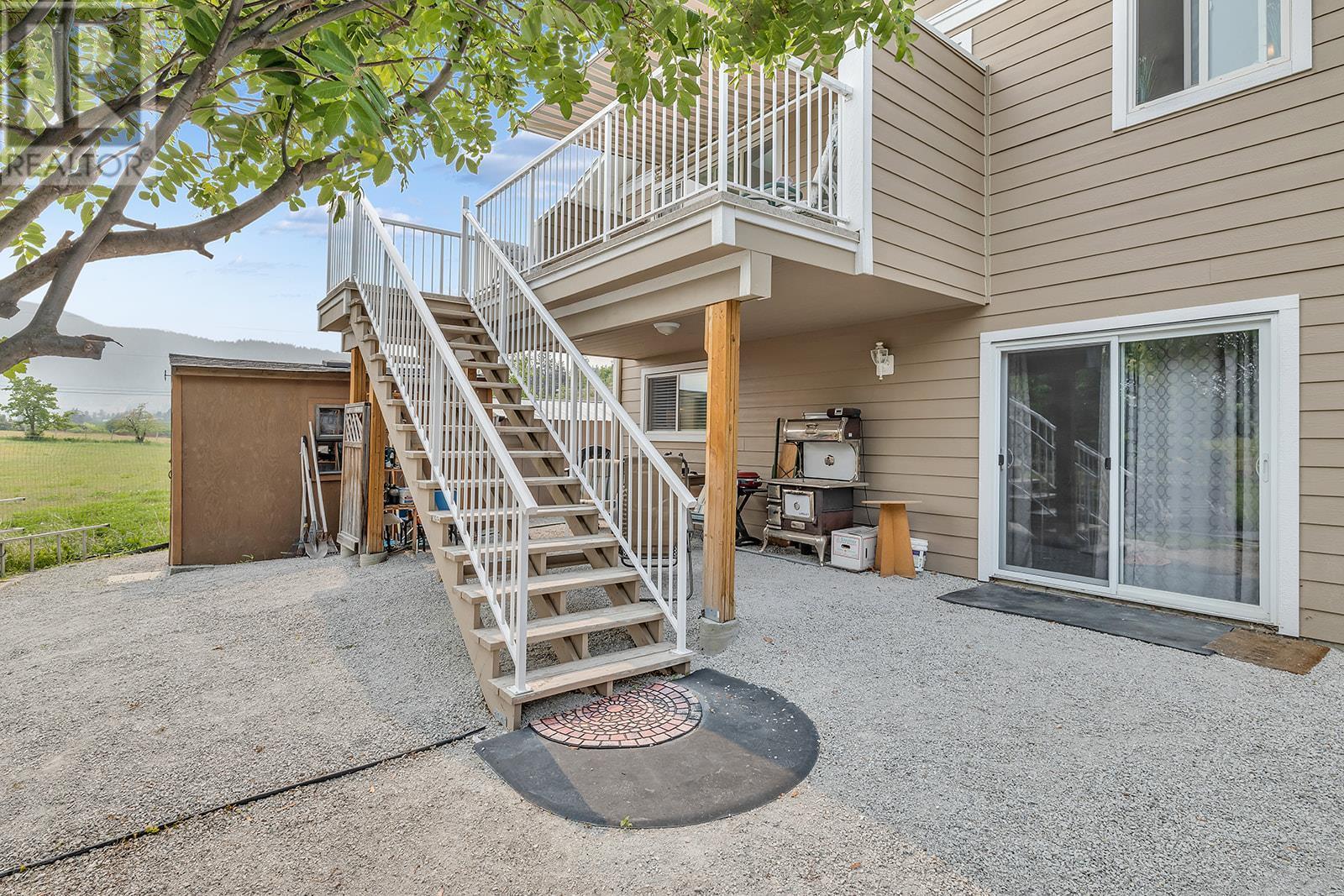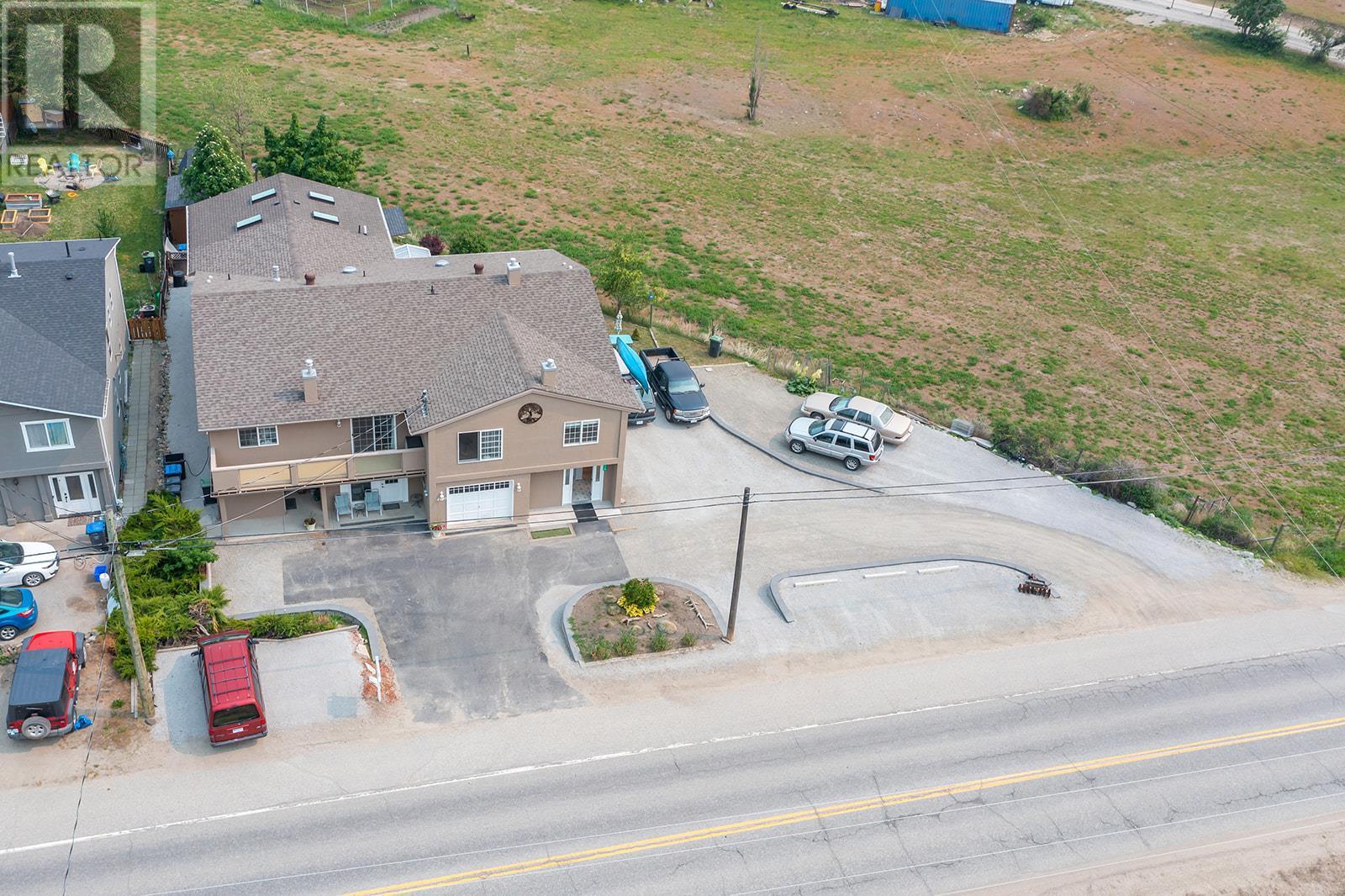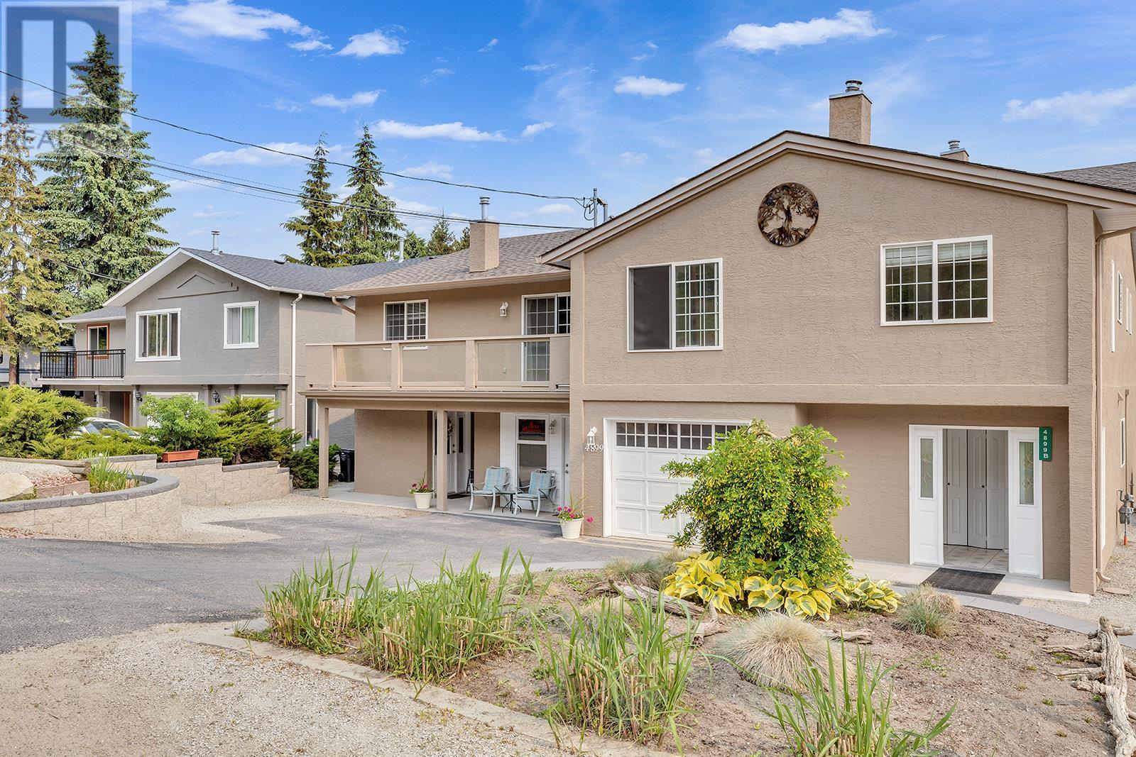 INVESTORS! Here is that hidden gem you've been asking your agent to watch for! Located on Princeton Ave in Peachland, this half duplex is next to a pasture so you have peace and quiet, while still being a short drive to Beach Ave (and NO steep driveway!). You can either enter through the front door, or into the garage which is currently being used as an office (but could be used as a gym or changed back to a garage). Suite 1: Upstairs there are 3 bedrooms and 2 bathrooms. The master bedroom has a 3 pc ensuite and big walk-in closet. A gas fireplace and a small deck off of the living room make it super cozy. Through the kitchen you'll enter into a super bright and spacious newly built addition, including a covered deck off the back overlooking the pasture and mountains. Suite 2: You'll find another kitchen, laundry, 1 bed + 1 bath, living room, and separate entrance. HWT and furnace are fairly new, and service the whole 1/2 duplex. Around the back of the duplex there's access to Suite 3: studio with its own kitchen and bathroom. The fenced back yard has 2 sheds, garden boxes, and lots of space to enjoy summer days! In the front of the building there are 4 parking stalls. (id:22211)