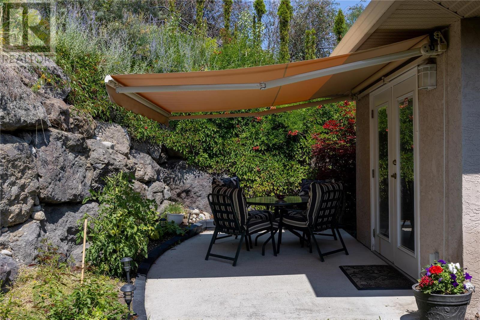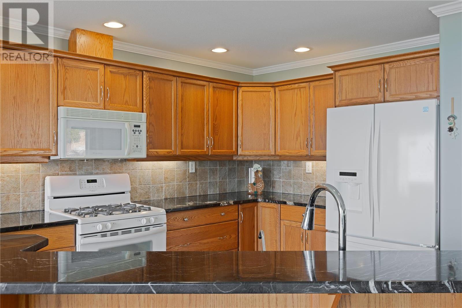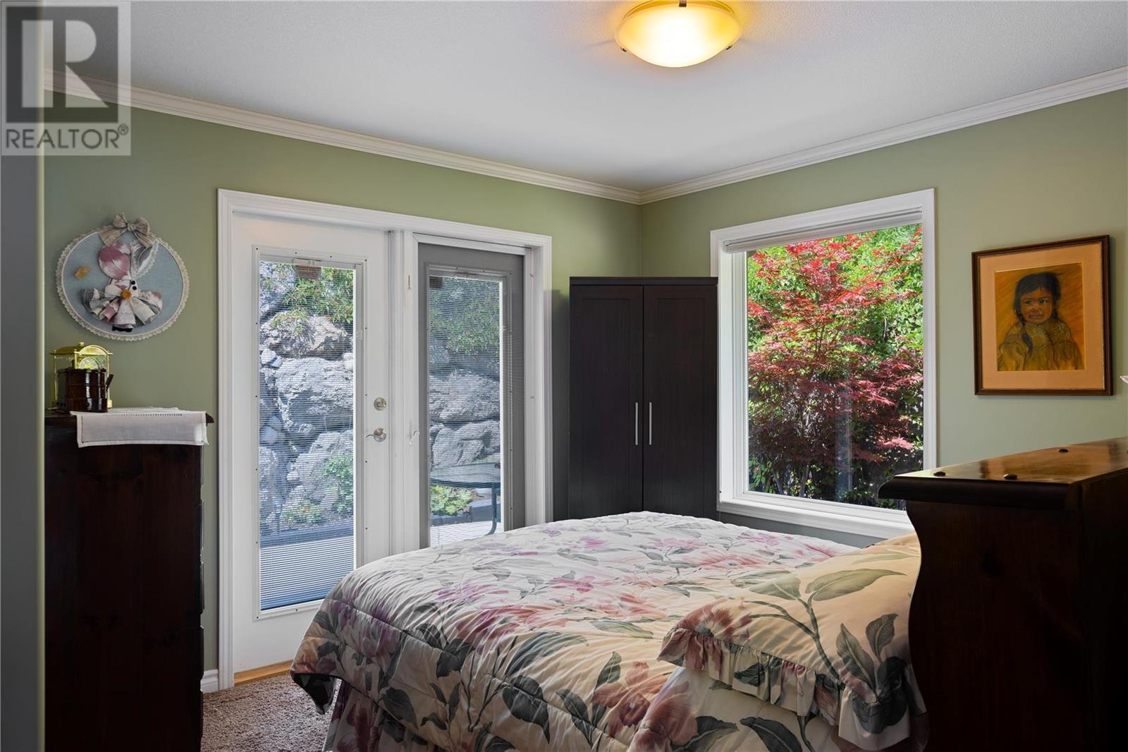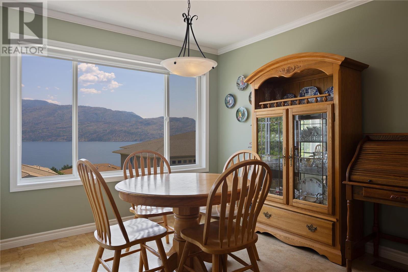 Discover idyllic small-town living with views of the Okanagan Lake and sounding mountains that will leave you breathless. Some mornings the lake is so calm that it looks like glass. Sip a morning coffee on the covered deck savour the peace and quiet. This impeccably maintained townhome is located in The Terraces, a community above the quaint beach town of Peachland. Restaurants, cafes, and shops all line its main street. This home was designed to ensure all the main rooms have a front-row seat to those spectacular views. Wall-to-wall windows let in an abundance of natural light. This spacious two-bedroom plus den, three full bath townhome embraces an open plan living and is ideal for entertaining. The kitchen is well appointed with a huge island for guests to gather around while you prepare the charcuterie board. The living room features a gas fireplace, hardwood floors, and large windows that capture picturesque views of Okanagan Lake and Rattlesnake Island. Sliding glass doors open directly onto the oversized deck. The primary bedroom has an ensuite with a walk-in shower. A private patio in the backyard with a large retractable awning ensures shade on a hot sunny day. The basement has an unfinished storage area along with a den, cold room and full bathroom. A double garage has plenty of room for your vehicles and bikes. Make this remarkable townhome your everyday retreat. (id:22211)