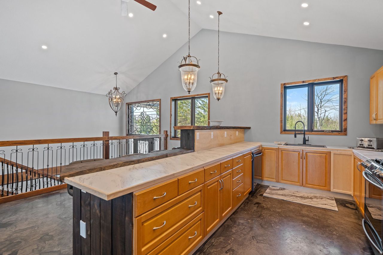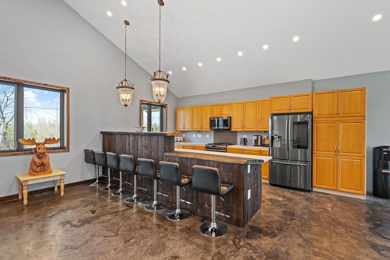 Welcome to 230 Chantler Road in Welland! This stunning custom-built raised bungalow, situated on a sprawling 4.3-acre lot, boasts incredible features. Constructed with Insulated Concrete Forms (ICF), this home offers durability, energy efficiency, and noise reduction. As you enter the home, you are greeted by a spacious foyer featuring rustic wood finishes and an open concept living space. The open concept layout flows seamlessly from the living room, to the dining area and the kitchen. Retreat to the primary bedroom, featuring a 4-piece ensuite bathroom, a spacious closet and access to the covered patio. The basement features a large recreational room with a walk-out to a covered patio area, two additional bedrooms and another full bathroom. The attached garage, boasts 20-foot vaulted ceilings, multiple large garage doors and enough space to store all your toys and vehicles. Close enough to all the major amenities, this property offers the perfect blend of functionality and privacy.