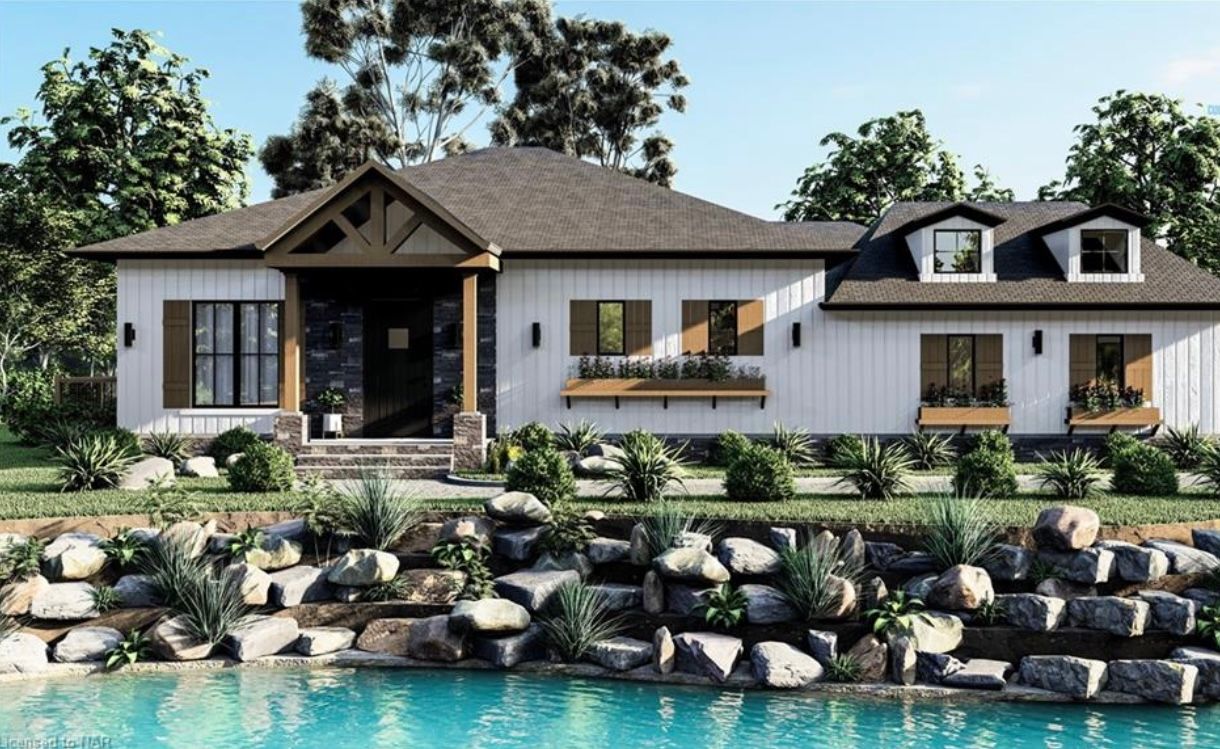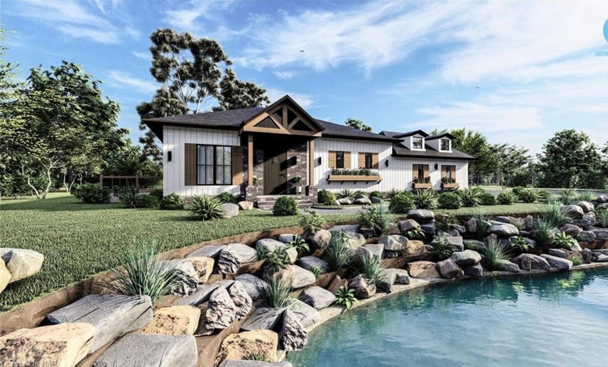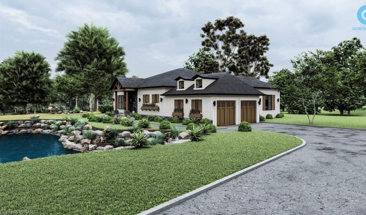 Assignment Sale! Own Your Dream Luxury Estate Home!! Quality finish and design throughout. Flowing open concept living space with quartz counters, 9-foot ceilings, 8-foot doors, and hardwood floors. This 3-bedroom, 2.5 bathroom, 2300 sq ft bungalow integrates a practical mudroom and main floor laundry. Defining features include a library with a dual-sided fireplace and wet bar, master suite with walk-in closet, and 5-piece ensuite including a soaker tub and water closet. Located in a quiet area surrounded by rural estate homes this 1.0-acre property provides plenty of space and incorporates a central private pond. Minutes from QEW, Fonthill/Welland, and many Golf courses. This home is under construction, floor plan and site plan PDFs are attached to the listing. The listing images are renderings only, finished home may vary from the depictions.