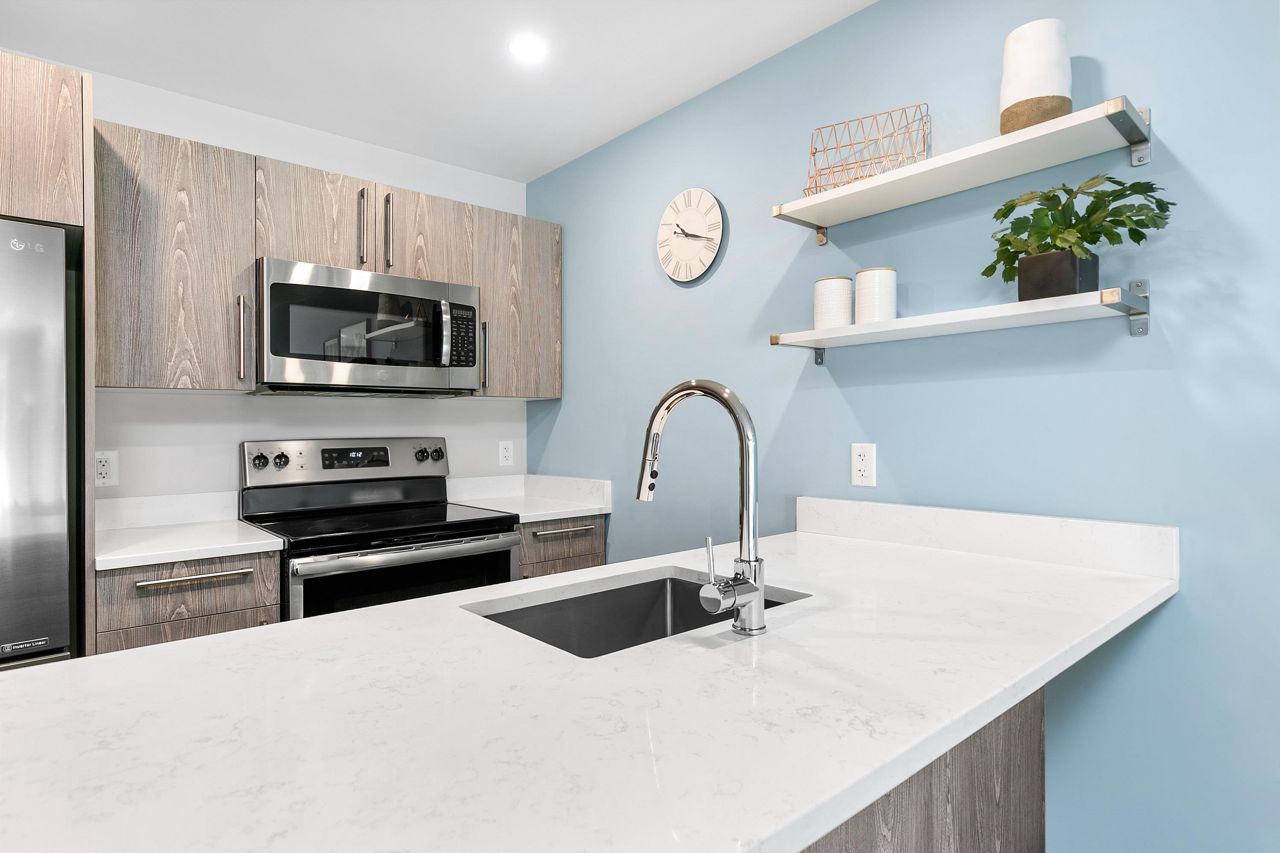 Welcome to Orion! Built in 2020, Orion is an award winning development featuring the latest in construction and energy efficient practices. With a fresh air exchange in every room, heating and cooling throughout, high acoustic insulation and triple-pane solar reflecting windows. This 2 bed/1 bath unit has a separate laundry/utility room, modern finishes throughout and stainless steel appliances. This unit comes with a private, dedicated and secure state of the art garage; accessible through the underground parkade (plus additional surface parking). Orion has onsite recycling, garbage disposal, EV charging stations and your own personal garden plot! Take comfort in knowing your condo is covered under the 2-5-10 New Home Warranty Monthly strata fees include Hydro, heat and hot water.