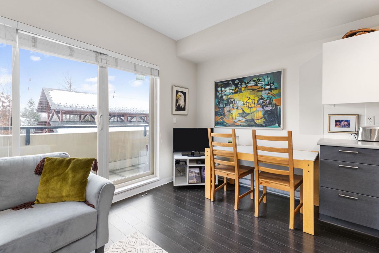 Situated in an ideal Pemberton location, just steps to stores and recreation, this welcoming studio is the perfect place to enjoy the Pemberton lifestyle. The open floor plan features a contemporary design with a sleek kitchen, plenty of natural light, storage, and an in-suite washer/dryer. The large balcony with mountain views extends the living space and has great morning sun. Elements offers an unparalleled rooftop deck with 360-degree mountain views, as well as bike storage, and underground parking. This would be an excellent starter home or investment opportunity.