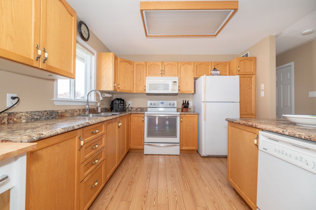 Nestled in a desirable neighborhood, this well-maintained 2+1 bedroom, 2-bath home with attached garage shows pride of ownership throughout. The bright main floor is an open concept space that brings in plenty of natural light. The eat-in kitchen has an island with breakfast bar, and patio doors leading out onto the deck, seamlessly blending indoor and outdoor living. The fenced backyard provides privacy and security, making it perfect for family gatherings or quiet relaxation. Cozy evenings await with two gas fireplaces - one in the main living area and another in the basement family room, adding charm and warmth to both spaces. Convenience is paramount with main floor laundry and an attached garage, offering ease and efficiency. A true gem that you will be happy to call home! Minimum 24 hour irrevocable on all offers.