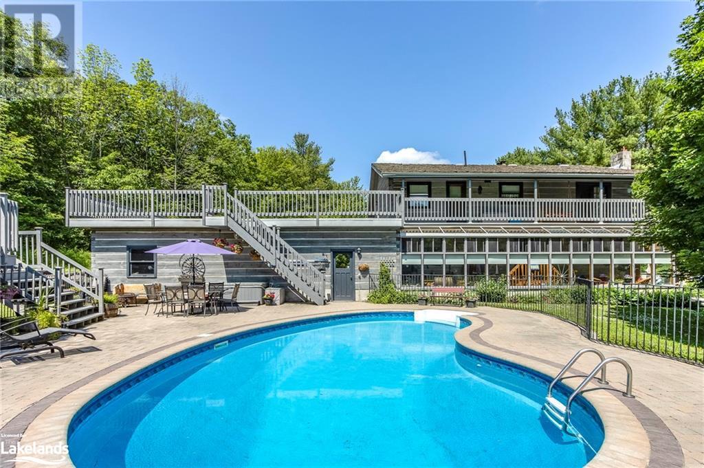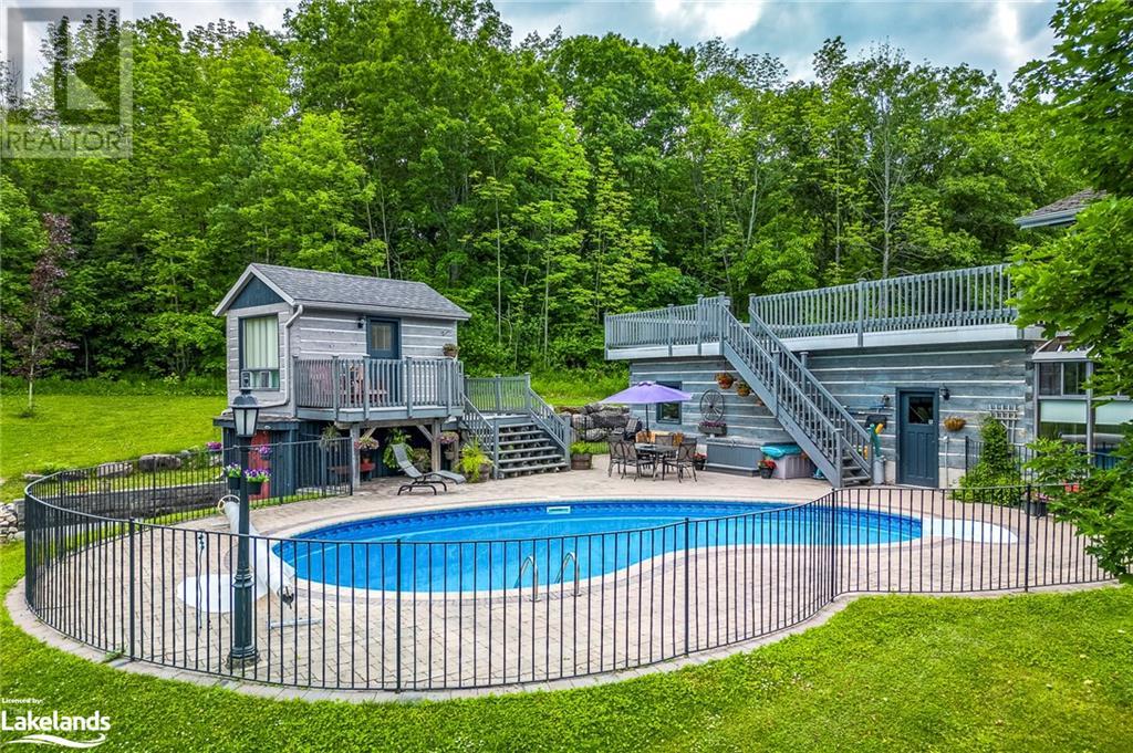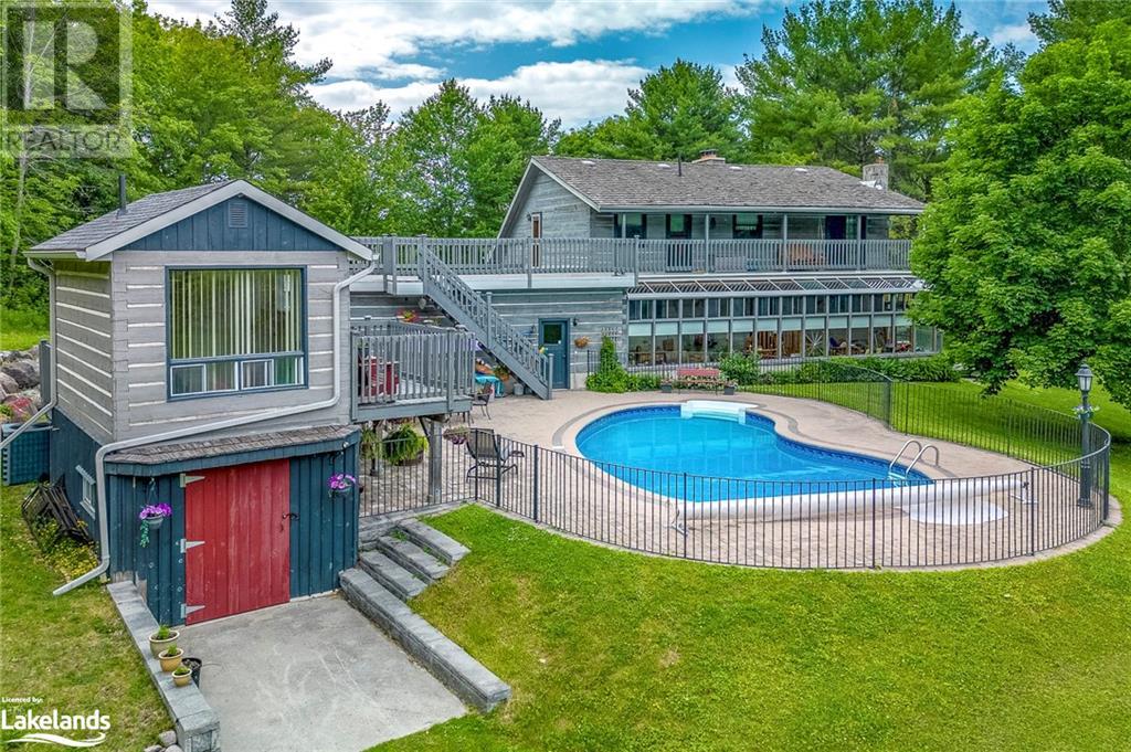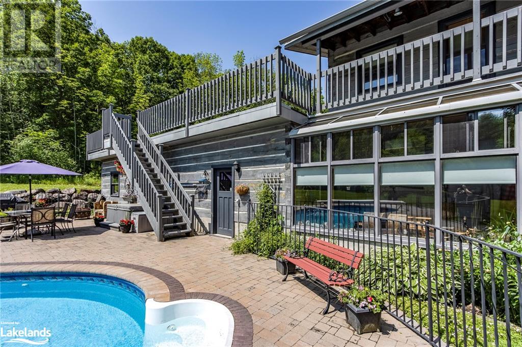 Welcome to 335 Murray Road, a beautiful home in picturesque Penetanguishene. This spacious country estate home is situated on 2.77 acres of beautifully landscaped property. The yard is delightful with an inground kidney shaped saltwater pool, large mature trees and private entertaining areas. In addition, there’s a 15' x 10 pool house, an attached double garage plus attached heated woodworking shop and a 66' x 24' driveshed containing another insulated workshop. Inside this 3+1 bedroom custom log home features a stunning field stone fireplace, spacious rooms, walkout from second storey bedrooms to the balcony overlooking the pool and property and a very cozy 39' x 8' sunroom. The lower level is generously sized with a family room and entertaining area with wood fireplace, a 3pc bathroom and a 4th bedroom. Penetanguishene & Midland are only a short drive away for your shopping needs, and this home is only 90 min from the GTA. Whether for year-round living, or as your oasis from the city, this beautiful home is just a short drive from the pristine shores of Georgian Bay. At the shores of Tiny Township beaches, you can relish in cool clear waters, the soft sand, and the breathtaking sunsets. Just minutes to a private golf course and marinas, this splendid home in Penetanguishene will charm you. For generations, many have called this area their vacation destination, and many have made this area their new home. It's time to make the move. Call, text, or email for more information & to schedule your private viewing. New memories are just waiting to be created by you. (id:22211)