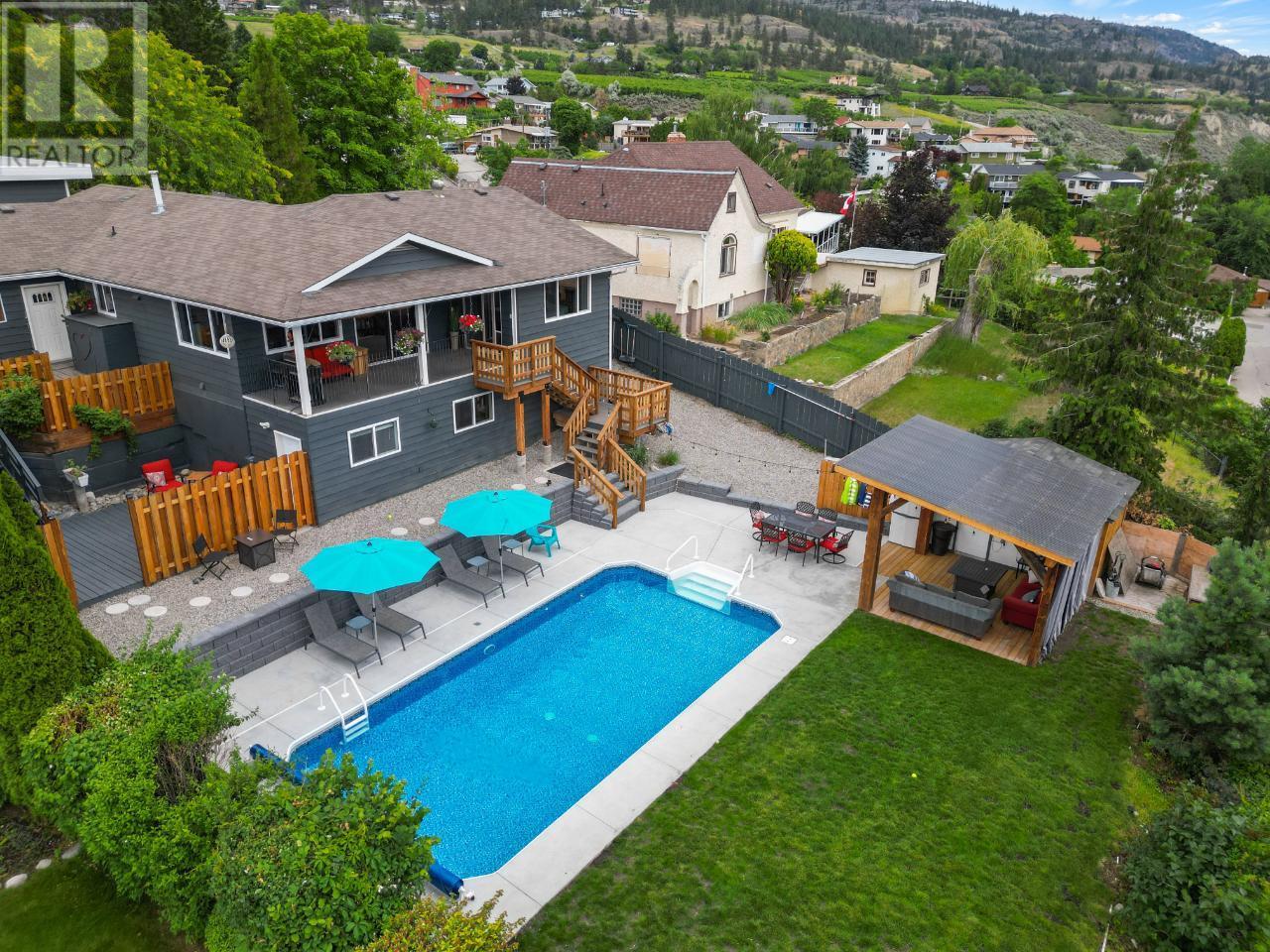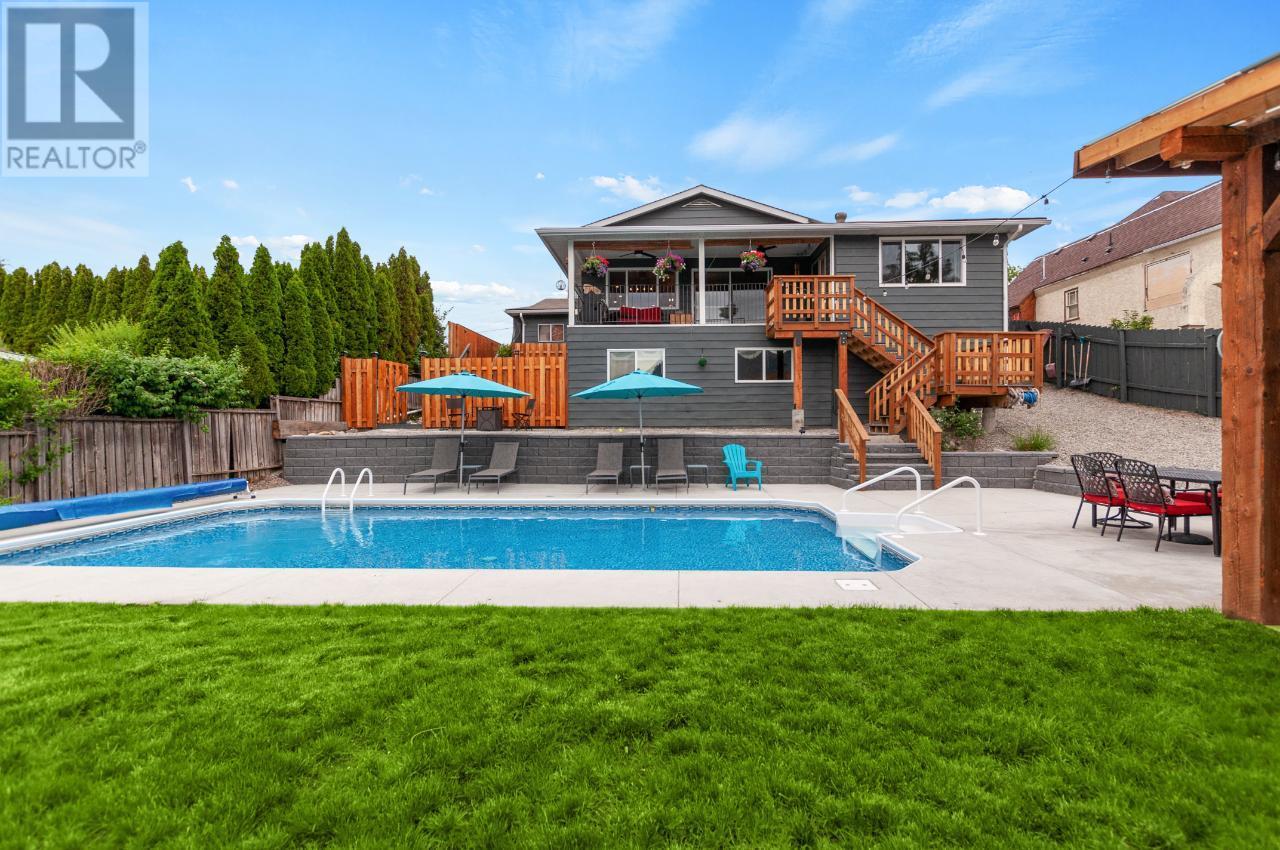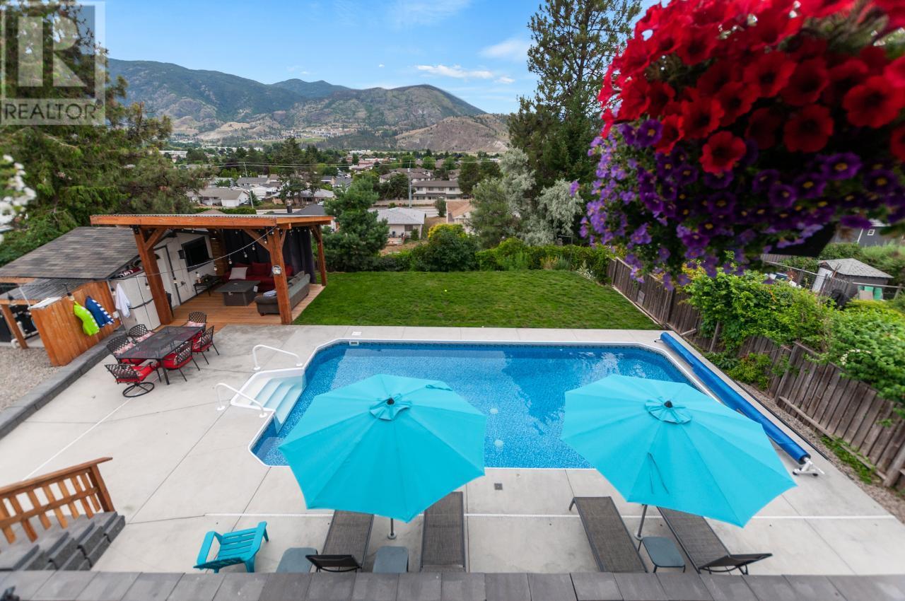 Pool, Suite, View, Dream Shop and more! Amazing 3bed 2.5bath rancher that has been tastefully renovated with separate access lower 1bed 1bath guest suite all sitting on a private .25 acre lot with stunning backyard resort, new heated 16x32 inground pool, timber pergola, pool cabana with awesome views in a great Wiltse location close to Skaha Lake, shopping, schools on a no thru road. Main floor has open concept gorgeous new contemporary kitchen (quartz counters), living & dining area which lead out to covered patio surrounded by sweeping views of the city and Skaha Lake. Large primary with WIC, 3 pc ensuite and access to the lakeview patio. Updated main bath and additional upgrades include flooring & windows, stainless appliances, hwt, furnace and a/c. Attached newly built oversized tandem double garage (room for 3 cars) with 14ft ceilings, hoist and oversize door. Lots of room for your boat/toys/rv with outside rv hookups. Quick possession available. (id:22211)
