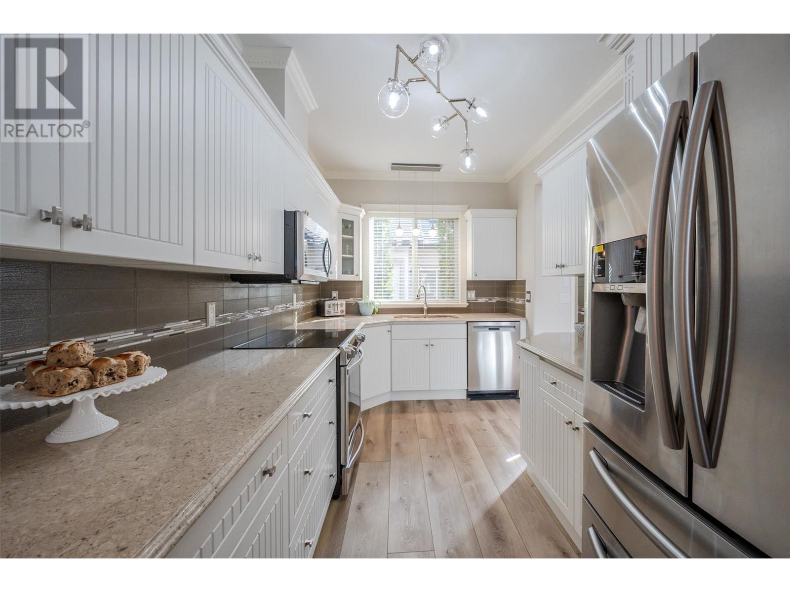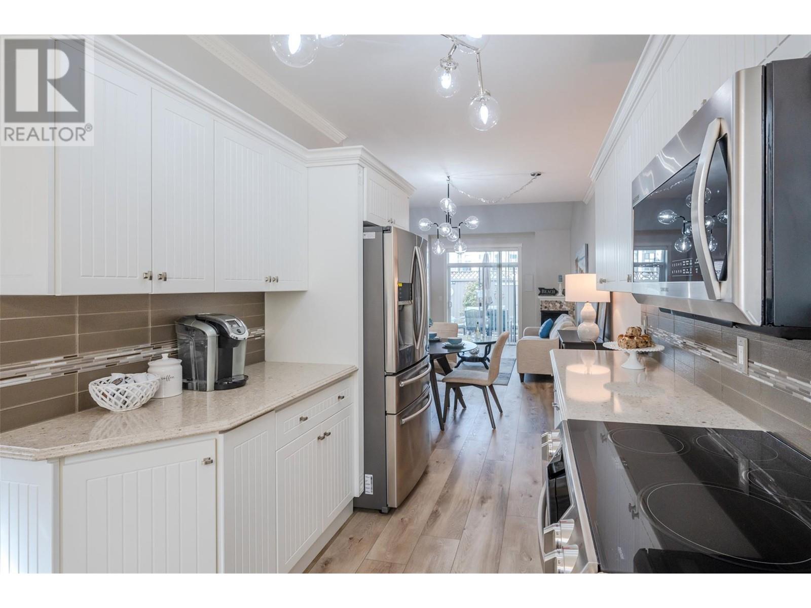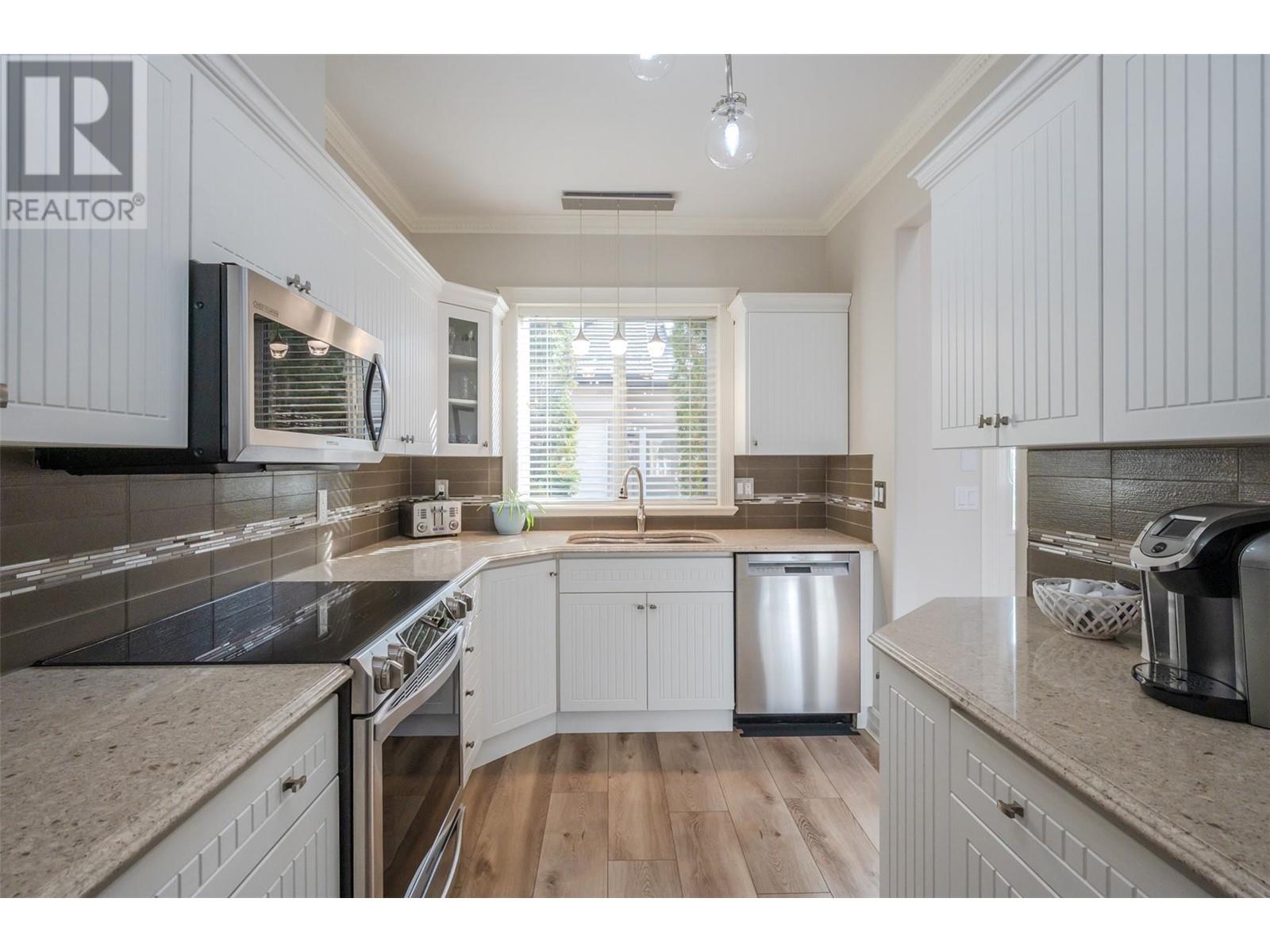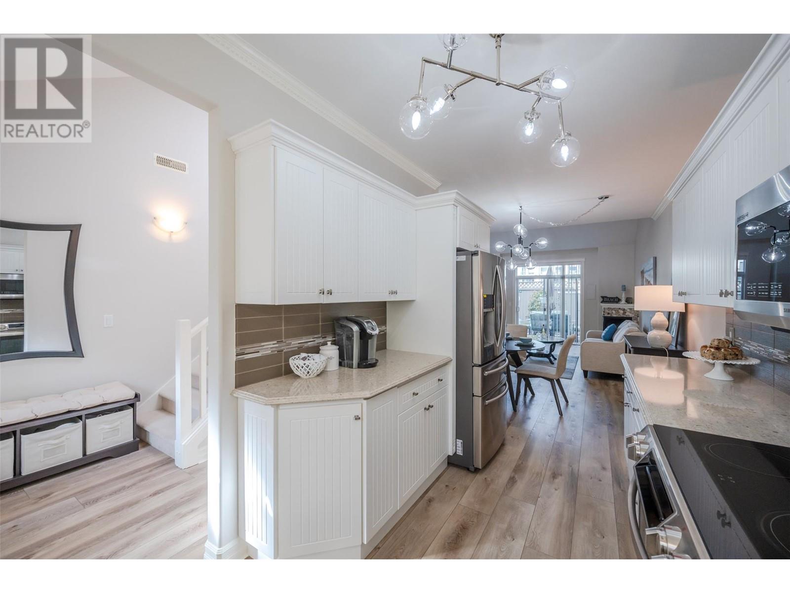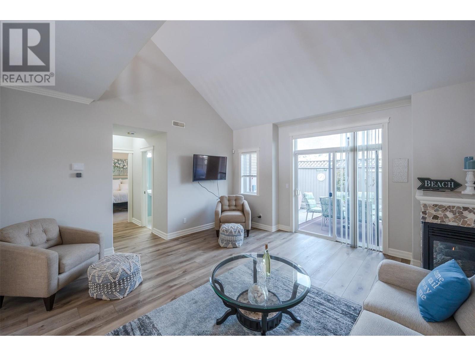 This immaculate two bedroom and three bathroom townhome in a prime location steps away from Okanagan Lake is ready for you to move right in! Amazing layout with everything you need on the main level, primary bedroom, three piece ensuite and walk-in closet, beautiful kitchen with loads of counter space and top of the line stainless appliances, large living area and feature random stone gas fireplace, access to the generous patio and yard, separate laundry room, and two piece bath. Upstairs features an additional guest bedroom, office/studio space, flex area for extra guests or could be used for a gym, additional living room etc, extra large storage room, and four piece bathroom. So many upgrades featuring vinyl plank flooring on the main, lighting, automatic blind for sky-light, quartz counters throughout, kitchen backsplash, 3M coating on all windows for sun and privacy, and hot water tank. Double garage is a bonus for all of your toys! View it today to experience a truly beautiful home in an awesome location! (id:22211)