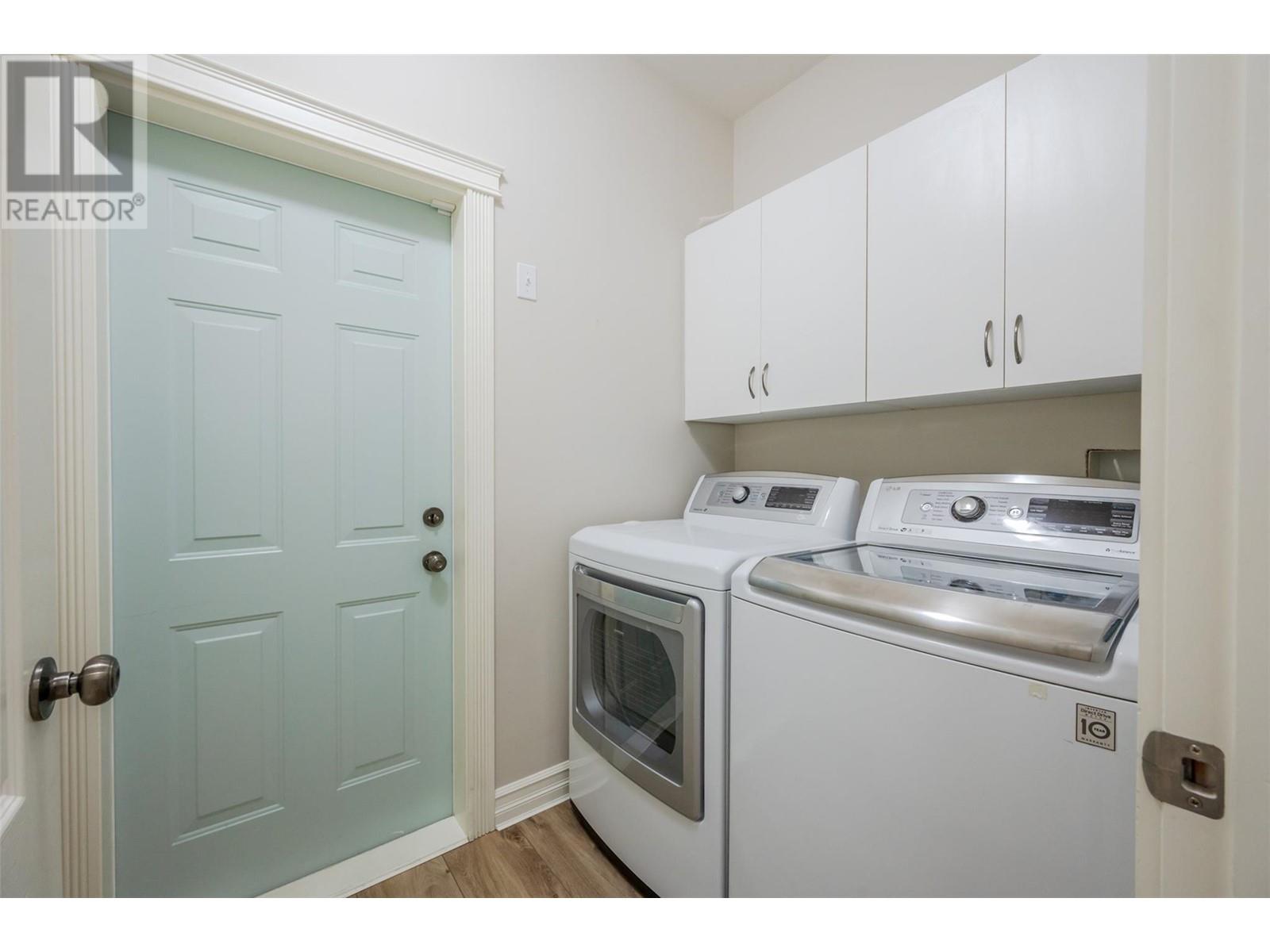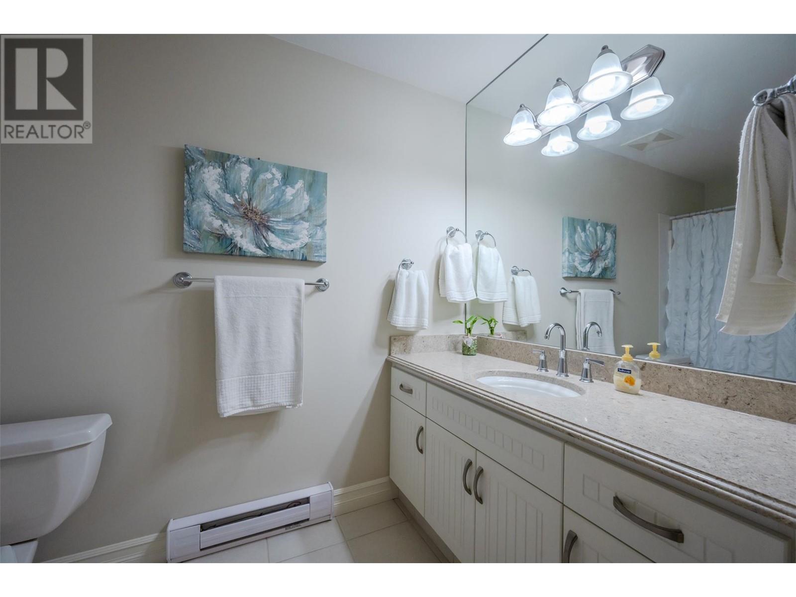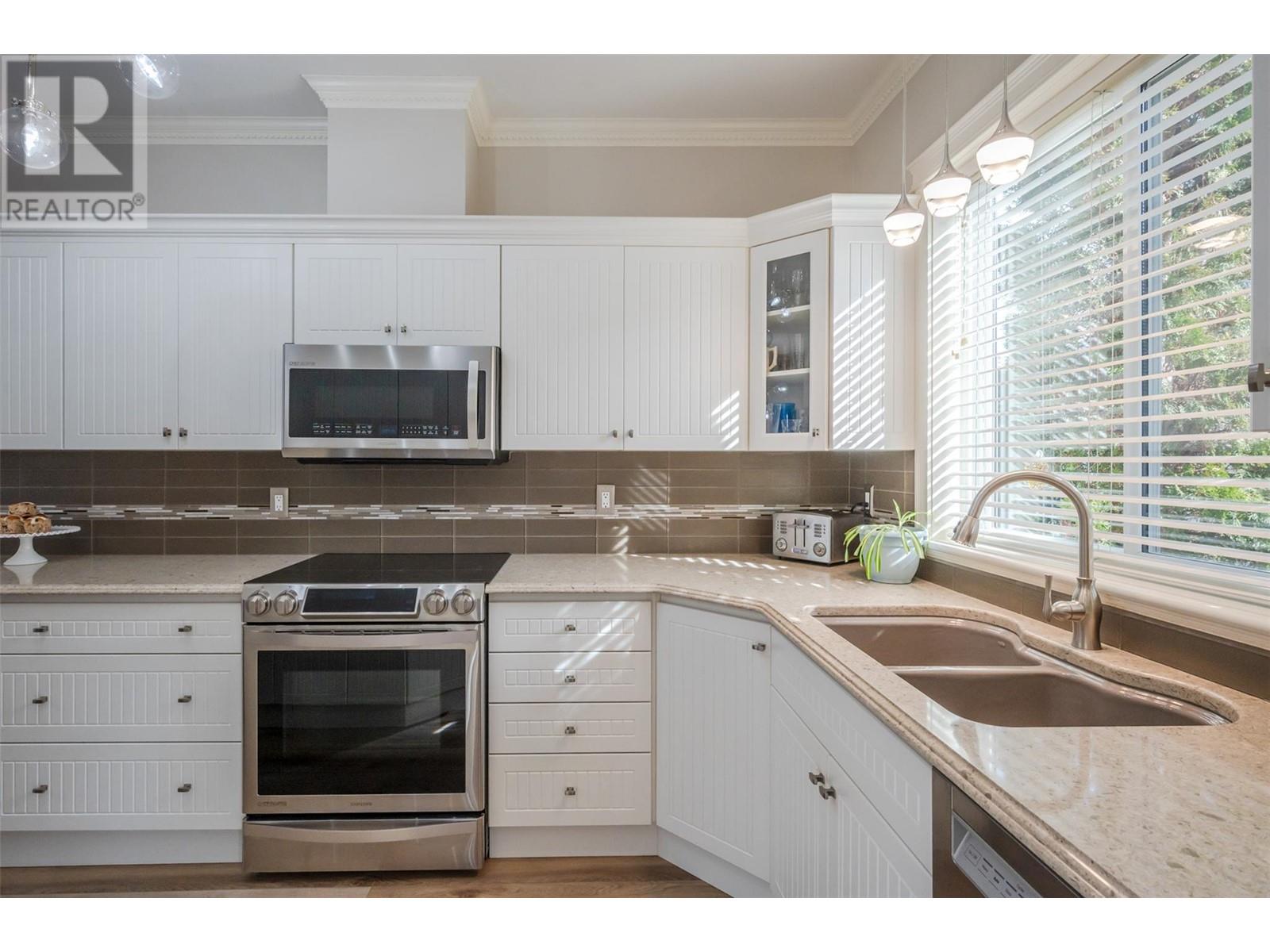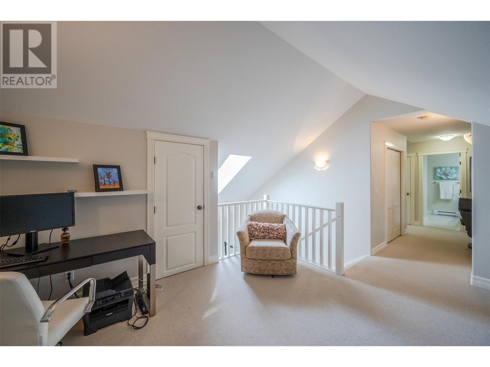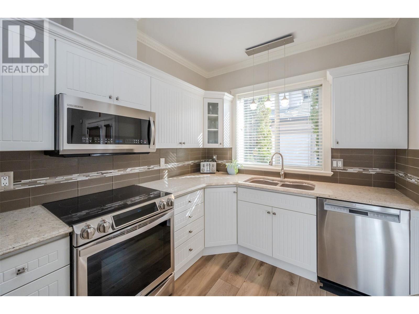 This immaculate two bedroom and three bathroom townhome in a prime location steps away from Okanagan Lake is ready for you to move right in! Amazing layout with everything you need on the main level, primary bedroom, three piece ensuite and walk-in closet, beautiful kitchen with loads of counter space and top of the line stainless appliances, large living area and feature random stone gas fireplace, access to the generous patio and yard, separate laundry room, and two piece bath. Upstairs features an additional guest bedroom, office/studio space, flex area for extra guests or could be used for a gym, additional living room etc, extra large storage room, and four piece bathroom. So many upgrades featuring vinyl plank flooring on the main, lighting, automatic blind for sky-light, quartz counters throughout, kitchen backsplash, 3M coating on all windows for sun and privacy, and hot water tank. Double garage is a bonus for all of your toys! View it today to experience a truly beautiful home in an awesome location! (id:22211)