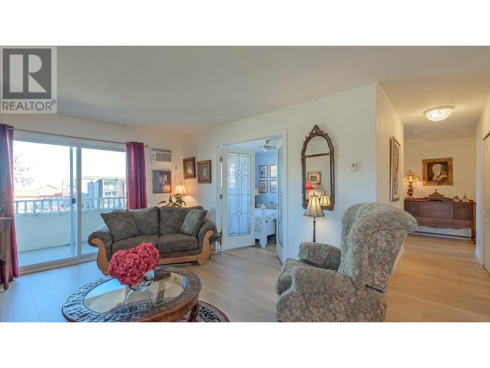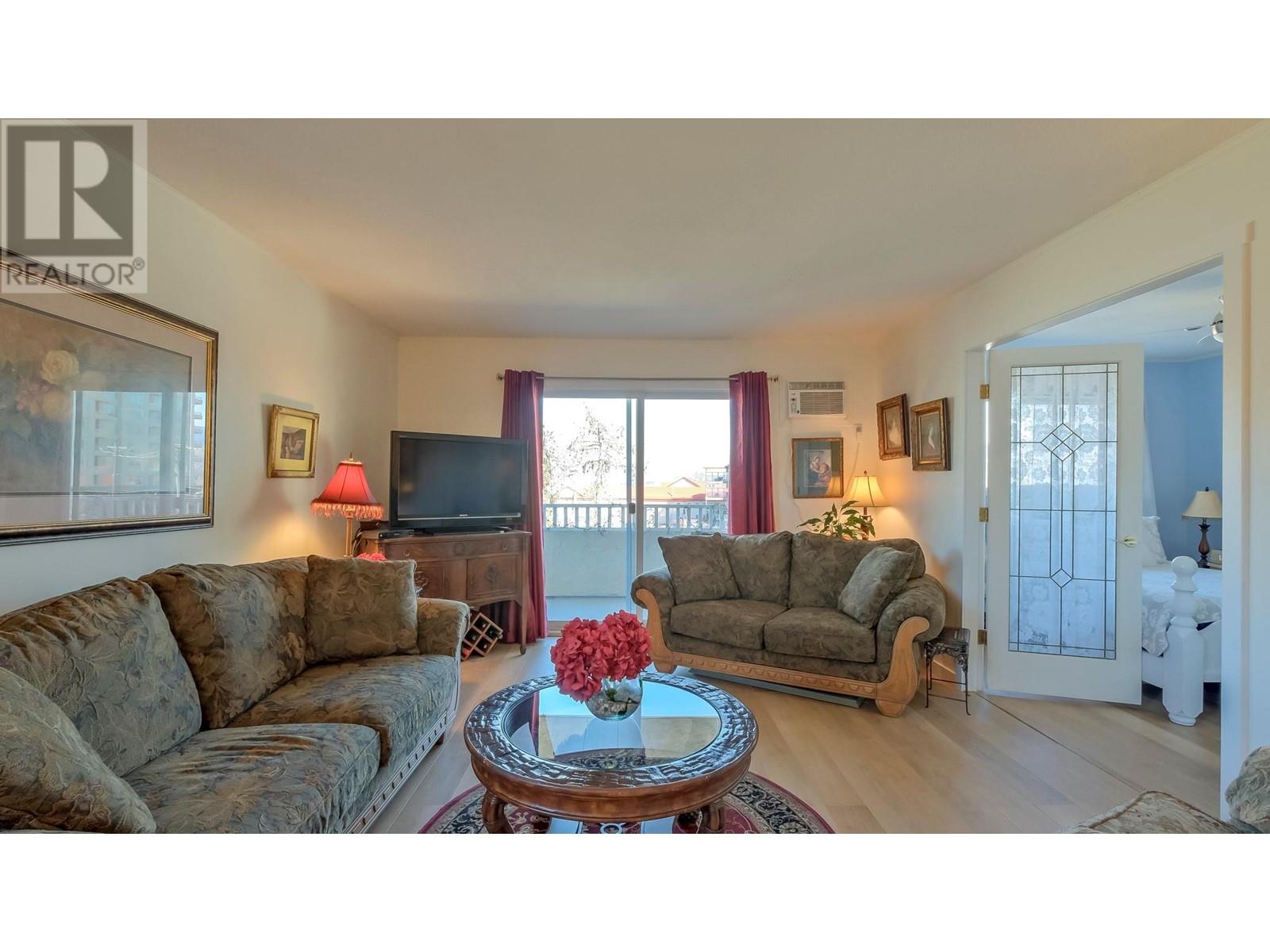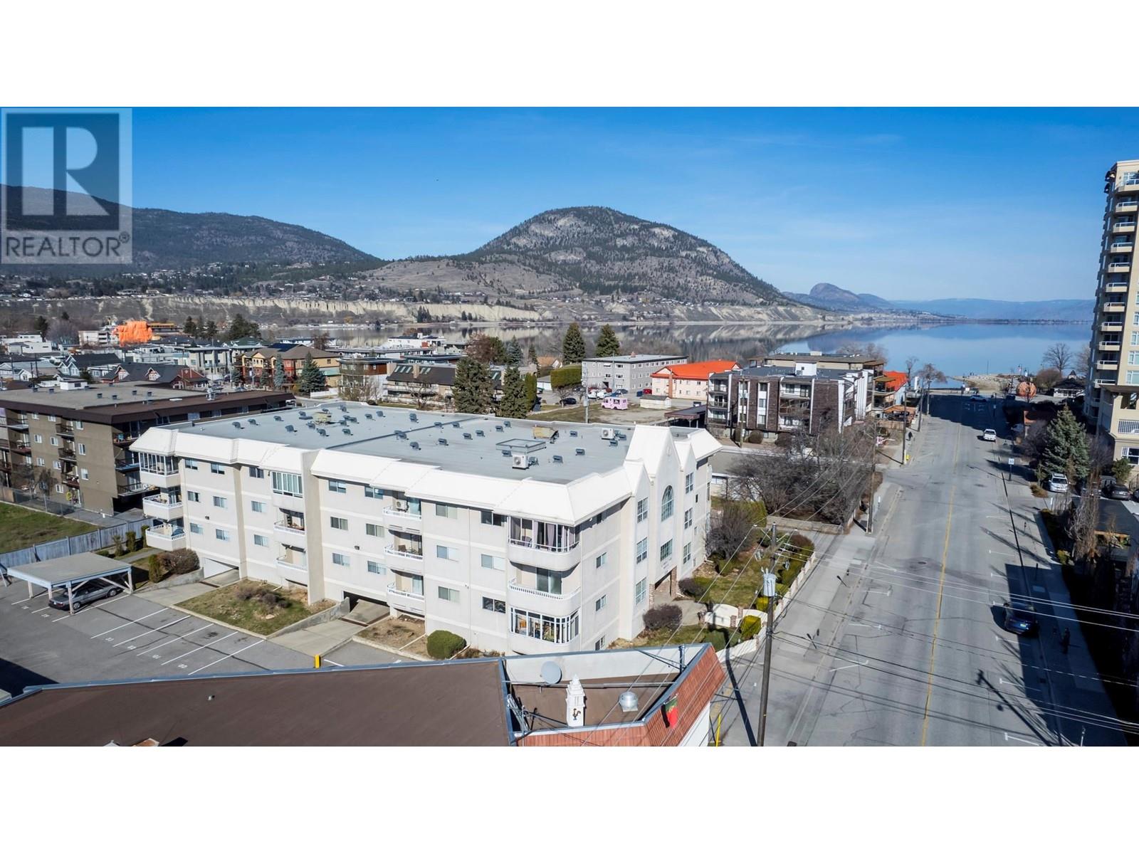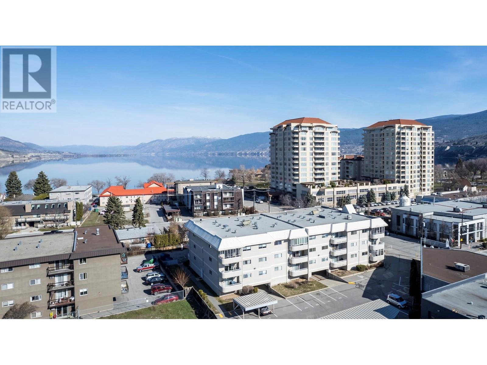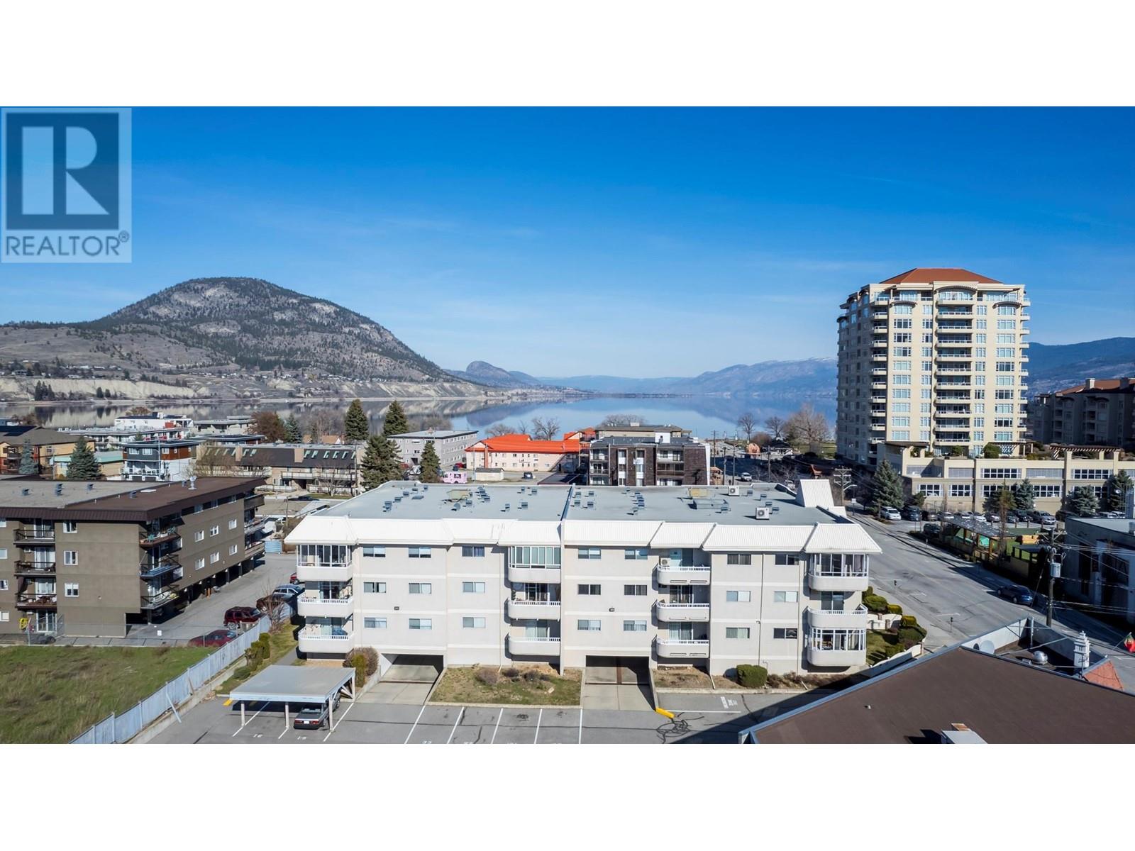 Top floor North West corner condo located literally a few steps away from the Sandy Beach of Okanagan Lake. This suite measures 1,112 sqft comprised of 2 bedrooms, 2 full bathrooms an in suite laundry. Updated flooring, paint, light switches and new hot water tank in late 2023. Step out your door to enjoy the restaurants, breweries, and boulevard walkway along Lakeshore Drive. Age restricted to 55 +, sorry no pets! (id:22211)