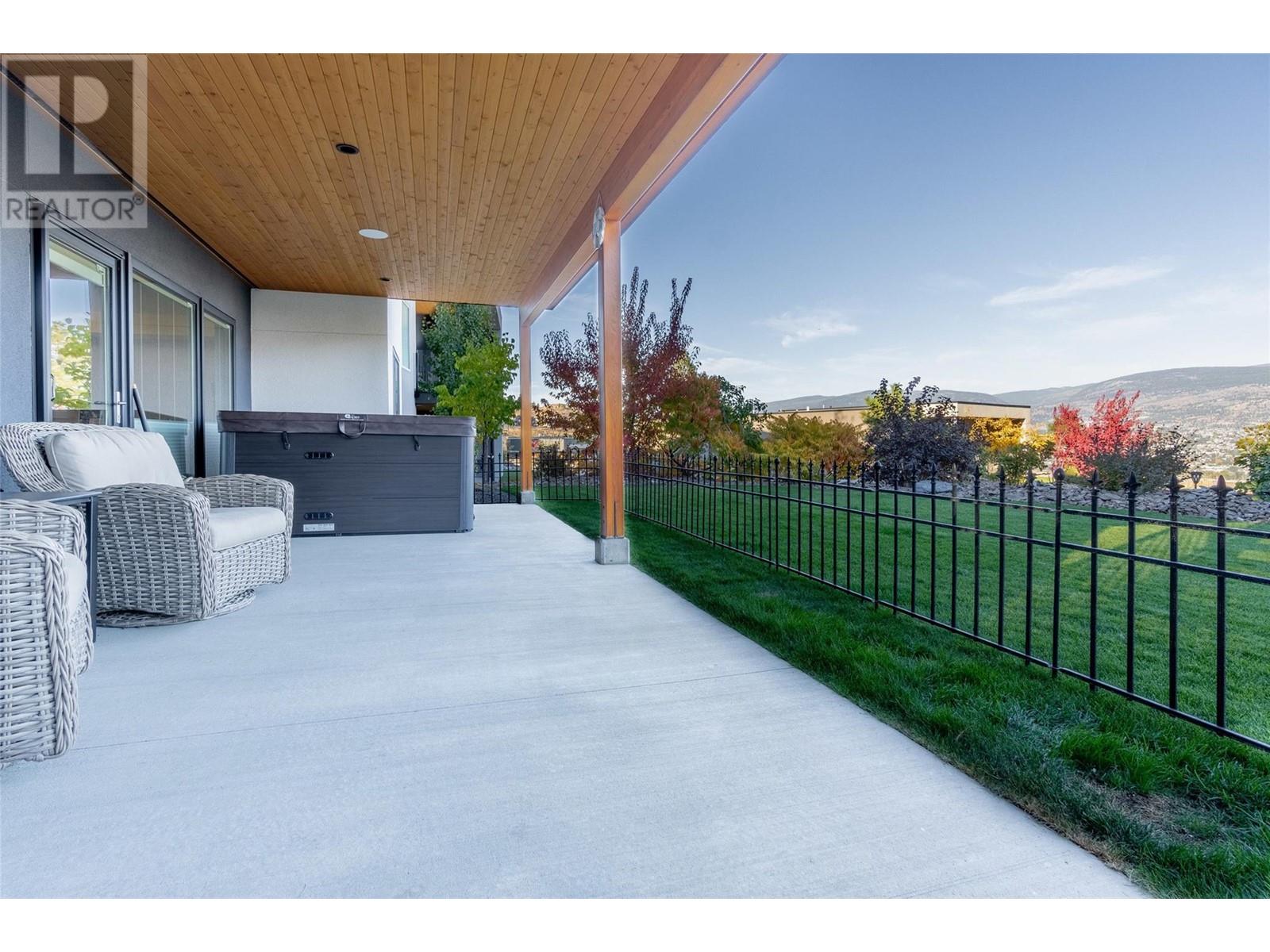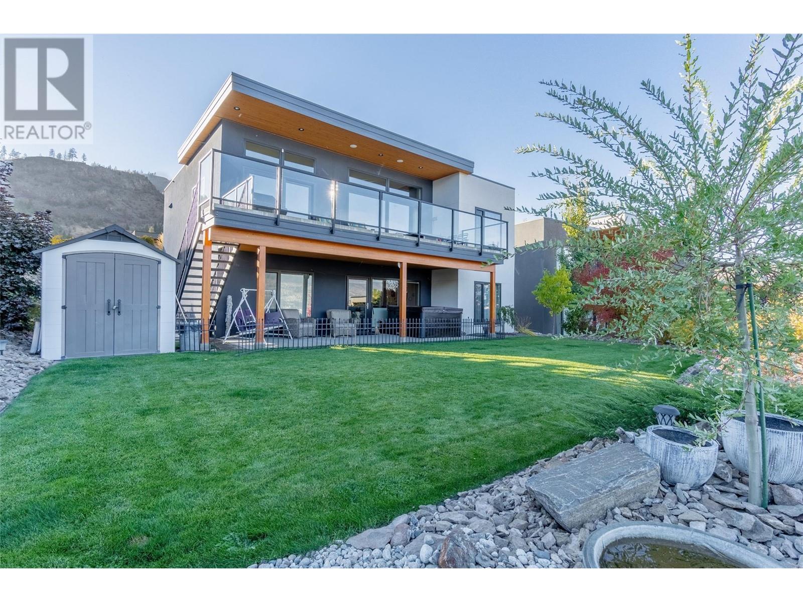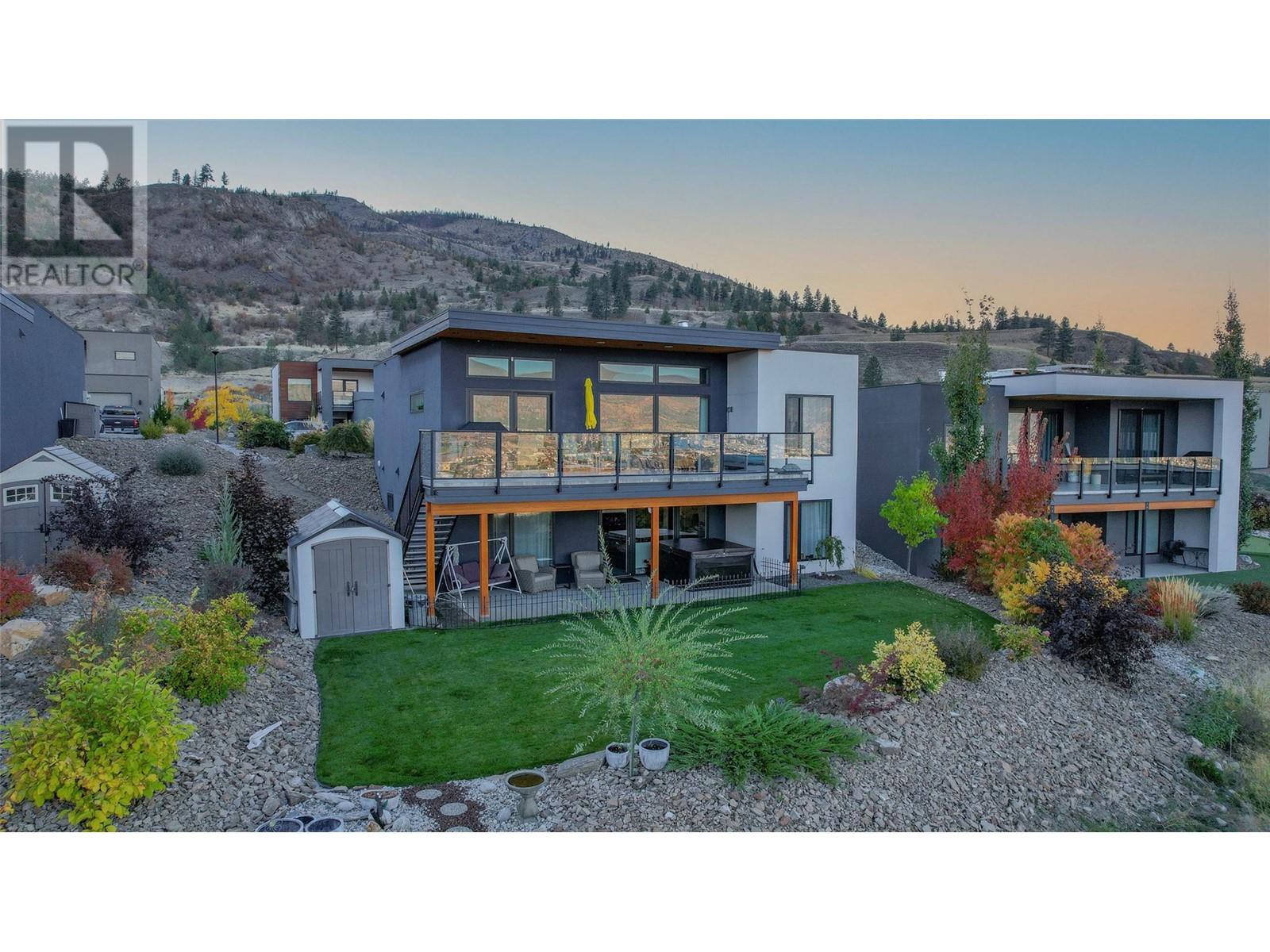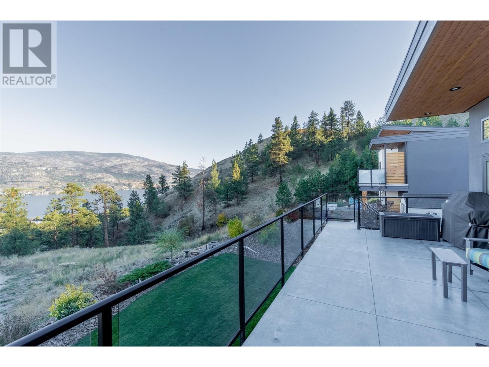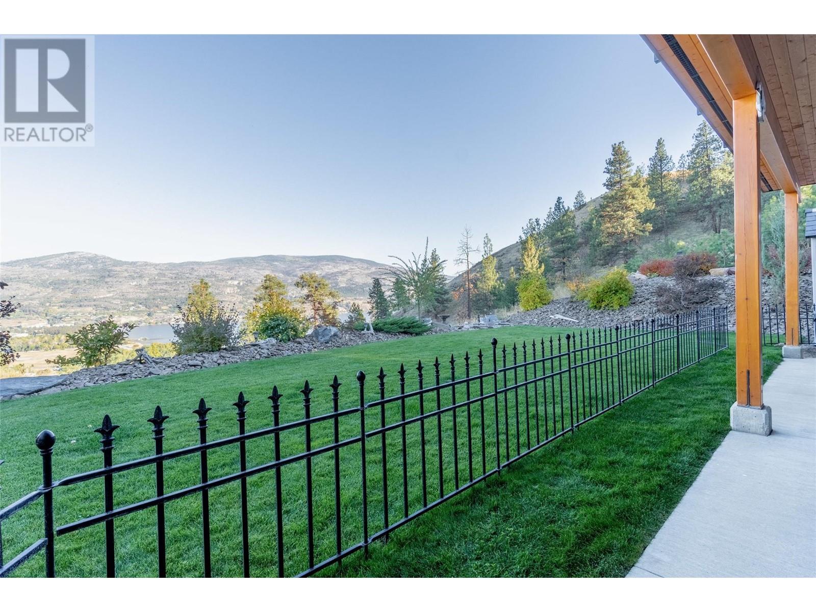 Specatular lakeview home at Skaha Hills in Penticton. This 4 bdrm, 3 bath rancher with walkout lower level has sweeping lake & mountain views. The main floor master bedroom includes a walk-in closet plus an ensuite bathroom with a luxurious shower & double sinks. The gourmet kitchen has lots of room for storage, an oversized island for prepping & entertaining people with an area for 4 bar stools. Enjoy the outside upper deck to take in the view, lots of room for patio furniture & barbeque. The lower level is the ideal space for your children and/or guests, complete with 3 bedrooms, a recreation area, games area, storage and another full bathroom. Beautifully landscaped front yard w/ built-in irrigation system, a large area outside for games on the grassed area & all can be stored in a large shed. Or chill in the Hot tub and relax after a hard day of golf or skiing. This home includes a gas fireplace in the living room, new Kitchenaid fridge, water softener, osmosis system & hot tub. MCA66 Audio kit w/ 6 speaker zones, upgraded stone work and cabinetry, upgraded glass double garage door, a $10,000 staircase added to the deck (exterior) and premium lift/slide patio door. There is also a clubhouse with a gym, entertainment area, pool, hot tub & Pickleball courts. (id:22211)