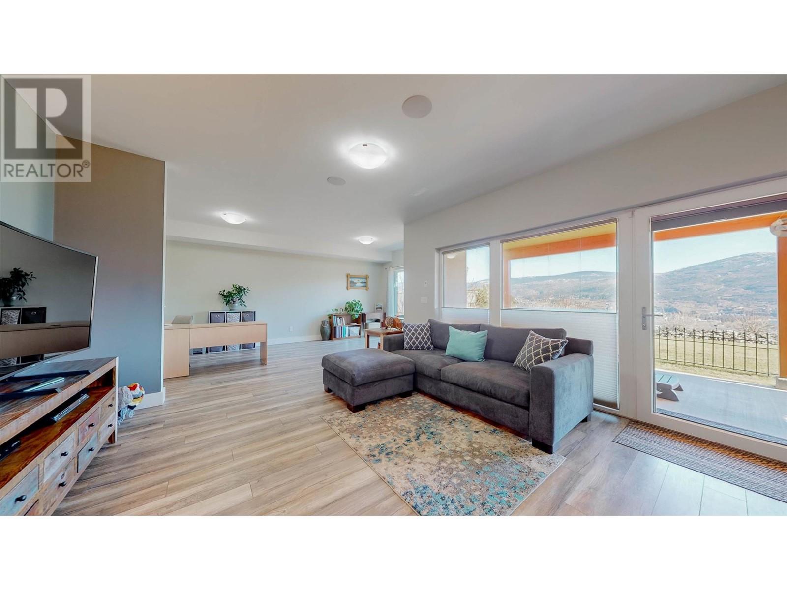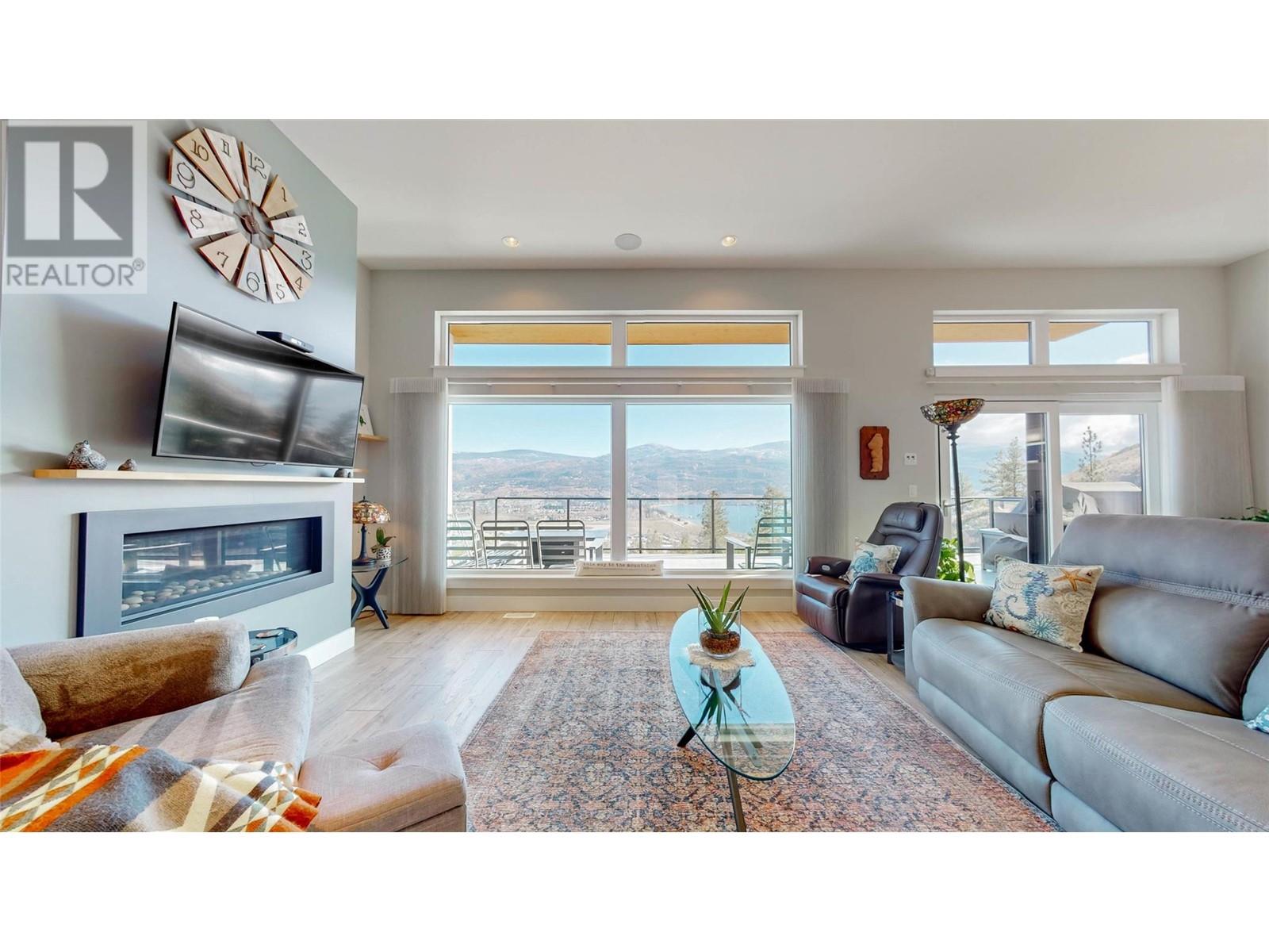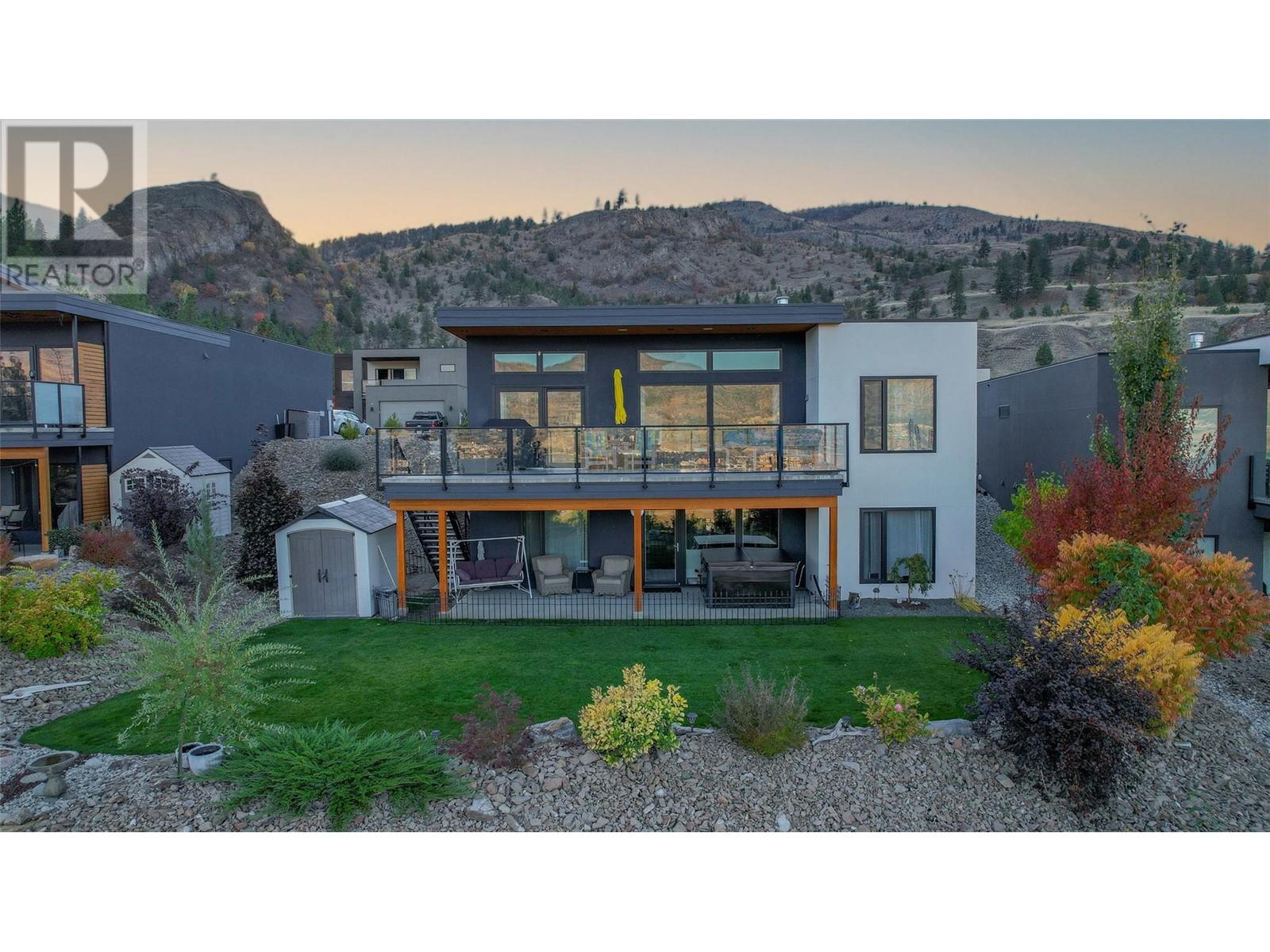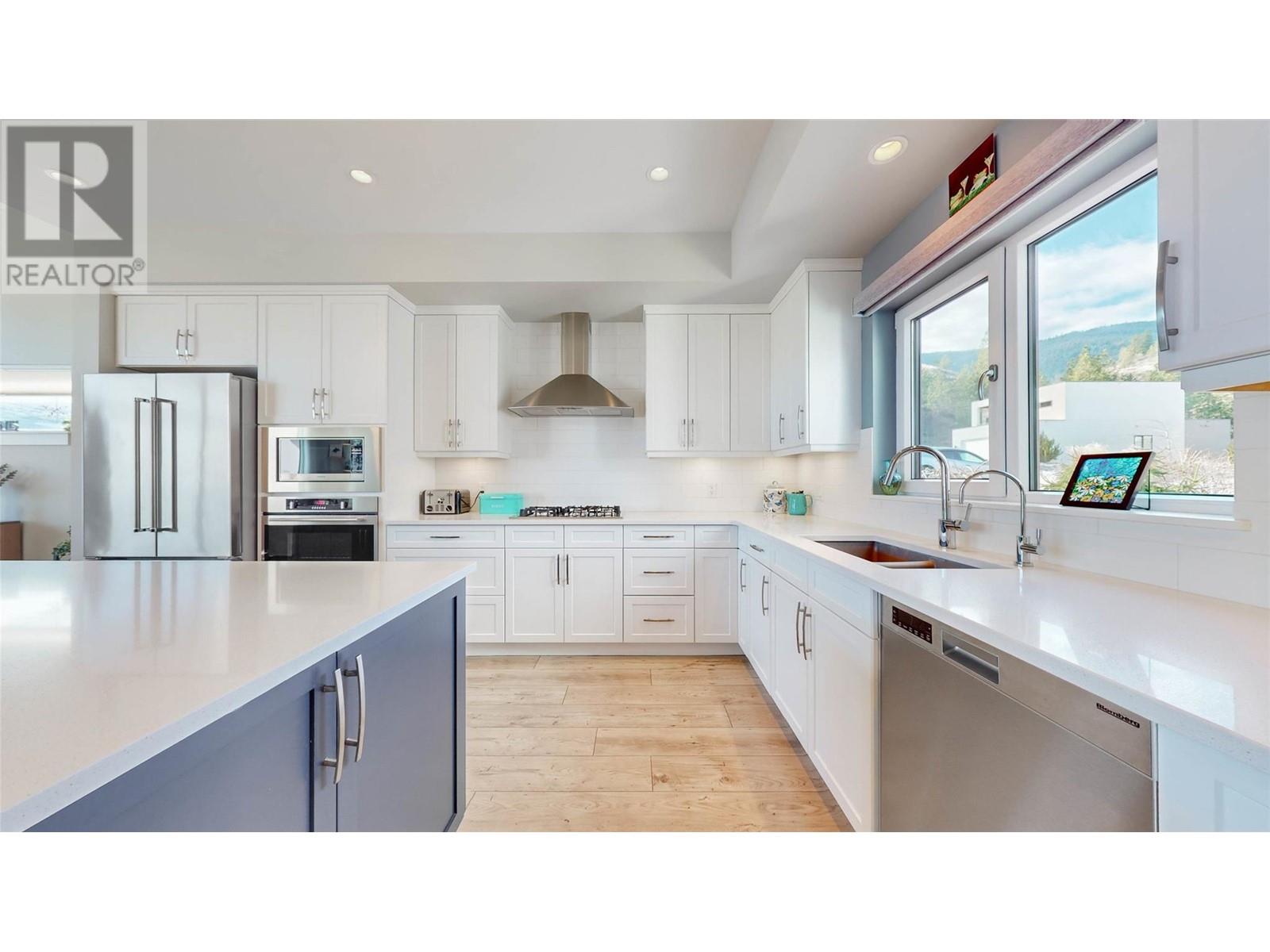 Specatular lakeview home at Skaha Hills in Penticton. This 4 bdrm, 3 bath rancher with walkout lower level has sweeping lake & mountain views. The main floor master bedroom includes a walk-in closet plus an ensuite bathroom with a luxurious shower & double sinks. The gourmet kitchen has lots of room for storage, an oversized island for prepping & entertaining people with an area for 4 bar stools. Enjoy the outside upper deck to take in the view, lots of room for patio furniture & barbeque. The lower level is the ideal space for your children and/or guests, complete with 3 bedrooms, a recreation area, games area, storage and another full bathroom. Beautifully landscaped front yard w/ built-in irrigation system, a large area outside for games on the grassed area & all can be stored in a large shed. Or chill in the Hot tub and relax after a hard day of golf or skiing. This home includes a gas fireplace in the living room, new Kitchenaid fridge, water softener, osmosis system & hot tub. MCA66 Audio kit w/ 6 speaker zones, upgraded stone work and cabinetry, upgraded glass double garage door, a $10,000 staircase added to the deck (exterior) and premium lift/slide patio door. There is also a clubhouse with a gym, entertainment area, pool, hot tub & Pickleball courts. (id:22211)