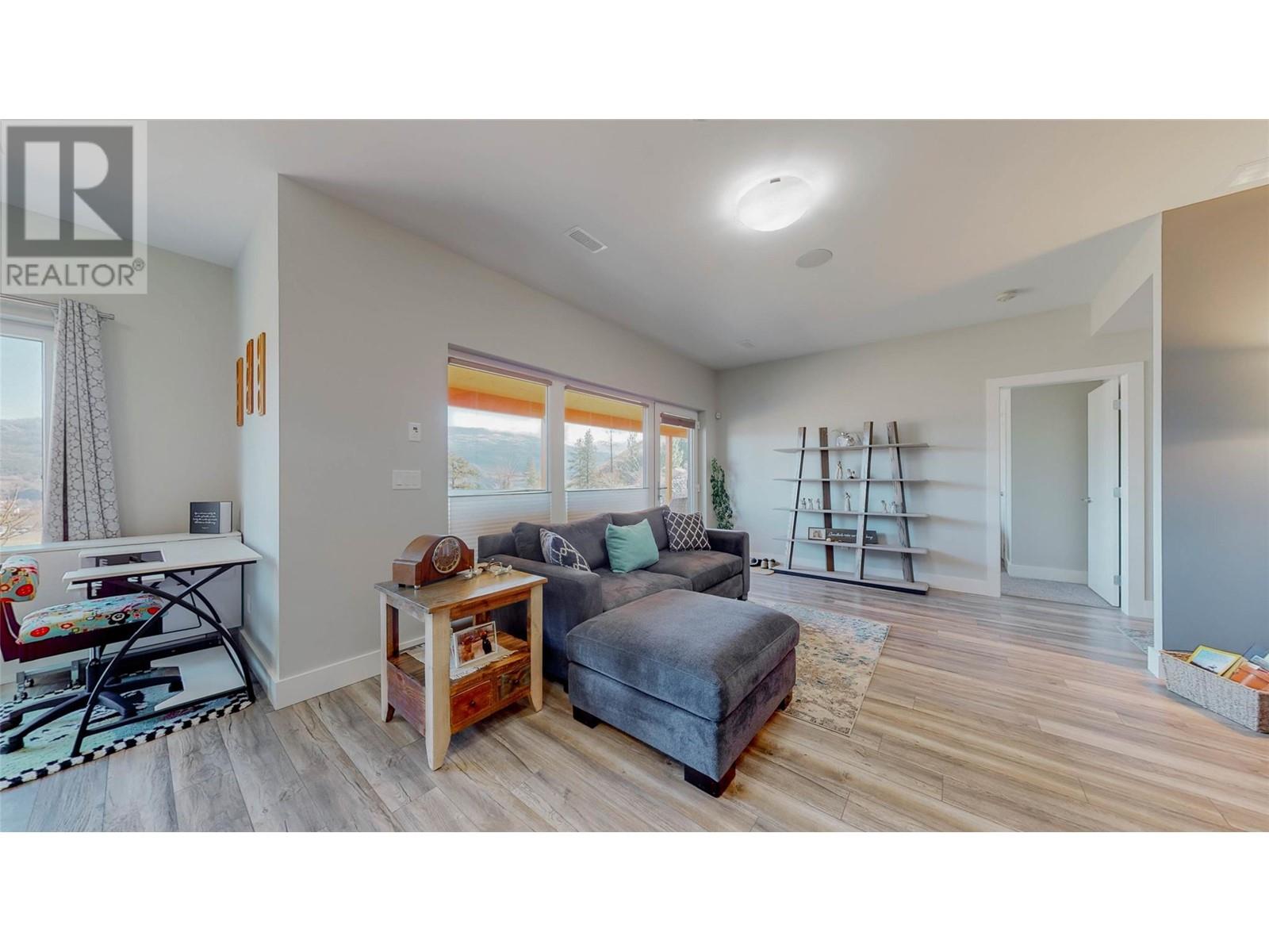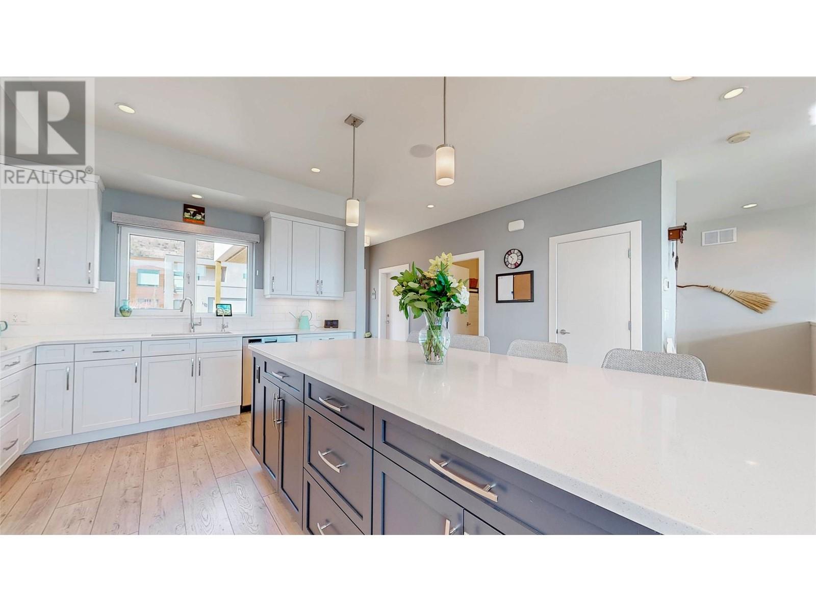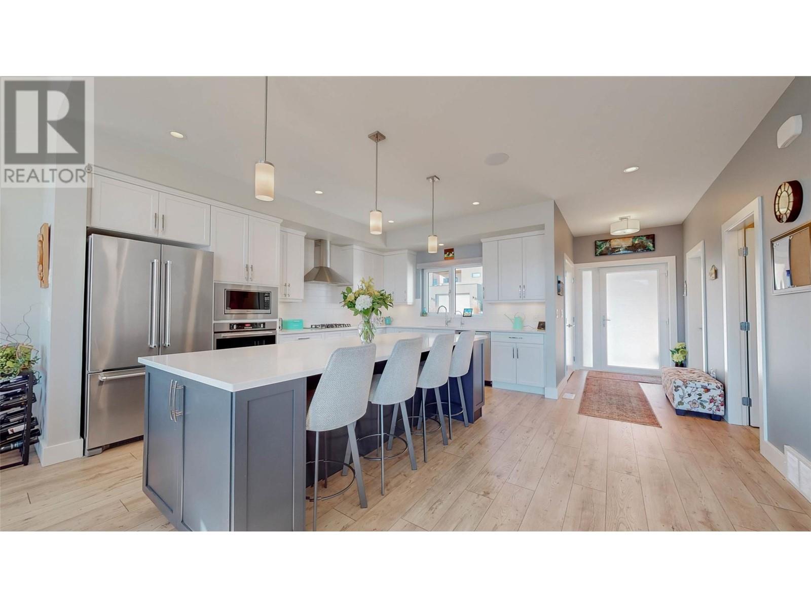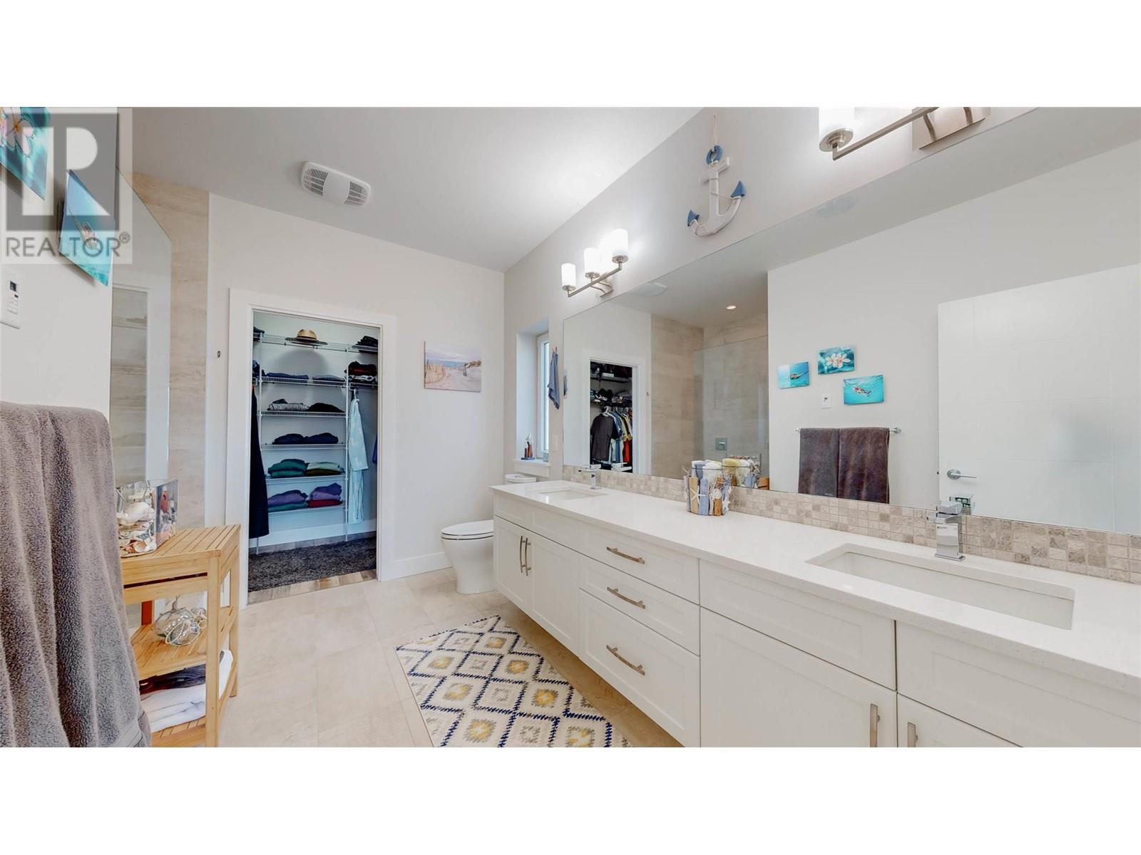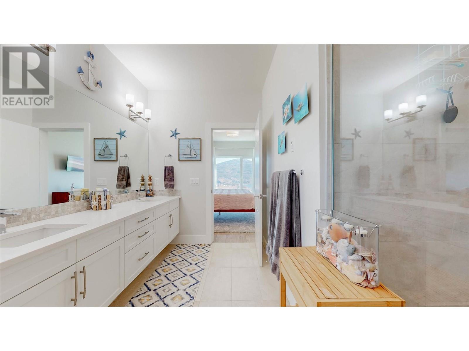 Specatular lakeview home at Skaha Hills in Penticton. This 4 bdrm, 3 bath rancher with walkout lower level has sweeping lake & mountain views. The main floor master bedroom includes a walk-in closet plus an ensuite bathroom with a luxurious shower & double sinks. The gourmet kitchen has lots of room for storage, an oversized island for prepping & entertaining people with an area for 4 bar stools. Enjoy the outside upper deck to take in the view, lots of room for patio furniture & barbeque. The lower level is the ideal space for your children and/or guests, complete with 3 bedrooms, a recreation area, games area, storage and another full bathroom. Beautifully landscaped front yard w/ built-in irrigation system, a large area outside for games on the grassed area & all can be stored in a large shed. Or chill in the Hot tub and relax after a hard day of golf or skiing. This home includes a gas fireplace in the living room, new Kitchenaid fridge, water softener, osmosis system & hot tub. MCA66 Audio kit w/ 6 speaker zones, upgraded stone work and cabinetry, upgraded glass double garage door, a $10,000 staircase added to the deck (exterior) and premium lift/slide patio door. There is also a clubhouse with a gym, entertainment area, pool, hot tub & Pickleball courts. (id:22211)