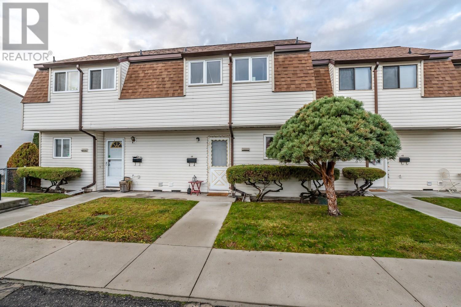 Welcome to #46 in Baskin Gardens, a family oriented townhome complex in Central Penticton! This 2 storey townhome west facing unit is perfect for a small family, first time home buyer or investor! This well kept 3 bed, 1 bath home has a designated parking stall in front of the unit plus additional street parking around the corner. This home is conveniently located walking distance to Parkway Elementary School, Cherry Lane Mall and various restaurants. Close to public transit, Walmart, the airport and has easy access to the Channel Parkway. Fully fenced backyard with patio and storage area. Long term rentals allowed, 2 pets allowed and no age restrictions here! Contact the listing agent to book your showing! (id:22211)
