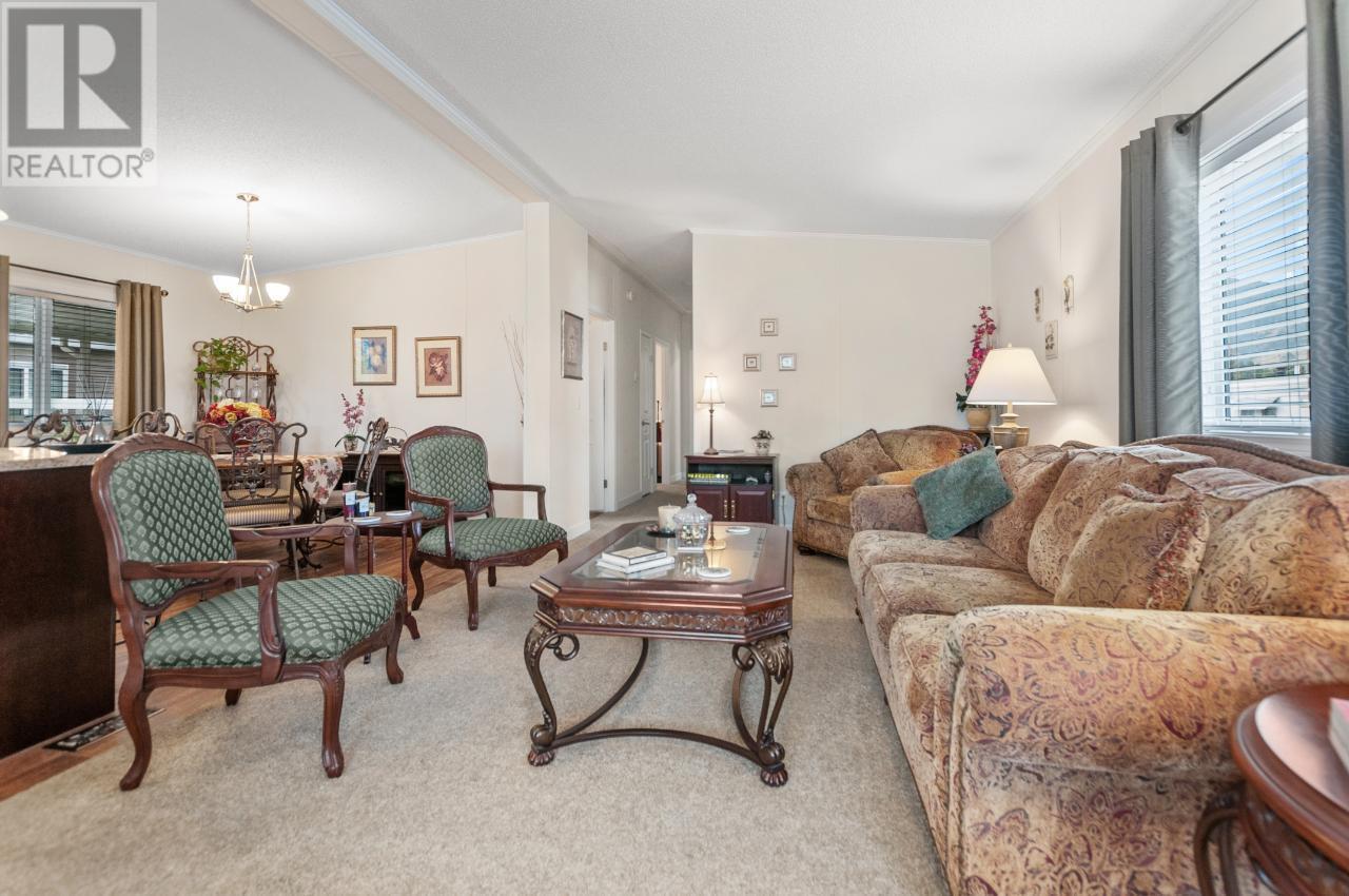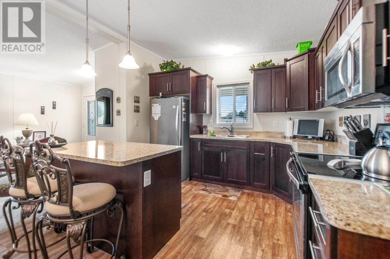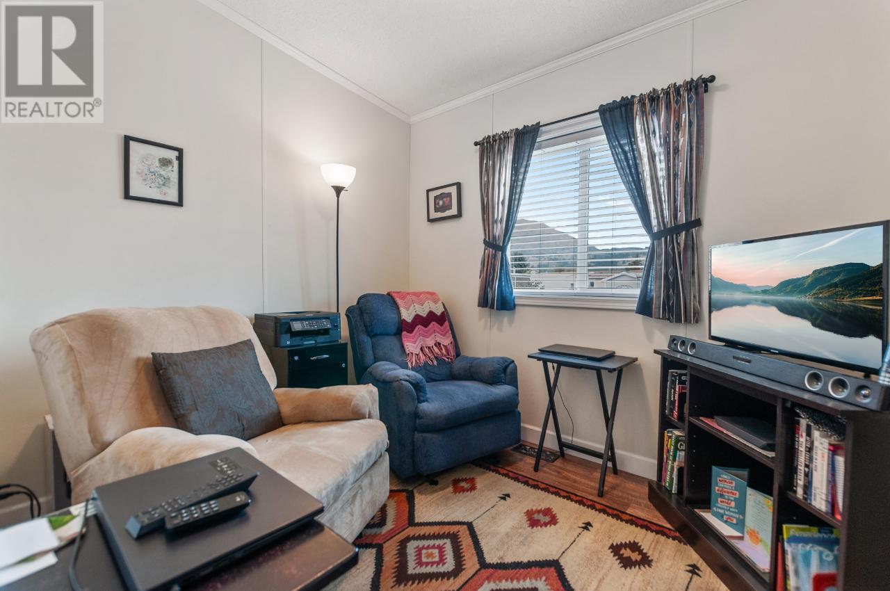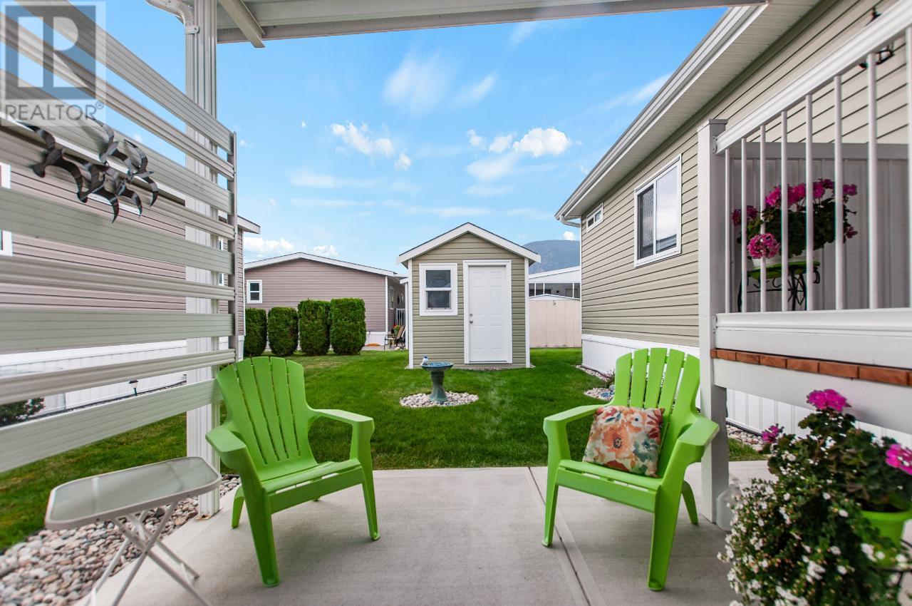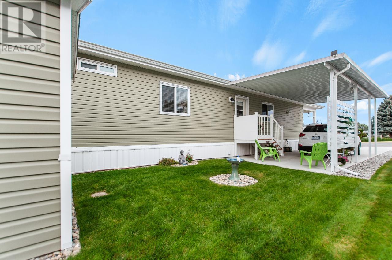 Beautiful like-new double-wide home in Figueira's Mobile Home Park. Built in 2016, everything in this home has been meticulously maintained and it shows. This 2bd + den, 2ba home has it all - huge open-concept great room with loads of natural light, kitchen with stainless steel appliances, large island, & solid surface countertops, a good-sized den, and a convenient laundry-room with access to the covered parking. The cozy primary bedroom has a 3-pc ensuite and loads of closet space. There is also a second bedroom and a second 4-pc bathroom. The lovely covered porch is perfect for relaxing evenings or family dinners, and there is an 8' x 8' storage shed in the backyard. Figueira's Mobile Home Park is 55+, no pets, no rentals, and features stunning grounds and a great clubhouse. The park is very well run, at the end of a quiet street, close to the Senior's Centre, and only a short walk to Skaha Lake & Beach. Monthly pad rent is $608.00. (id:22211)