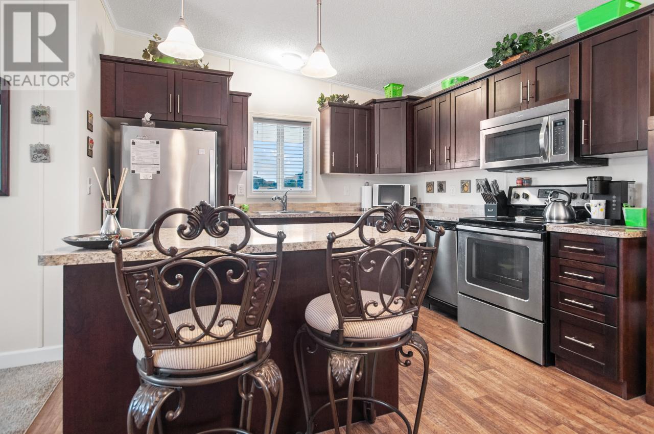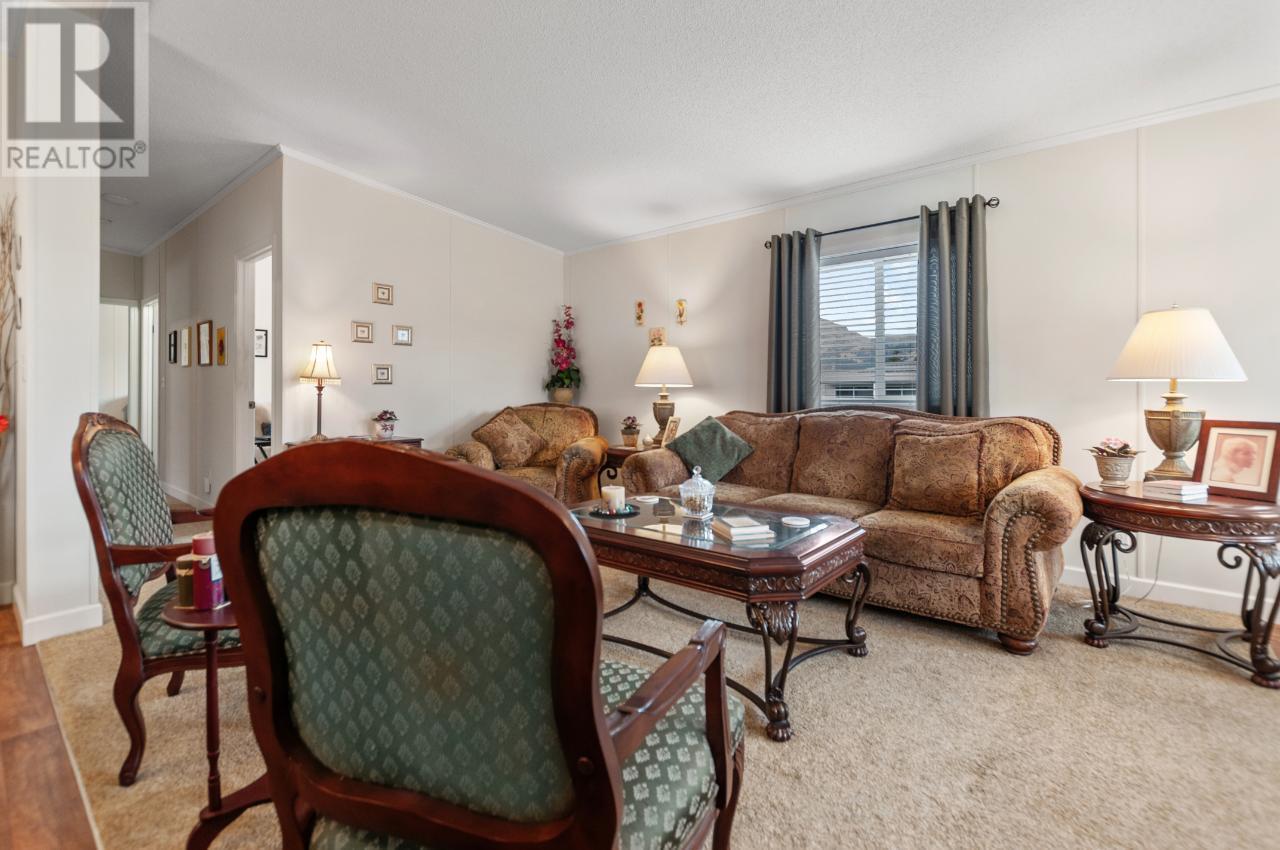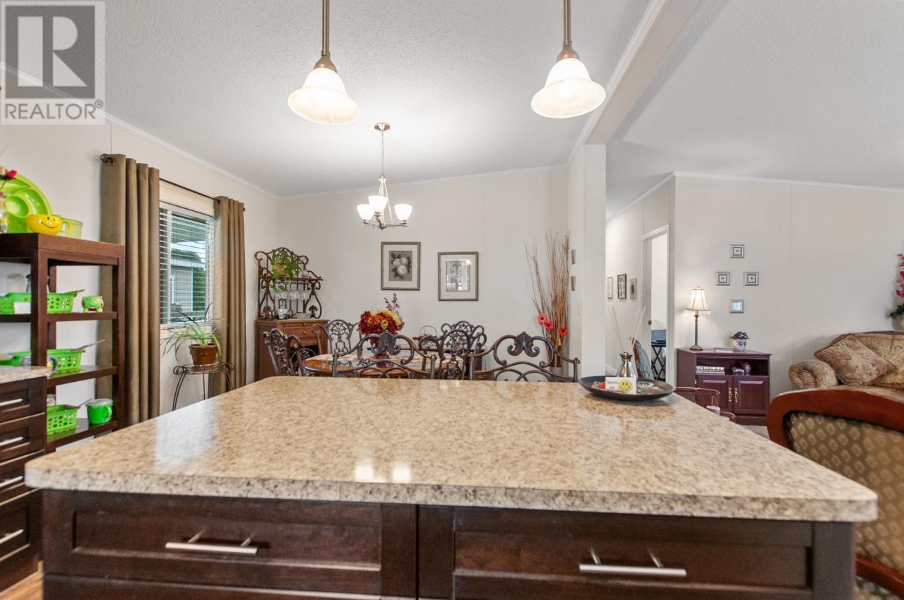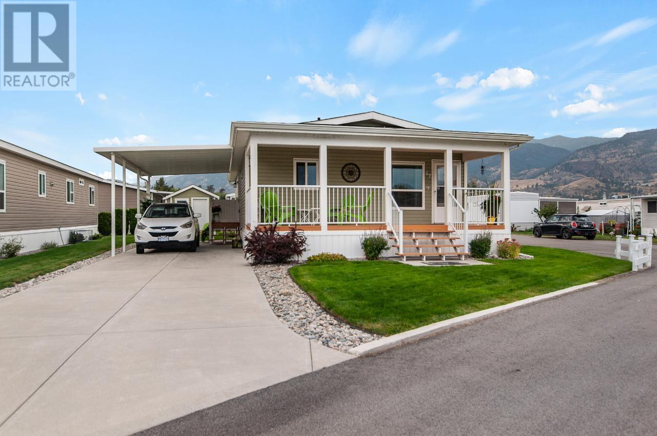 Beautiful like-new double-wide home in Figueira's Mobile Home Park. Built in 2016, everything in this home has been meticulously maintained and it shows. This 2bd + den, 2ba home has it all - huge open-concept great room with loads of natural light, kitchen with stainless steel appliances, large island, & solid surface countertops, a good-sized den, and a convenient laundry-room with access to the covered parking. The cozy primary bedroom has a 3-pc ensuite and loads of closet space. There is also a second bedroom and a second 4-pc bathroom. The lovely covered porch is perfect for relaxing evenings or family dinners, and there is an 8' x 8' storage shed in the backyard. Figueira's Mobile Home Park is 55+, no pets, no rentals, and features stunning grounds and a great clubhouse. The park is very well run, at the end of a quiet street, close to the Senior's Centre, and only a short walk to Skaha Lake & Beach. Monthly pad rent is $608.00. (id:22211)
