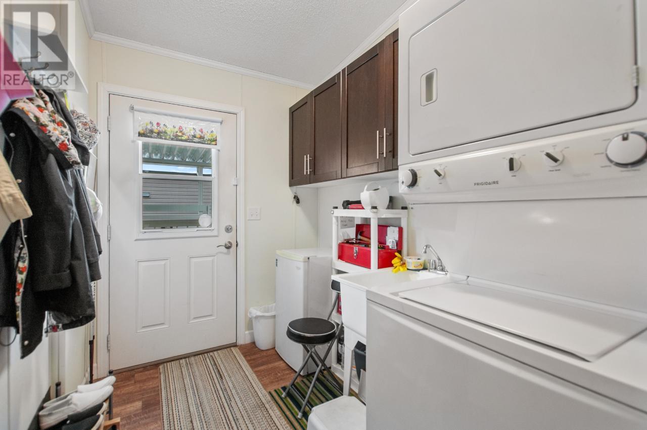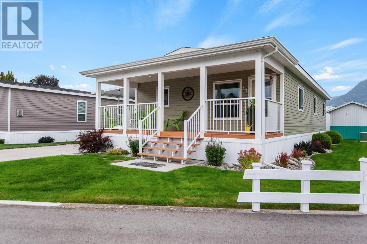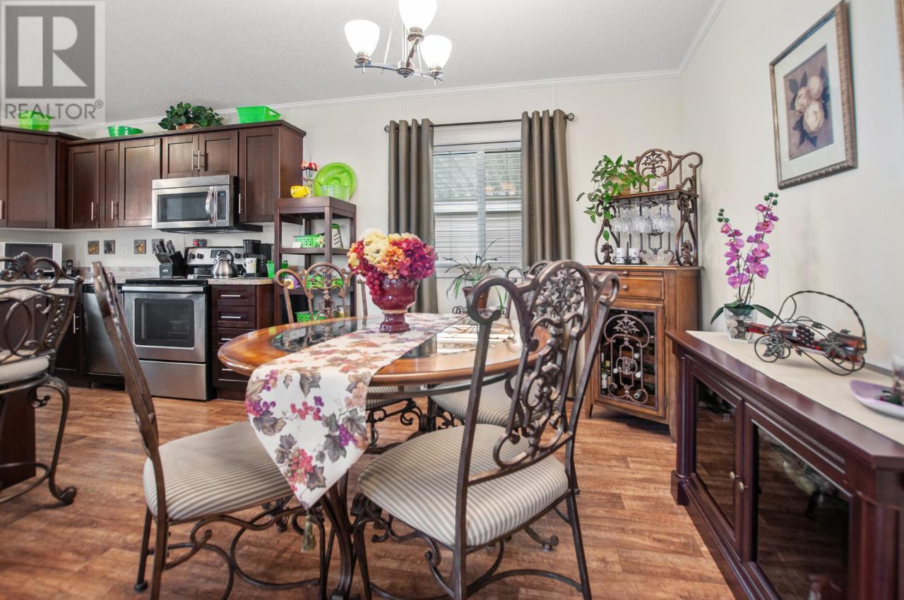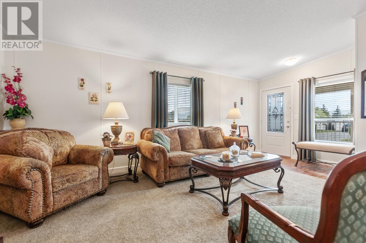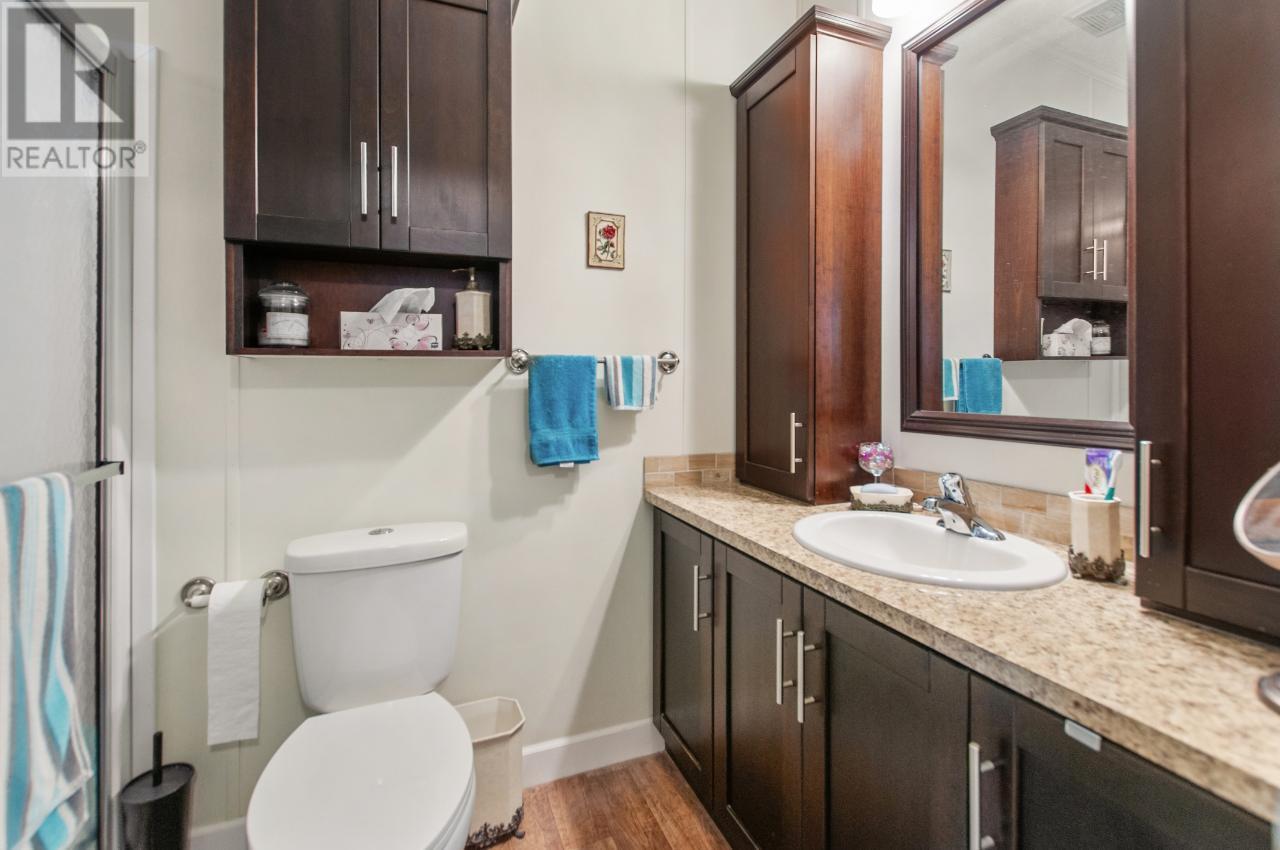 Beautiful like-new double-wide home in Figueira's Mobile Home Park. Built in 2016, everything in this home has been meticulously maintained and it shows. This 2bd + den, 2ba home has it all - huge open-concept great room with loads of natural light, kitchen with stainless steel appliances, large island, & solid surface countertops, a good-sized den, and a convenient laundry-room with access to the covered parking. The cozy primary bedroom has a 3-pc ensuite and loads of closet space. There is also a second bedroom and a second 4-pc bathroom. The lovely covered porch is perfect for relaxing evenings or family dinners, and there is an 8' x 8' storage shed in the backyard. Figueira's Mobile Home Park is 55+, no pets, no rentals, and features stunning grounds and a great clubhouse. The park is very well run, at the end of a quiet street, close to the Senior's Centre, and only a short walk to Skaha Lake & Beach. Monthly pad rent is $608.00. (id:22211)