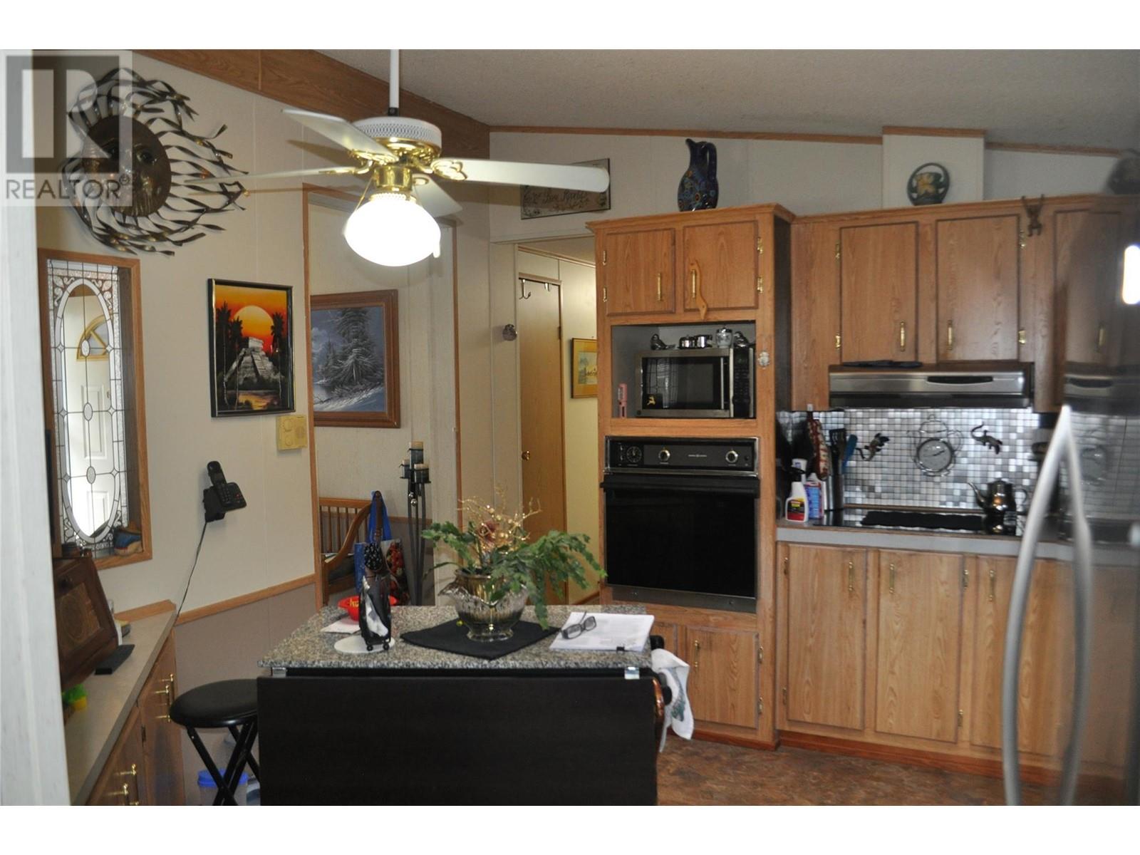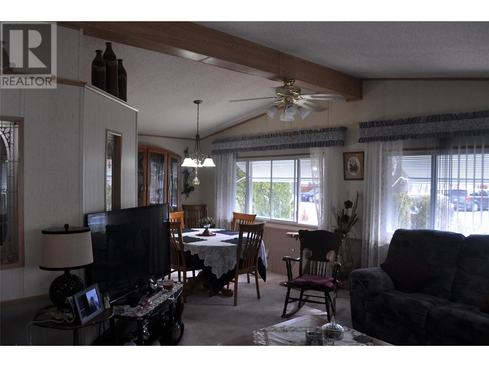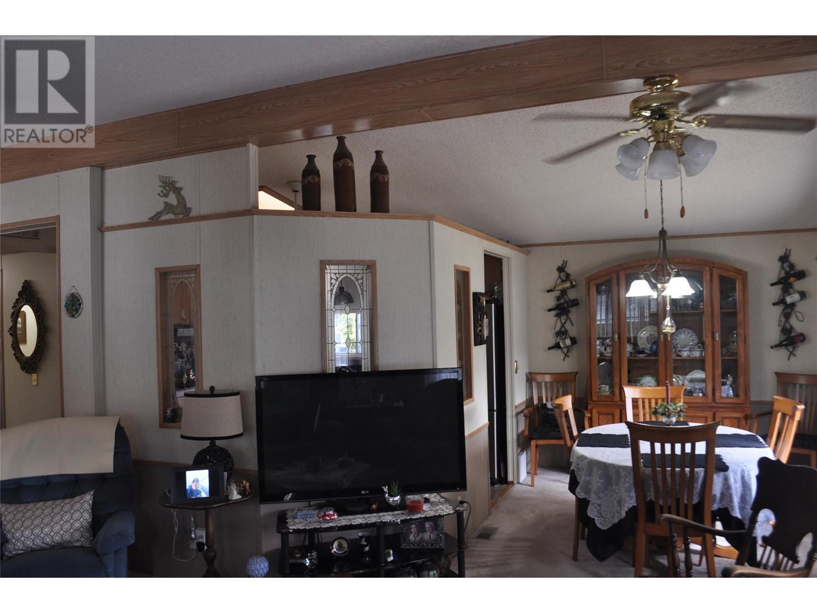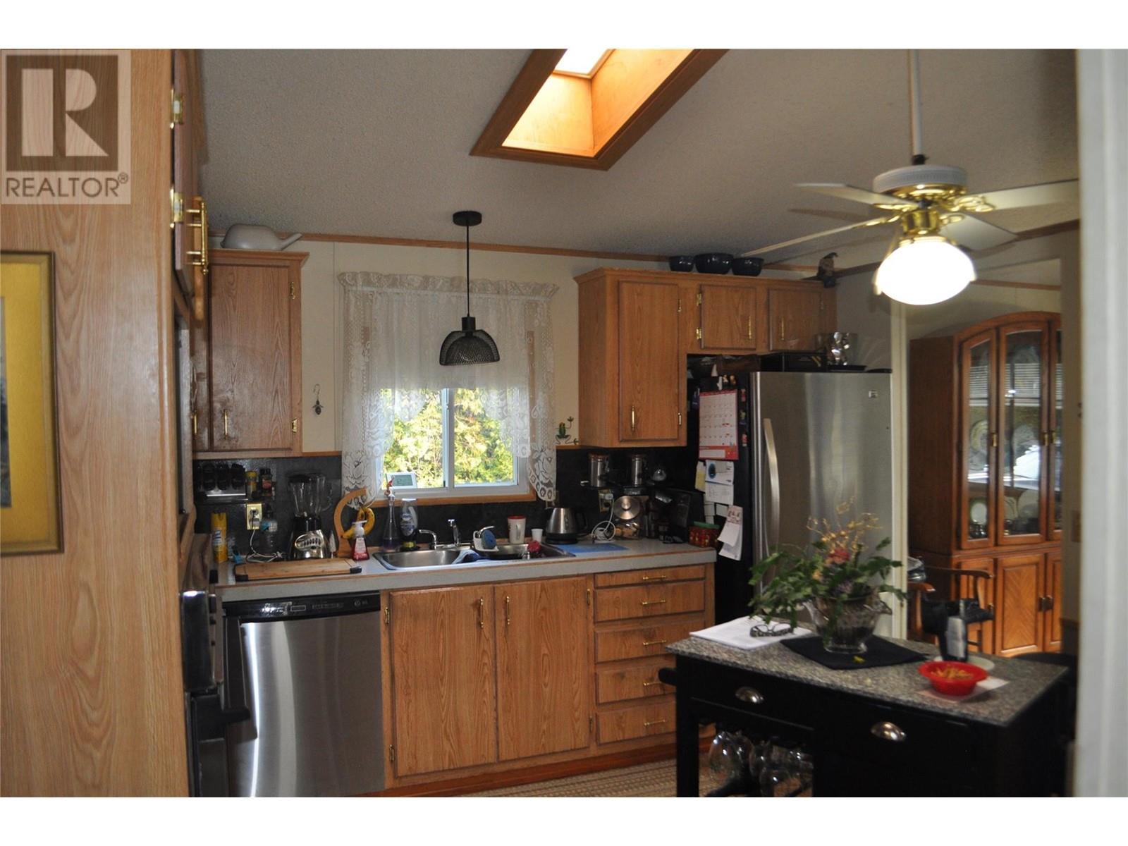 Welcome to your own retreat off of the oxbow and close to Skaha Lake! This well-maintained 1990s double-wide mobile home offers comfort and natural beauty. Situated on one of the largest lots in the park, it offers a peaceful setting with the creek as your backdrop and no rear neighbors, just the presence of wildlife. Inside, you'll find spacious living areas with plenty of natural light. The kitchen is well-equipped with ample storage and counter space, ideal for cooking and entertaining. The adjacent dining area provides a cozy spot for meals with loved ones. Two bedrooms offer comfortable living, each with closet space. The Primary bedroom includes its own ensuite bathroom for added privacy and a large private deck. Outside, the property features two storage sheds and space for outdoor enjoyment. Nature lovers will appreciate the proximity to the oxbow, perfect for bird watching and enjoying the outdoors. All Measurements are approximate and were taken by hand. Buyer to confirm room measurements if deemed important. (id:22211)