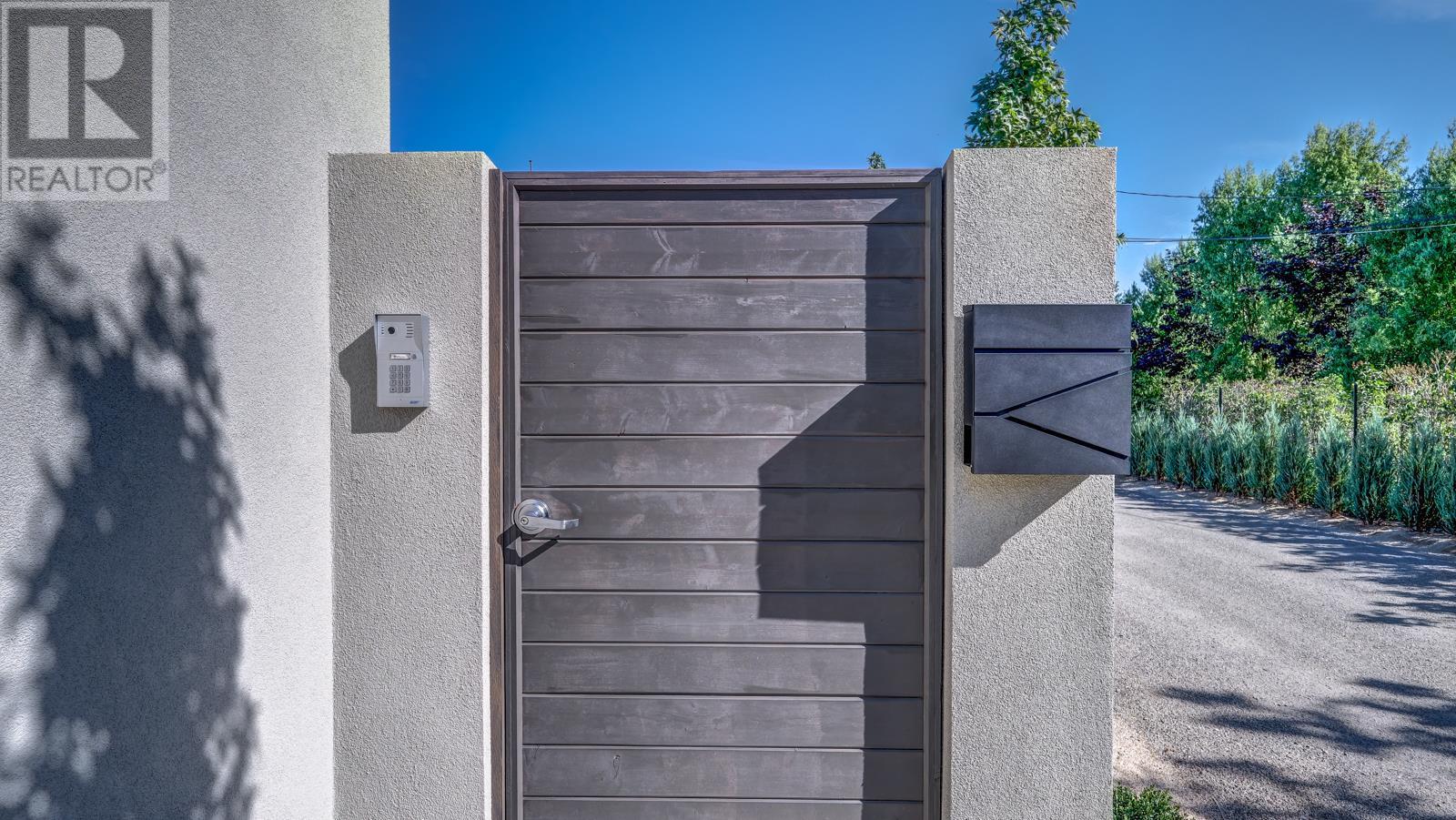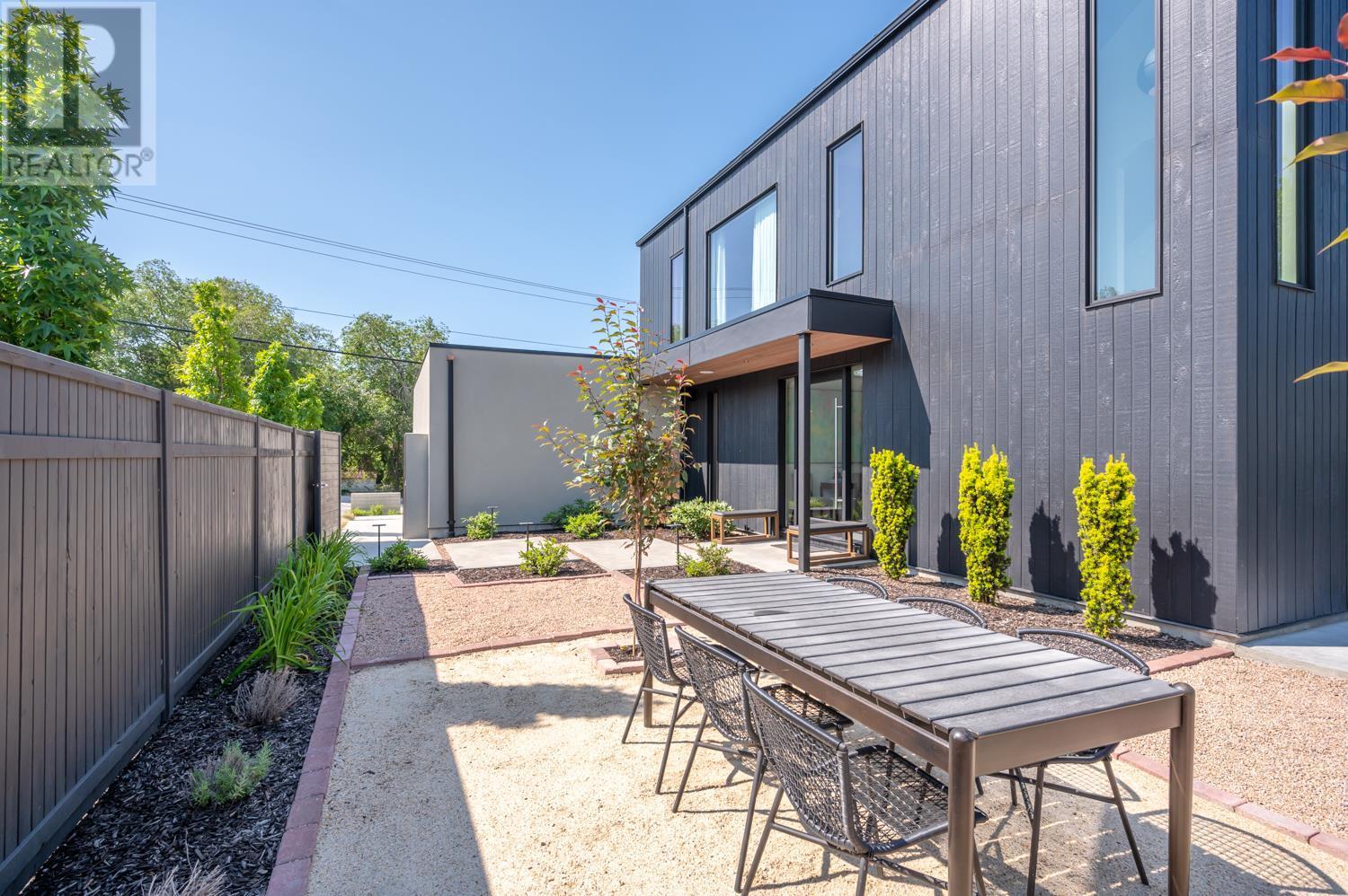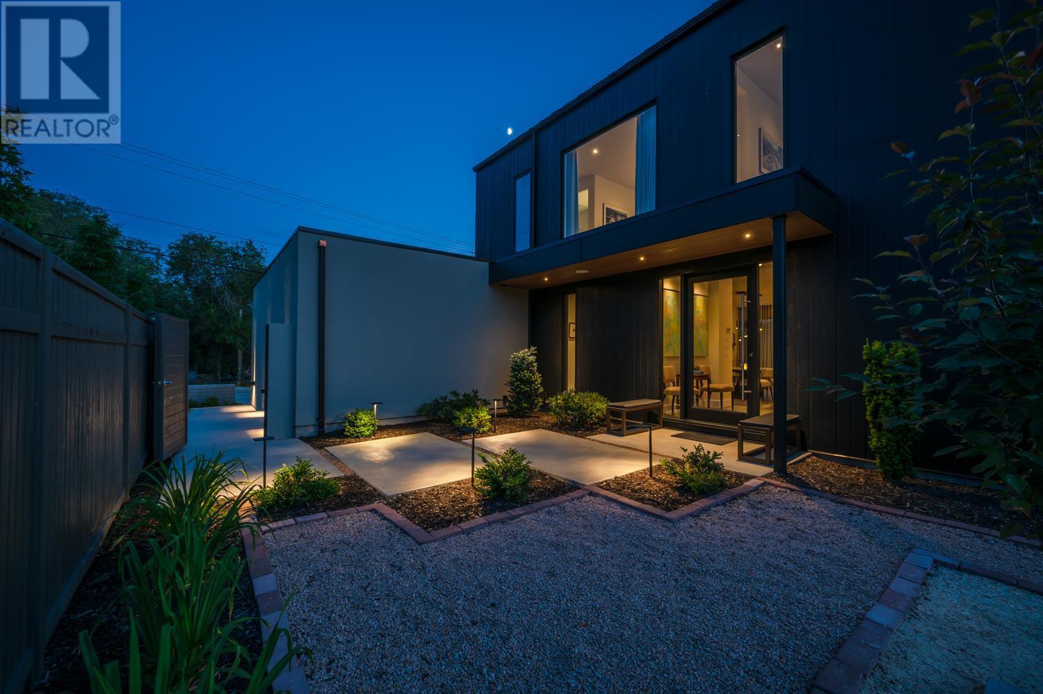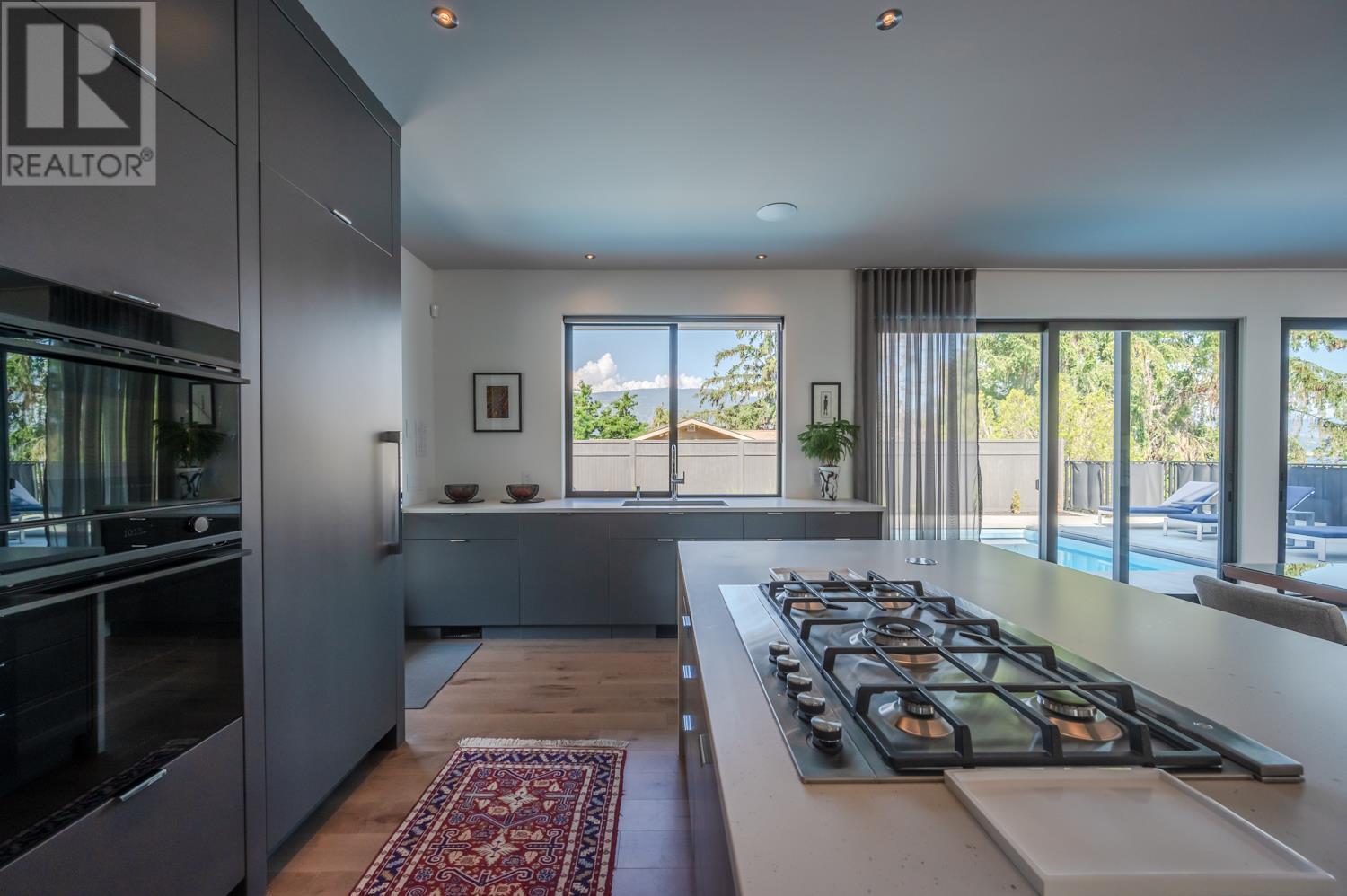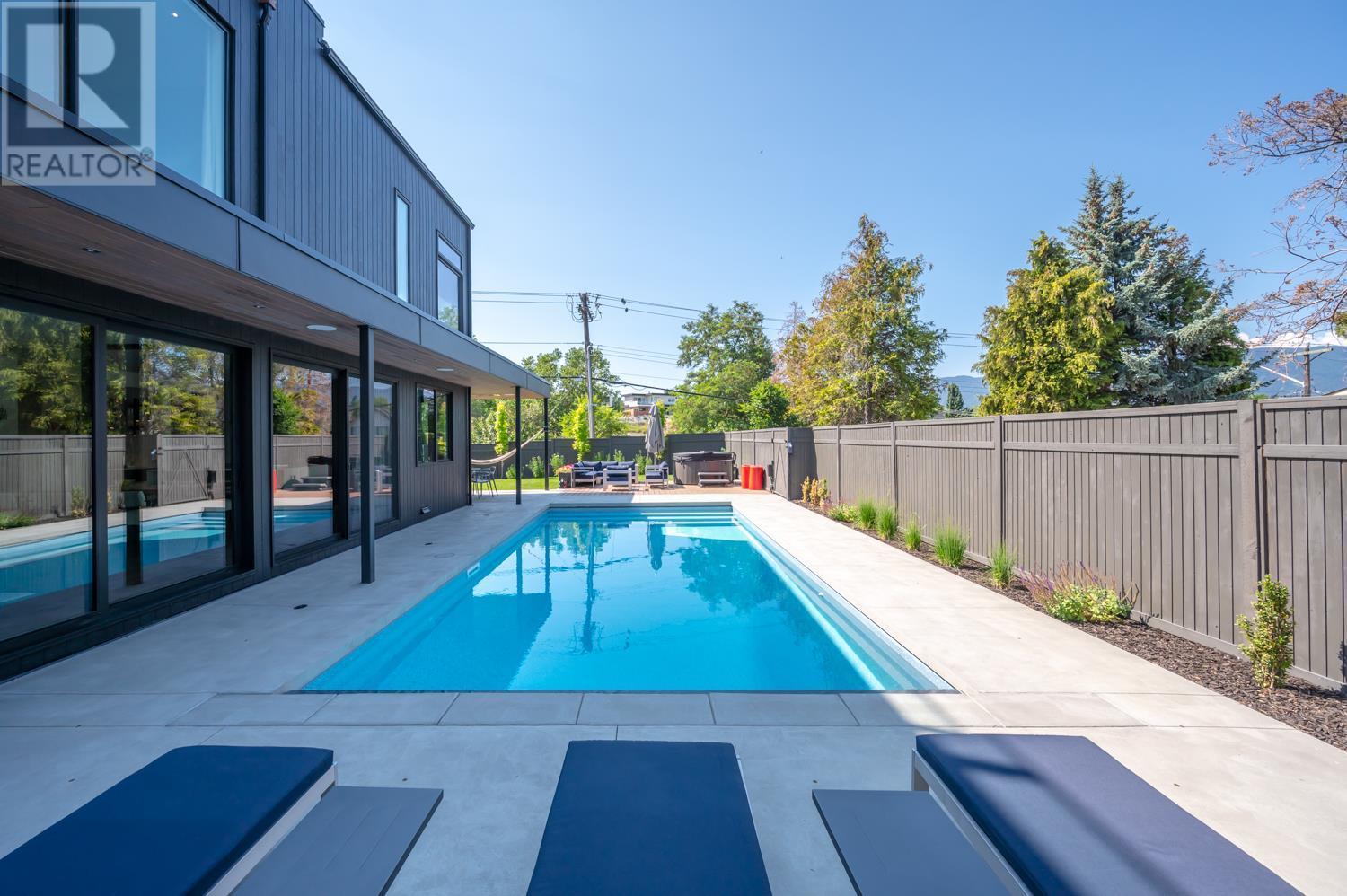 Welcome to a modern one-of-a-kind exquisitely designed residence. Located on Penticton’s Golden Mile, this elegant home is steps from the KVR and minutes from Naramata Bench wineries. A gated entrance welcomes you to a private courtyard that is also perfect for al fresco dining. The stylish and inviting open plan living and dining areas are masterfully complimented by the chef’s kitchen featuring custom cabinetry, integrated Fisher & Paykel appliances, a well-appointed dry bar, and a butler’s pantry with a secondary fridge and dishwasher. Indoor-outdoor living extends into the beautifully landscaped gardens that surround the salt water pool, jacuzzi, lounge, and covered dining and BBQ terrace. The gracious primary suite includes two walk-in closets and ensuite with a luxurious wet room. A home gym and guest suite complete the lower level with direct access to yet another garden. The highlight of this stunning home is the rooftop deck with unparalleled views of the lake and city. (id:22211)
