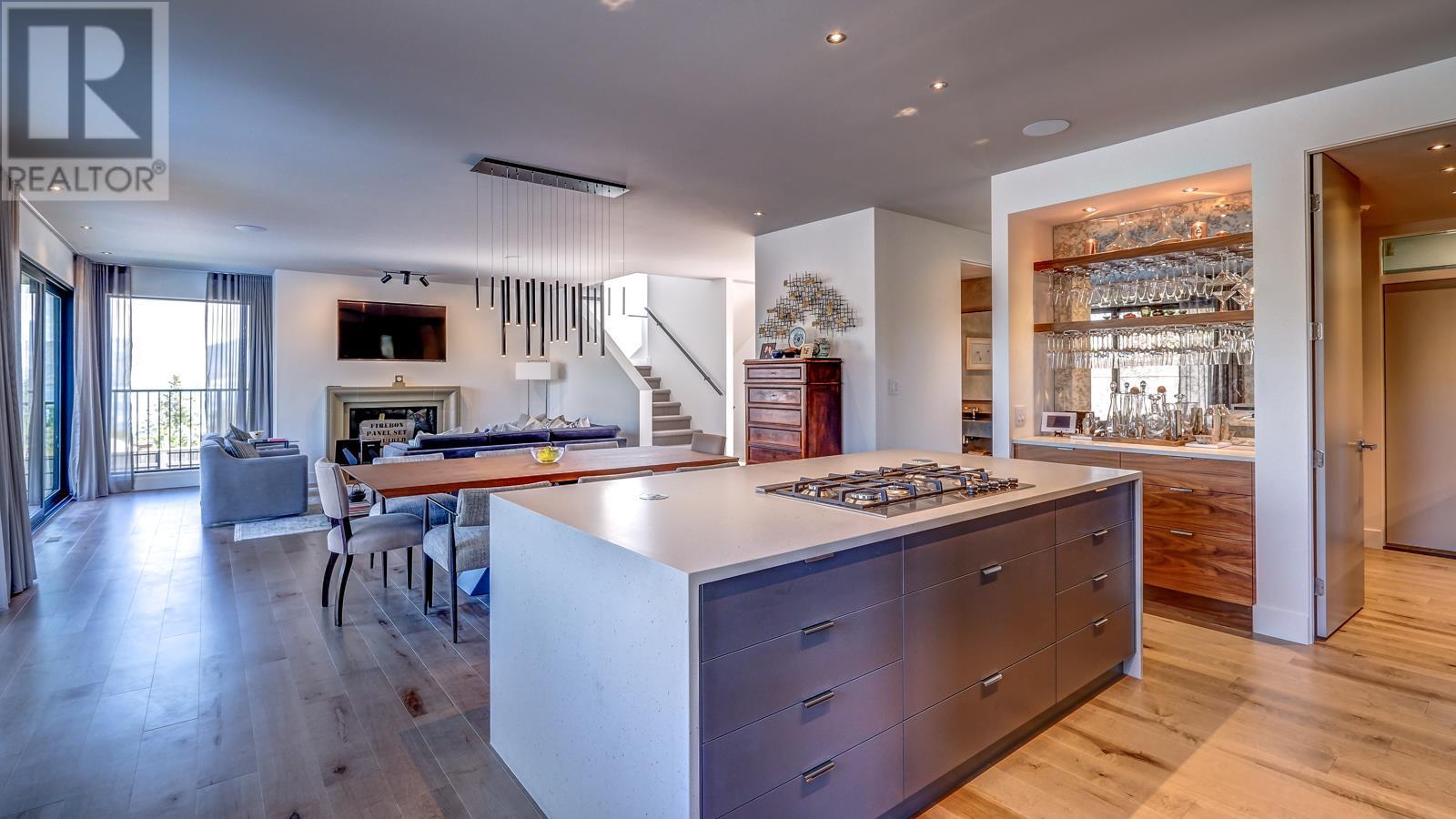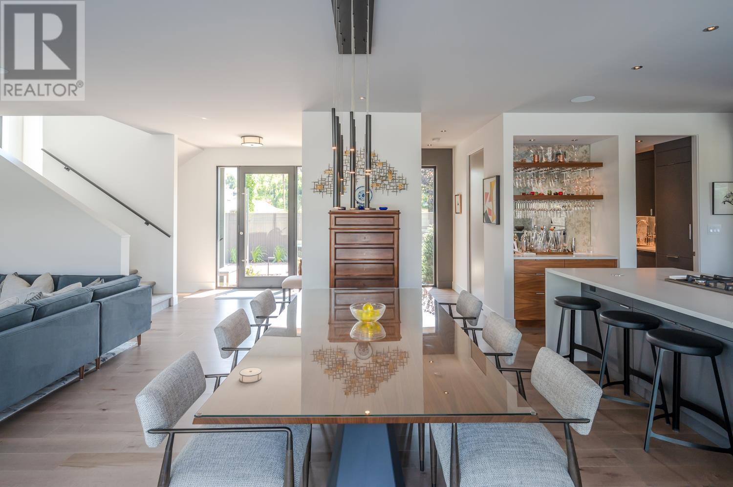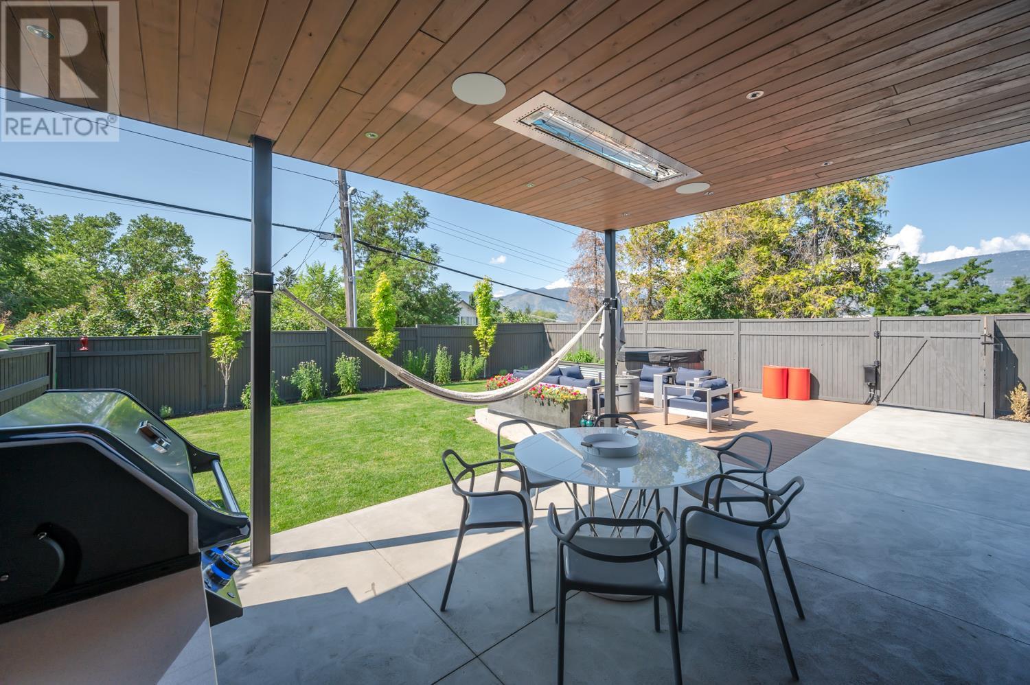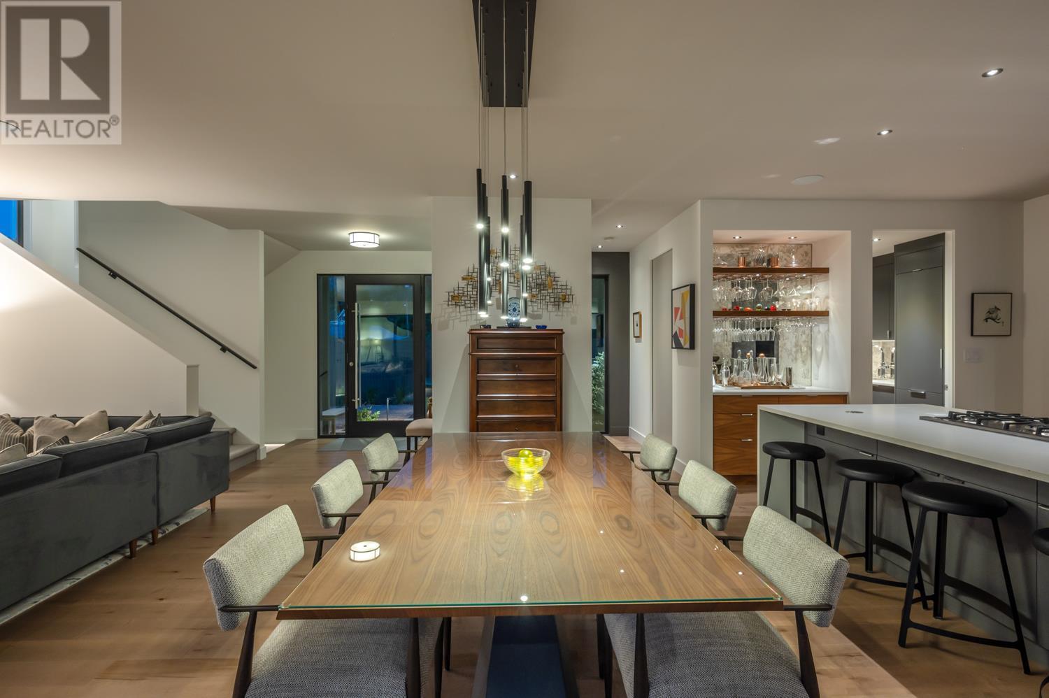 Welcome to a modern one-of-a-kind exquisitely designed residence. Located on Penticton’s Golden Mile, this elegant home is steps from the KVR and minutes from Naramata Bench wineries. A gated entrance welcomes you to a private courtyard that is also perfect for al fresco dining. The stylish and inviting open plan living and dining areas are masterfully complimented by the chef’s kitchen featuring custom cabinetry, integrated Fisher & Paykel appliances, a well-appointed dry bar, and a butler’s pantry with a secondary fridge and dishwasher. Indoor-outdoor living extends into the beautifully landscaped gardens that surround the salt water pool, jacuzzi, lounge, and covered dining and BBQ terrace. The gracious primary suite includes two walk-in closets and ensuite with a luxurious wet room. A home gym and guest suite complete the lower level with direct access to yet another garden. The highlight of this stunning home is the rooftop deck with unparalleled views of the lake and city. (id:22211)