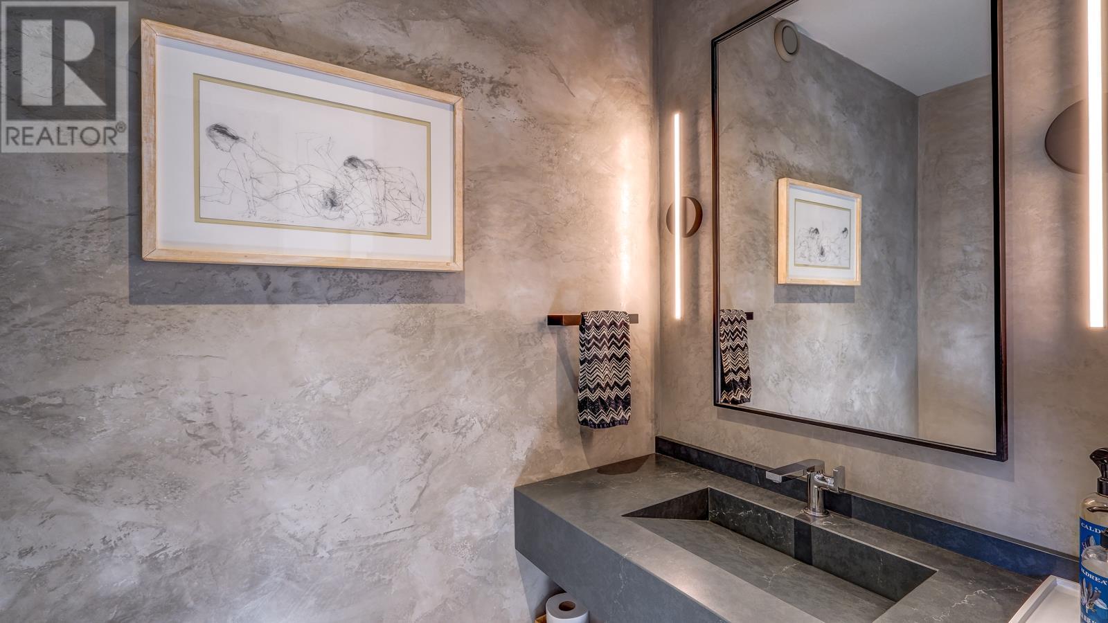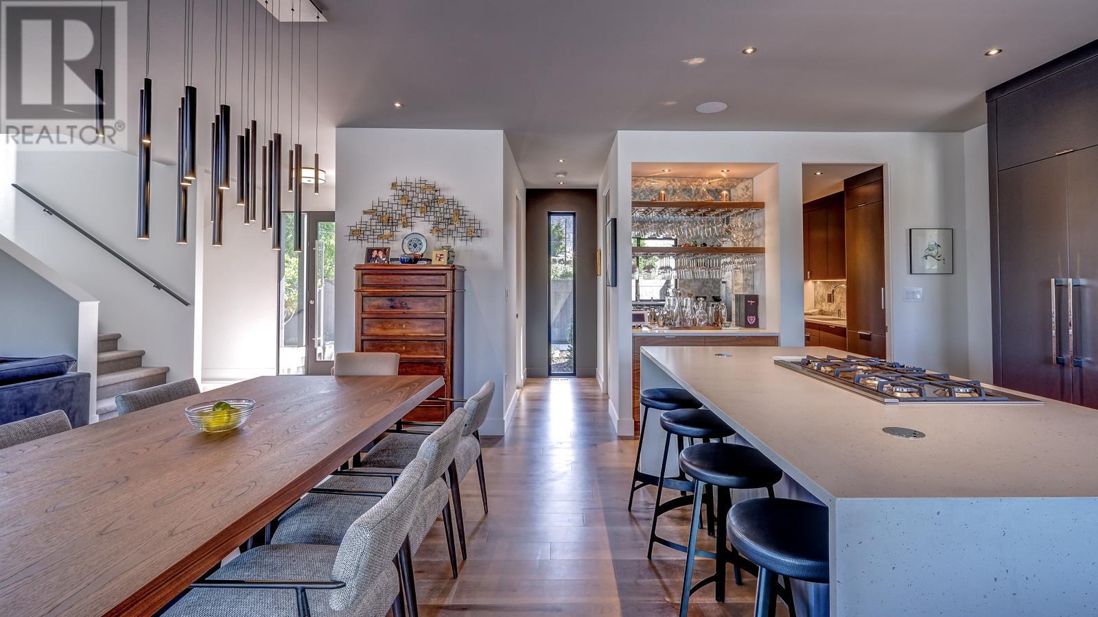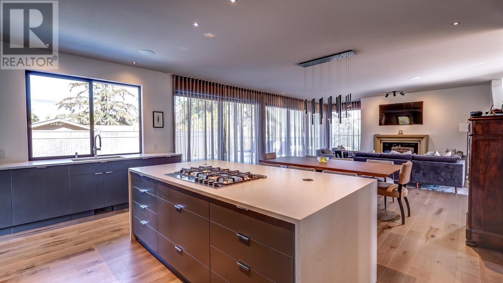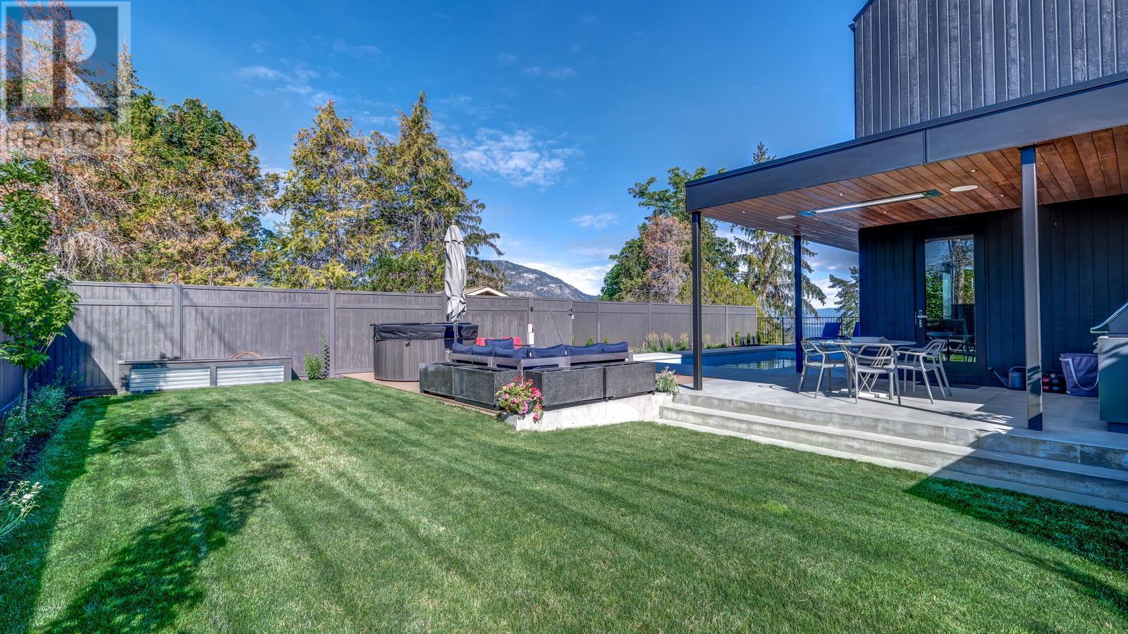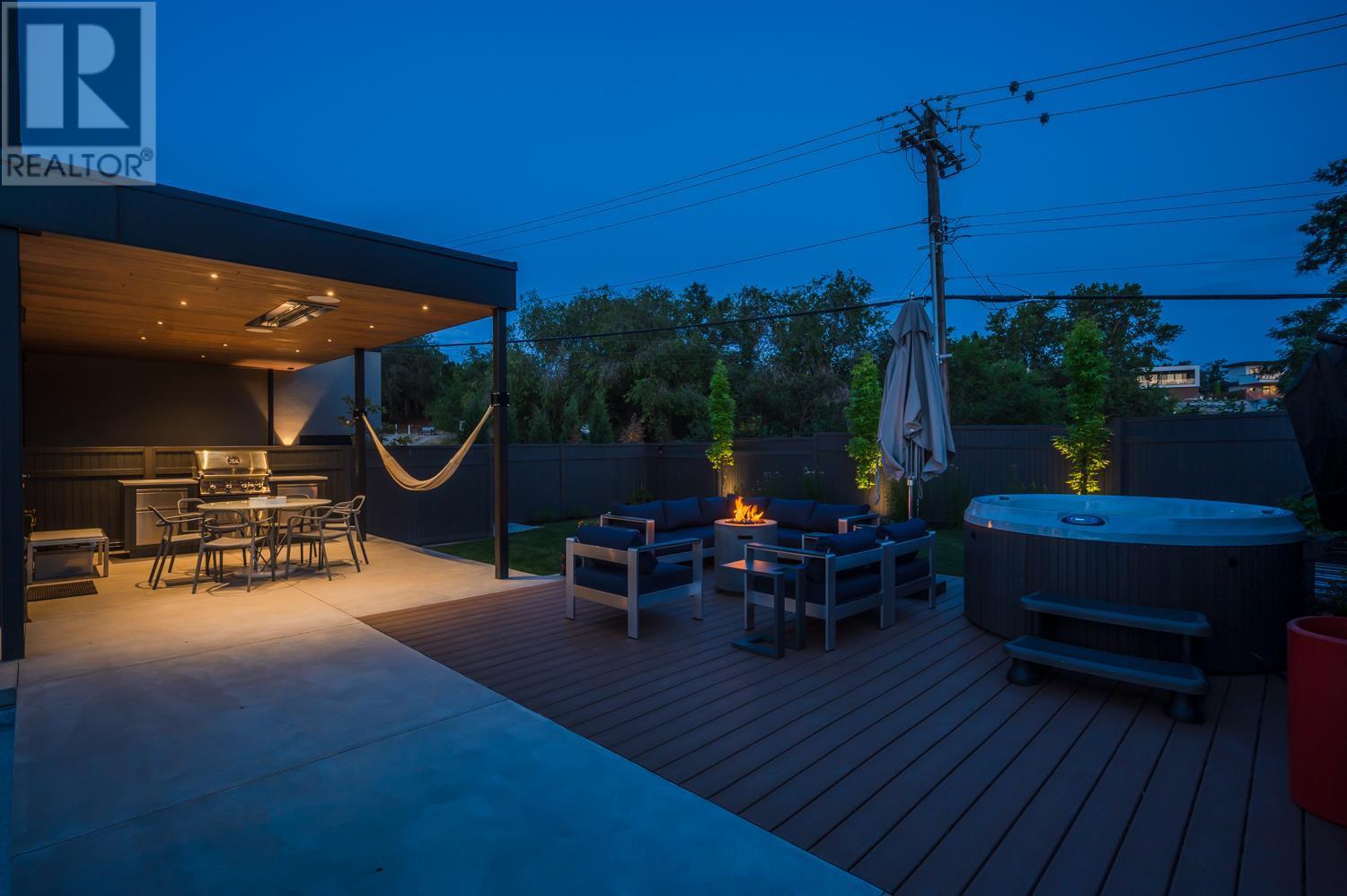 Welcome to a modern one-of-a-kind exquisitely designed residence. Located on Penticton’s Golden Mile, this elegant home is steps from the KVR and minutes from Naramata Bench wineries. A gated entrance welcomes you to a private courtyard that is also perfect for al fresco dining. The stylish and inviting open plan living and dining areas are masterfully complimented by the chef’s kitchen featuring custom cabinetry, integrated Fisher & Paykel appliances, a well-appointed dry bar, and a butler’s pantry with a secondary fridge and dishwasher. Indoor-outdoor living extends into the beautifully landscaped gardens that surround the salt water pool, jacuzzi, lounge, and covered dining and BBQ terrace. The gracious primary suite includes two walk-in closets and ensuite with a luxurious wet room. A home gym and guest suite complete the lower level with direct access to yet another garden. The highlight of this stunning home is the rooftop deck with unparalleled views of the lake and city. (id:22211)