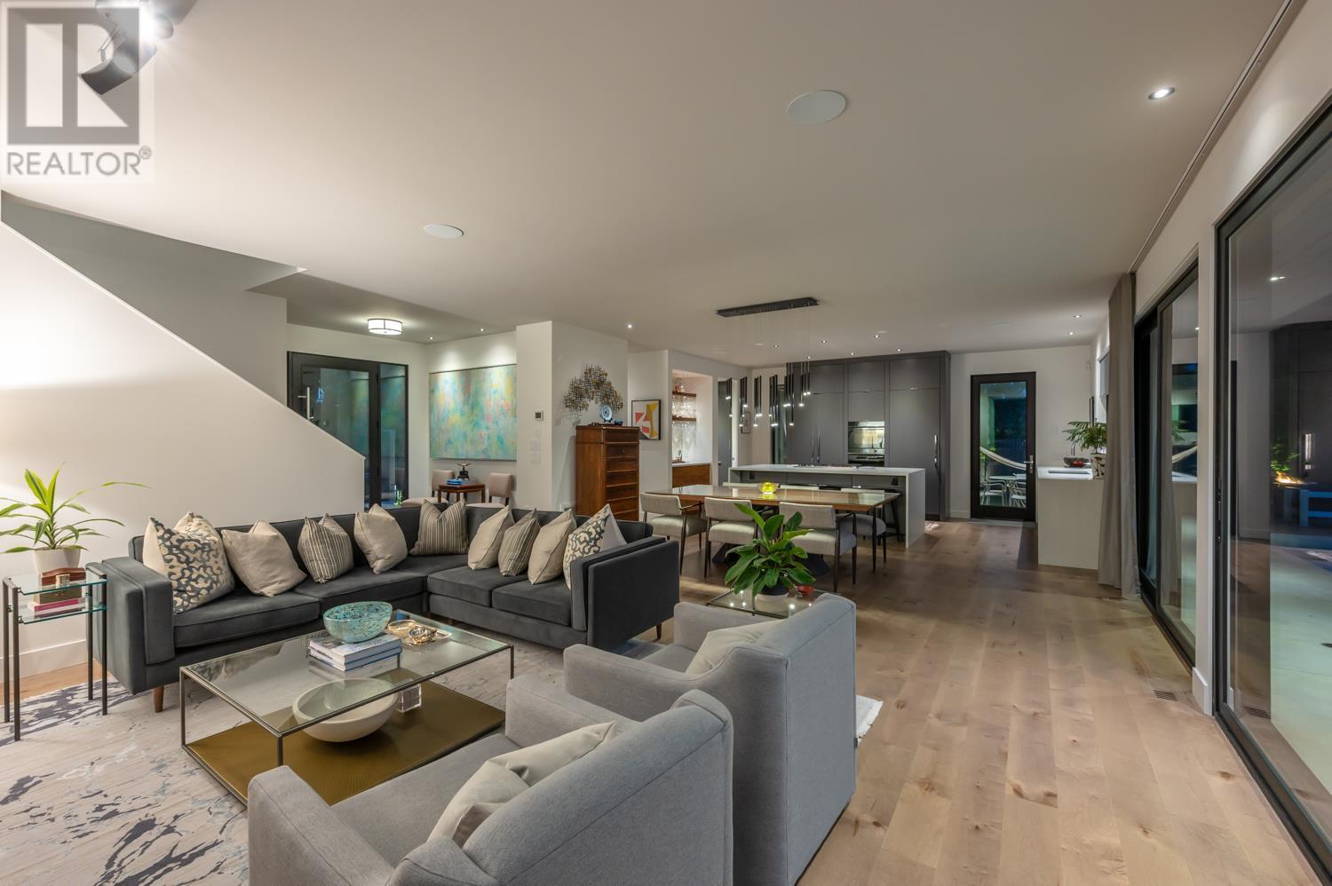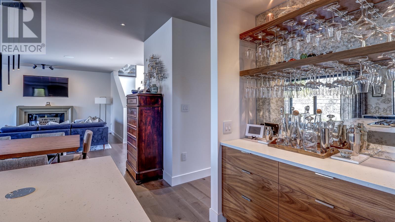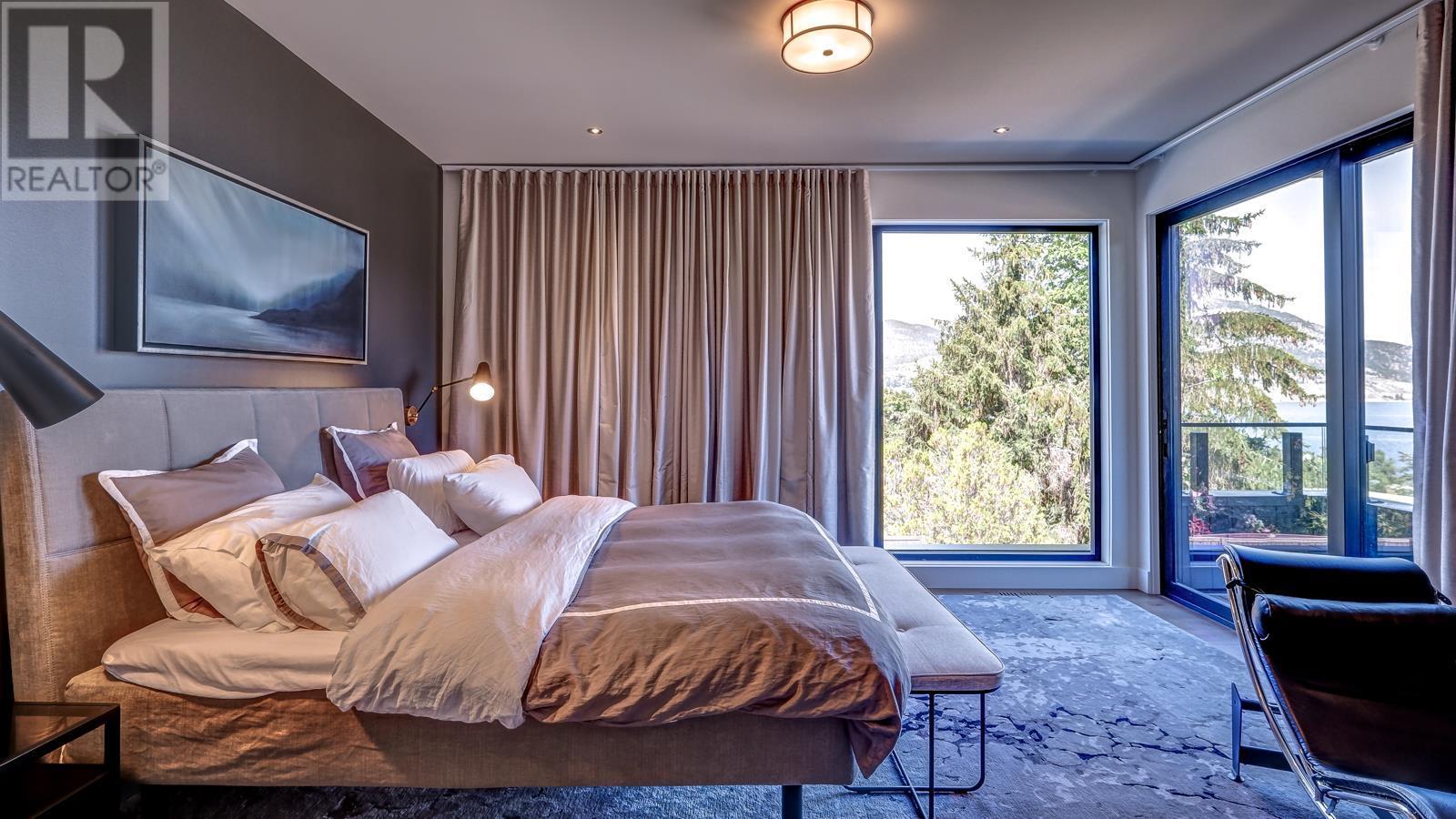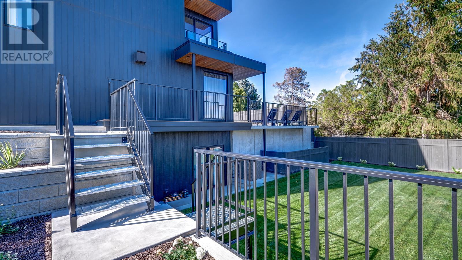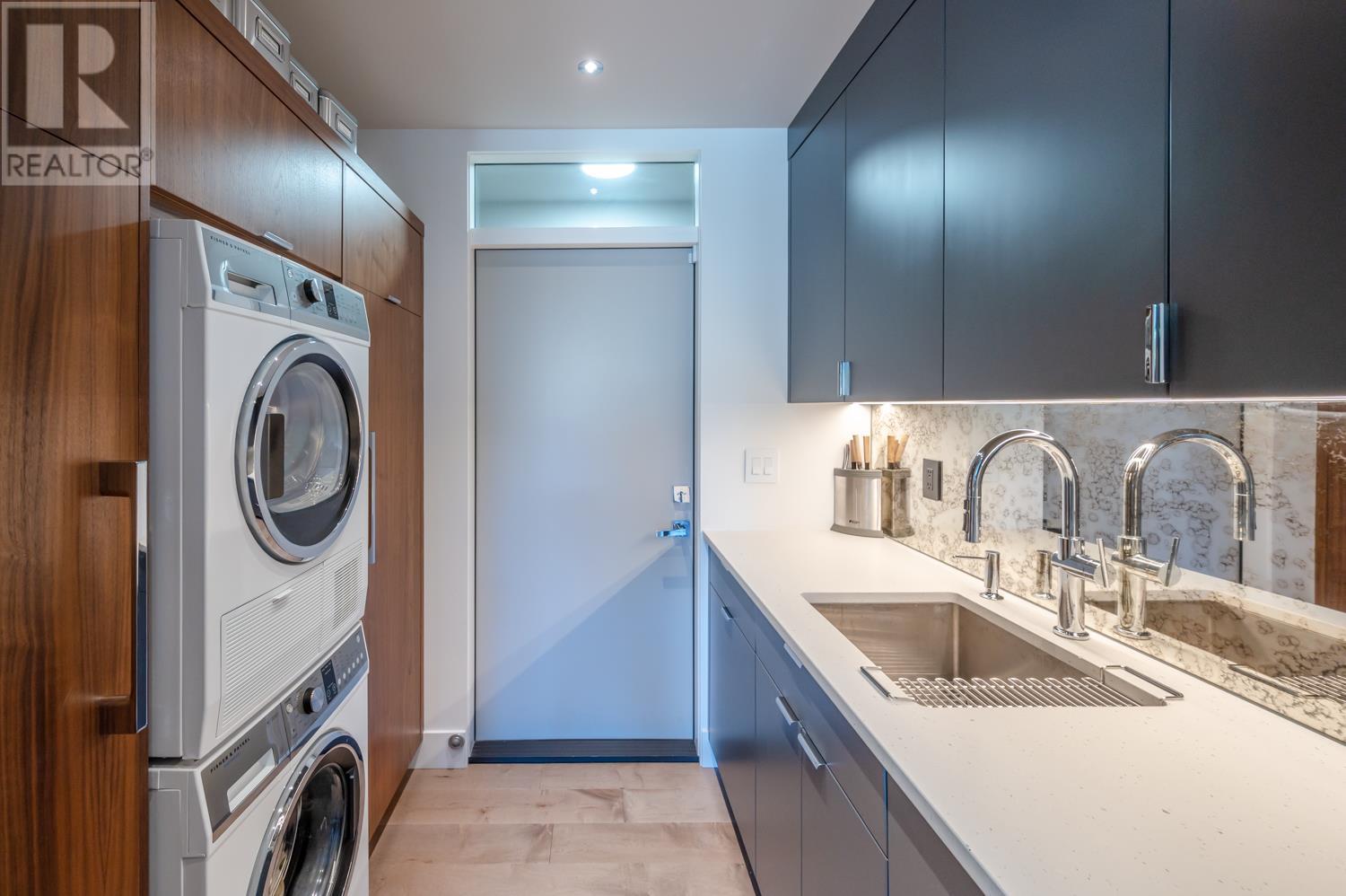 Welcome to a modern one-of-a-kind exquisitely designed residence. Located on Penticton’s Golden Mile, this elegant home is steps from the KVR and minutes from Naramata Bench wineries. A gated entrance welcomes you to a private courtyard that is also perfect for al fresco dining. The stylish and inviting open plan living and dining areas are masterfully complimented by the chef’s kitchen featuring custom cabinetry, integrated Fisher & Paykel appliances, a well-appointed dry bar, and a butler’s pantry with a secondary fridge and dishwasher. Indoor-outdoor living extends into the beautifully landscaped gardens that surround the salt water pool, jacuzzi, lounge, and covered dining and BBQ terrace. The gracious primary suite includes two walk-in closets and ensuite with a luxurious wet room. A home gym and guest suite complete the lower level with direct access to yet another garden. The highlight of this stunning home is the rooftop deck with unparalleled views of the lake and city. (id:22211)