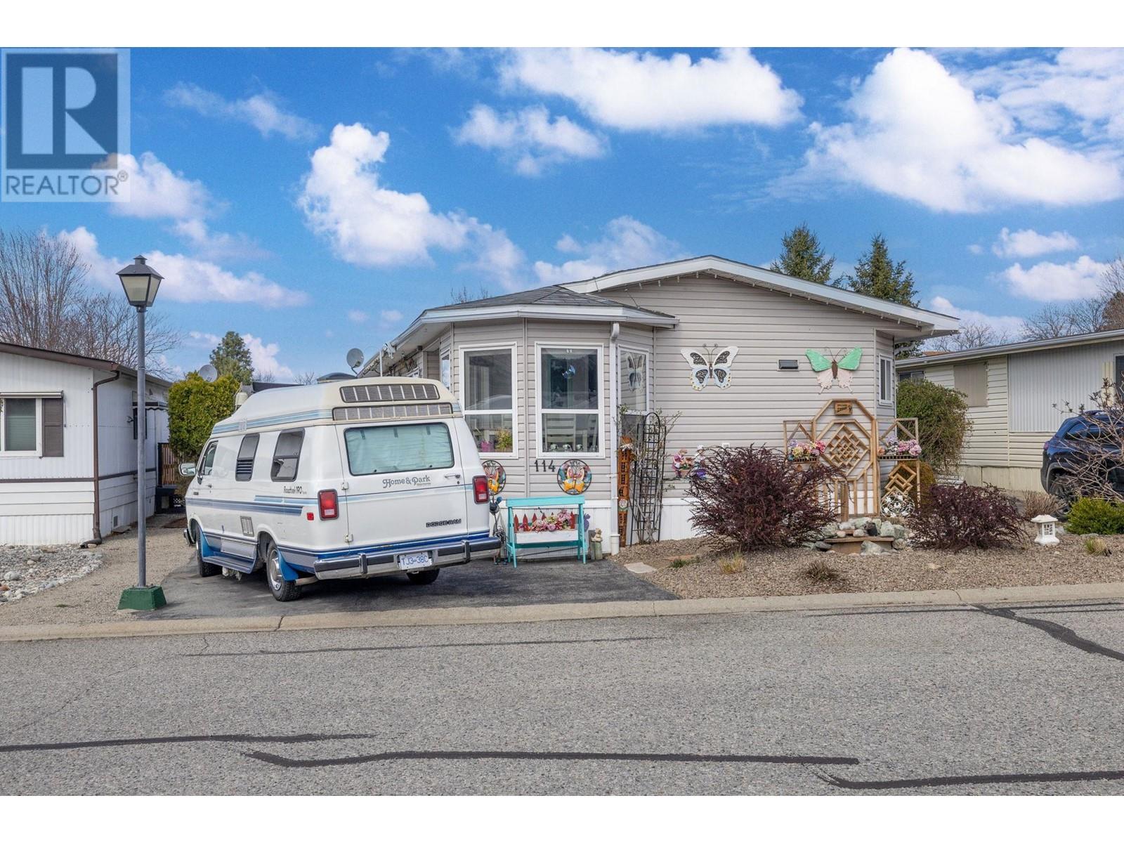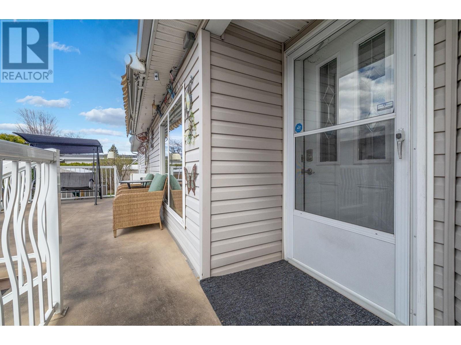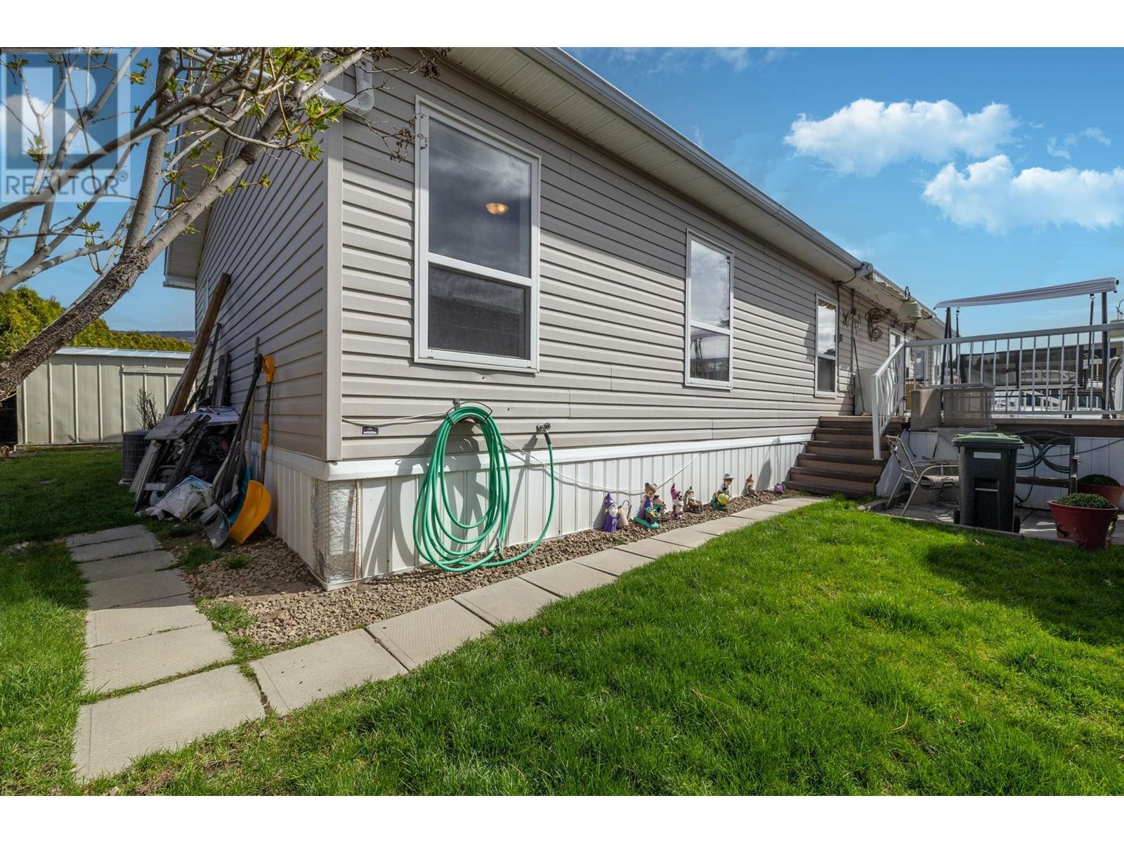 Welcome to this quaint 3 BEDROOM & 2 BATHROOM home. This home stands above the rest with one of the best views in the park spanning all the way across the Penticton canal, an extra large porch with room for gathering & summer night BBQ's, PLUS a built in electric awning for extra shade on warm Okanagan days. Inside you'll be greeted with a lovely sun-drenched breakfast nook, bright white kitchen, spacious living areas, functional laundry/mud room with separate entrance and added accessibility ramp feature. With 3 bedrooms there is no shortage on space, including the large primary bedroom and 4 piece ensuite. Accented with skylights thorughout, there's an abundance of natural light constantly flowing in. The private lush yard boasts room for gardening and features a nice sized storage shed. The Pines Park is centrally located, near bus routes & within walking distances to coffee shops, groceries and more! This is the first time on the market for this home! Awaiting to be loved by it's next amazing 55+ homeowners. (id:22211)