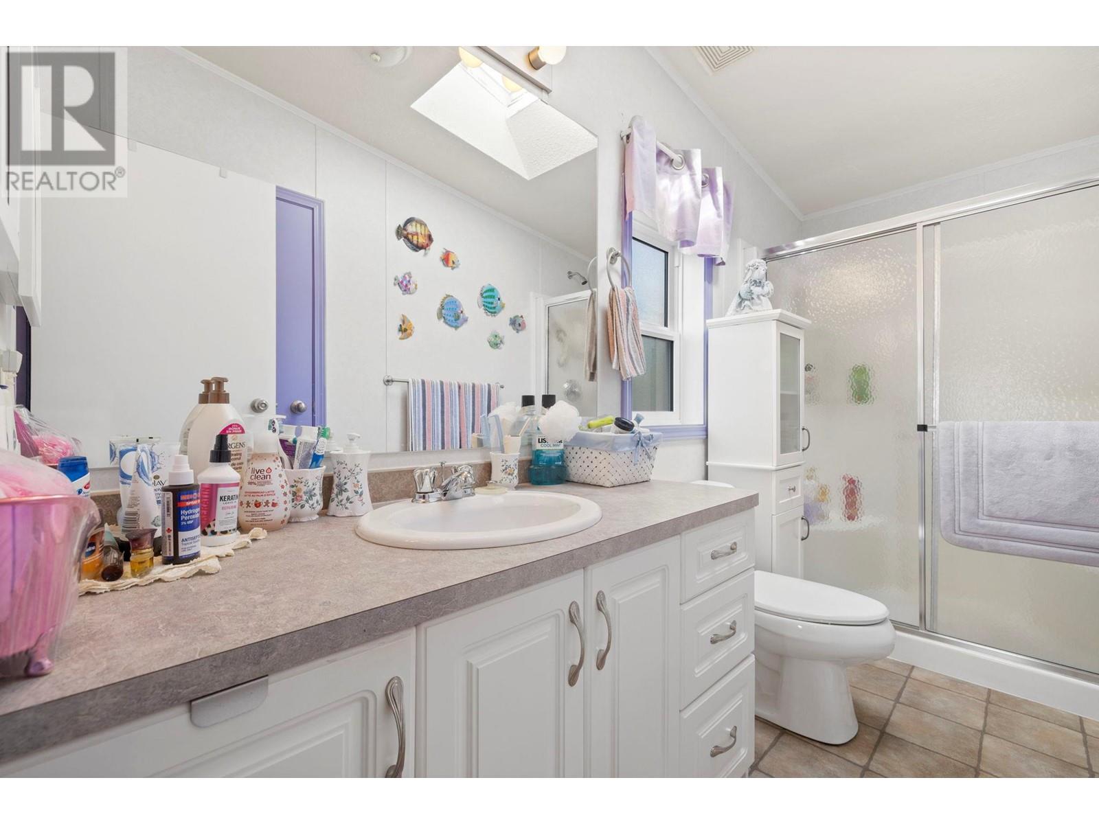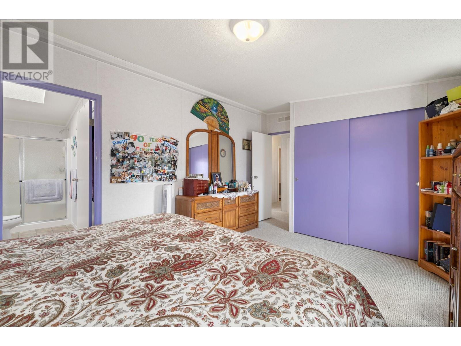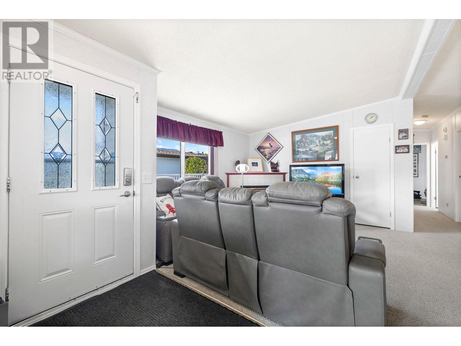 Welcome to this quaint 3 BEDROOM & 2 BATHROOM home. This home stands above the rest with one of the best views in the park spanning all the way across the Penticton canal, an extra large porch with room for gathering & summer night BBQ's, PLUS a built in electric awning for extra shade on warm Okanagan days. Inside you'll be greeted with a lovely sun-drenched breakfast nook, bright white kitchen, spacious living areas, functional laundry/mud room with separate entrance and added accessibility ramp feature. With 3 bedrooms there is no shortage on space, including the large primary bedroom and 4 piece ensuite. Accented with skylights thorughout, there's an abundance of natural light constantly flowing in. The private lush yard boasts room for gardening and features a nice sized storage shed. The Pines Park is centrally located, near bus routes & within walking distances to coffee shops, groceries and more! This is the first time on the market for this home! Awaiting to be loved by it's next amazing 55+ homeowners. (id:22211)