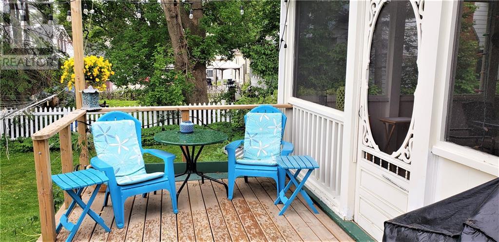 Renovated historic home in Heritage Perth. Impressive 3 story home has many possibilities for a family home or a triplex. This elegant home has a spacious living room and dining room with 9 ft ceilings and 2 grand bay windows. Renovated eat-in kitchen with an island and custom cabinetry. Hardwood floors on the main level, grand windows, new furnace 2017, and expansive screened-in sun room, with a stunning foyer and original spiral staircase. Four spacious bedrooms along with laundry/kitchen on the 2nd floor. Third floor features an unfinished generous attic with potential. This home has 3 full bathrooms. The 1 bedroom in-law suite has it's own entrance and is rented for $800/month. This property would be perfect for a family with grandparents or as a rental. One of the largest lots in Perth, almost 1/2 acre with many perennials and trees. Up to 6 chickens allowed. Within walking distance to shopping in downtown Perth, schools, restaurants, pool, and theaters. Leave the crowds behind! (id:22211)