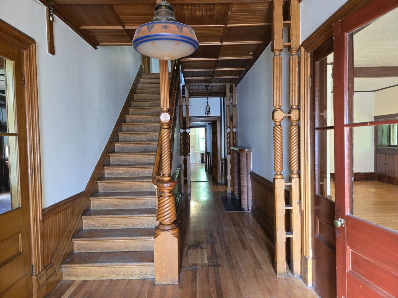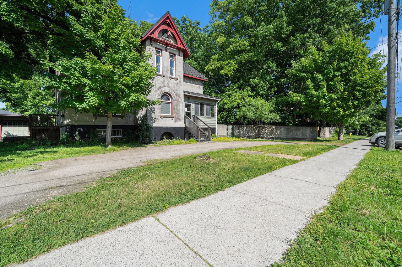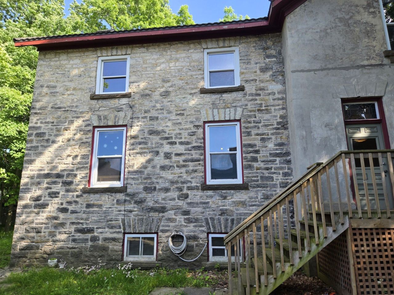 Step into a rare opportunity to own a true piece of Perth's early history. This distinguished residence, built in 1832 by Rev. William Bell, the first Presbyterian Minister in Perth stands just one block from the heart of the towns charming heritage downtown. With its solid stone construction cloaked in a traditional stucco finish, the home is set on a nicely treed lot featuring a circular drive and a detached double car garage. The property's presence is unmistakable, with original architectural details that speak to its early 19th-century roots. Inside, high ceilings, rich hardwood floors, and original millwork offer a sense of grandeur and craftsmanship seldom found today. The layout includes five bedrooms, two bathrooms, a main floor office, and two kitchens providing ample space for extended family, guest accommodations, or multi-purpose living. While the home does require updating, it offers a solid foundation and significant square footage to bring your vision to life. The spacious full basement houses a remarkable piece of history with intact original bread ovens, and the walk-up third-floor attic opens up even more possibilities be it an artists studio, additional bedrooms, or a private retreat. This is a home with character and substance, waiting for someone with a vision to restore and transform it into something truly special. Two covered porches offer places to relax and enjoy the peaceful yard, and with downtown Perth just steps away, convenience and community are at your doorstep. A rare blend of historical significance, architectural integrity, and untapped potential. This is a property where the possibilities are as vast as the spaces themselves.