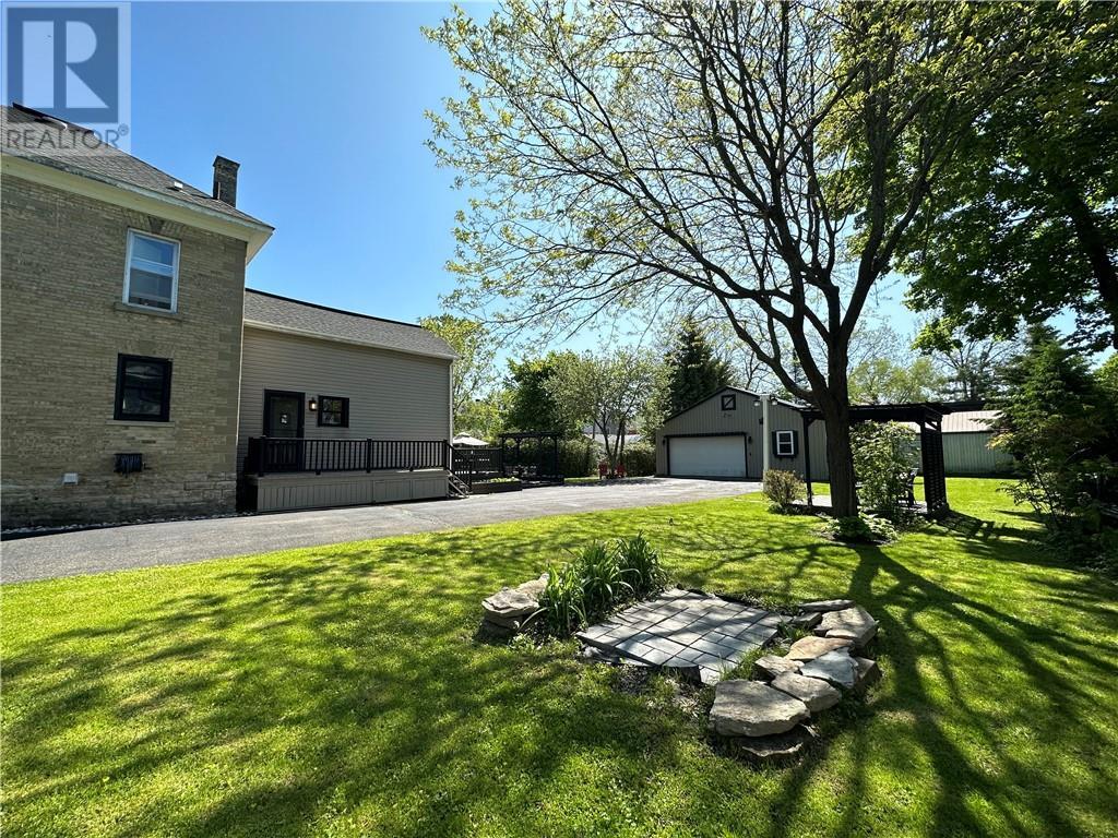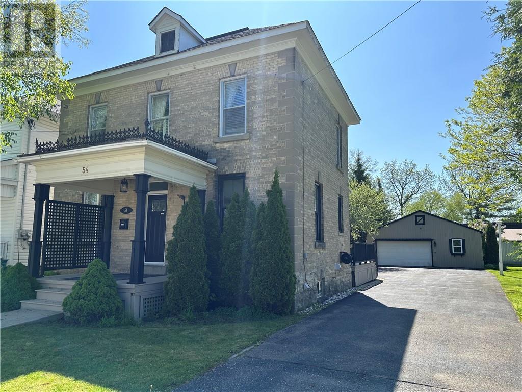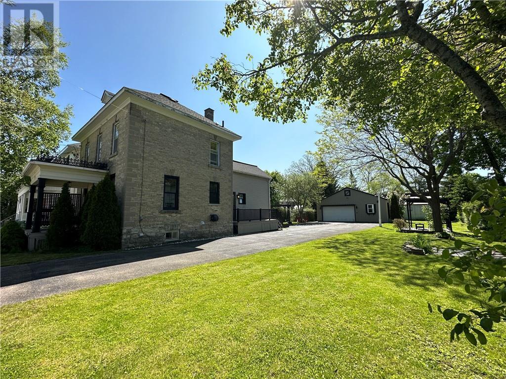 ESTATE SALE...BRING US AN OFFER! Welcome to this amazing 1871 historic home with dormer windows, hipped roof, sheltered entry, sandstone lintels & sills and 12ft ceilings throughout typical of this era. This is a one of a kind property on a large over sized lot and a massive 32x45 detached garage with a double garage door & single garage door, storage, workshop and metal roof. The paved driveway could easily park 8-10 cars. The grounds has lots of mature trees, a garden gazebo, hot tub, deck and patio area. The home has been meticulously maintained featuring main floor family room, a bright kitchen, 2 pc bathroom, formal dining room & living room and office or study area. The second level has a total of 4 bedrooms with a huge primary bedroom and a 5 pc bathroom. The lower level is not finished and is used for laundry, has lots of storage space and a 2pc bathroom. Town amenities include natural gas heating, and municipal water & sewer. Walking distance to all the town amenities! (id:22211)