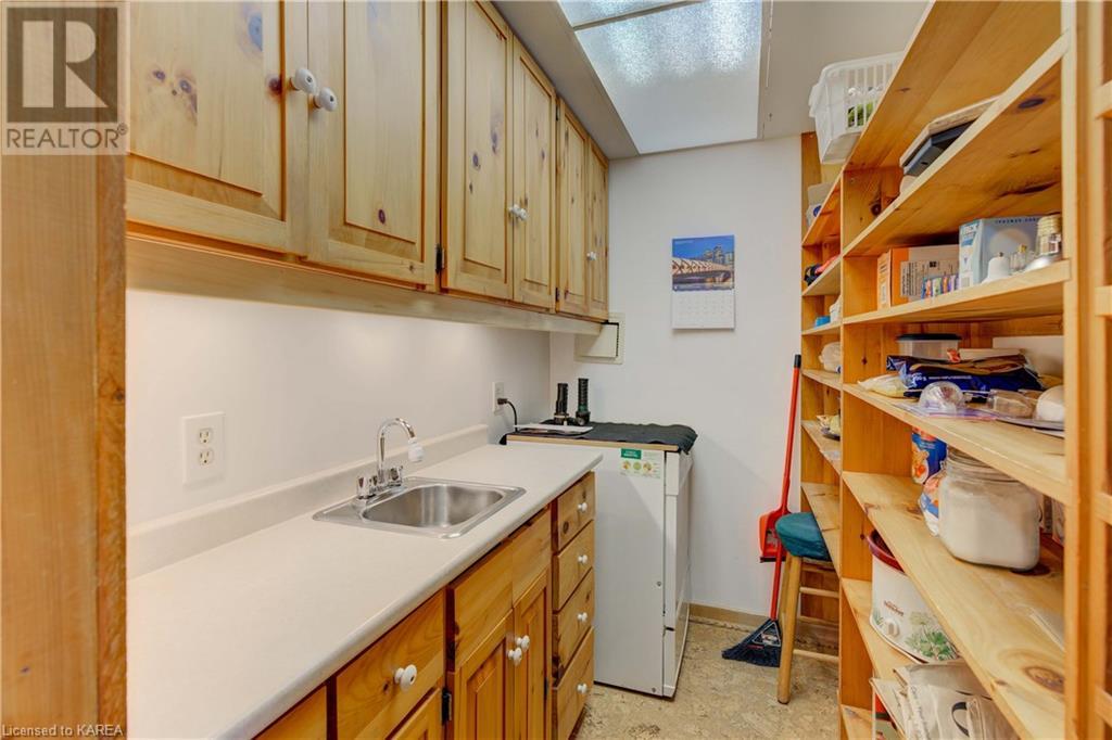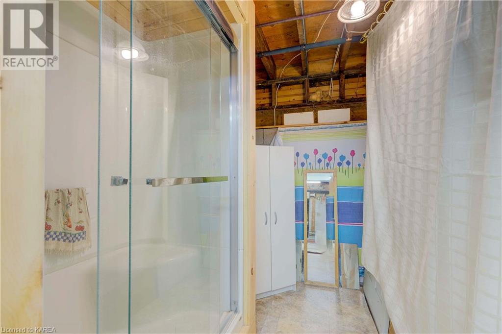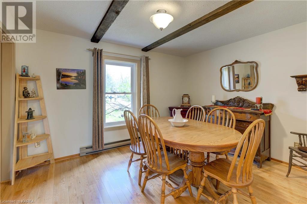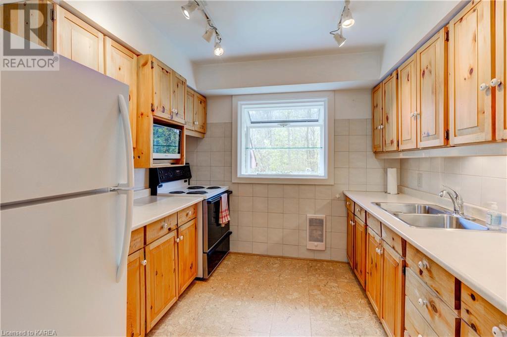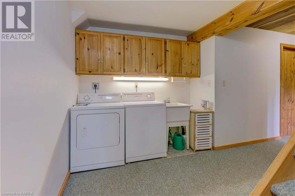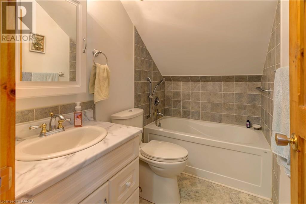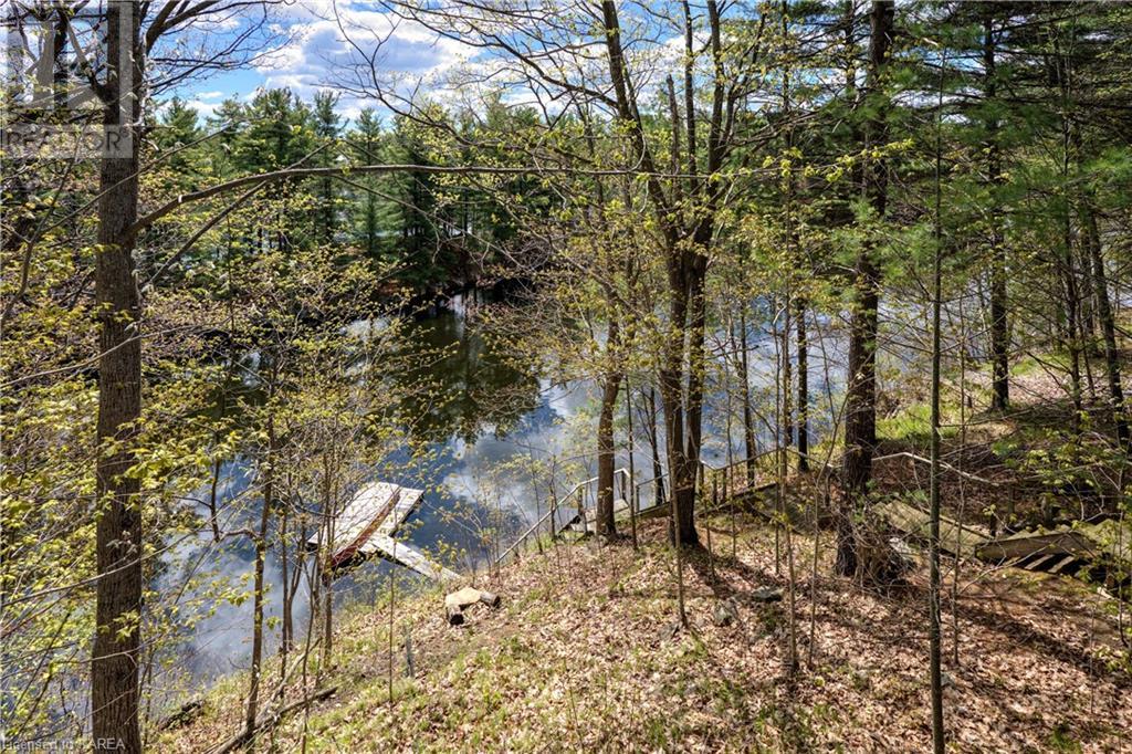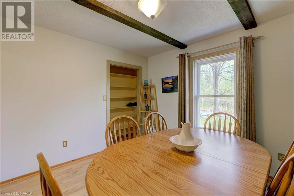 Waterfront home with acreage and privacy on Devil Lake! This property is located in Jones Bay – a quiet section of Devil Lake that is on the east side of Perth Road. Access to the main part of the lake is via the culvert that goes under Perth Road. The property includes 4.5 acres of land with a mixture of trees, rocks and a great yard with perennials. The home is a chalet-style home with 3 bedrooms on the upper floor and a bedroom in the basement. There is a main floor office that could also be used as a small bedroom. There is a main floor 2-pc bathroom, a full bathroom on the upper level as well as a shower in the basement. The main level has a family room with a propane fireplace and a patio door that leads to the deck. Each of the bedrooms on the upper level has their own private balcony to enjoy mornings or evenings outside with the sounds and sites of nature. The full, walkout basement has a recreation room with a propane wood stove, laundry facilities, a bedroom, large cold cellar plus plenty of storage space. There is a patio outside on this level and stairs that lead to the waterfront. The bay is shallow and not ideal for swimming but great for nature lovers, fishermen, etc. Located just 35 minutes north of Kingston or 10 minutes south of Westport. (id:22211)