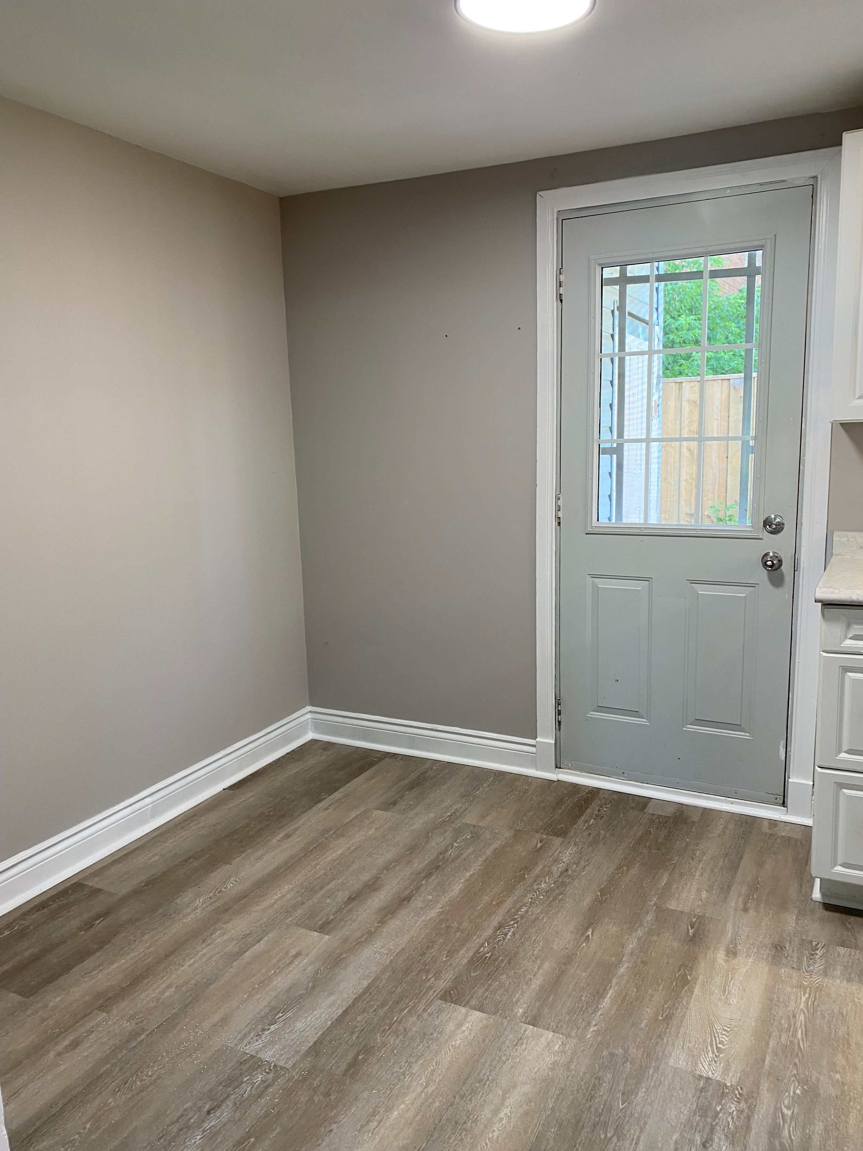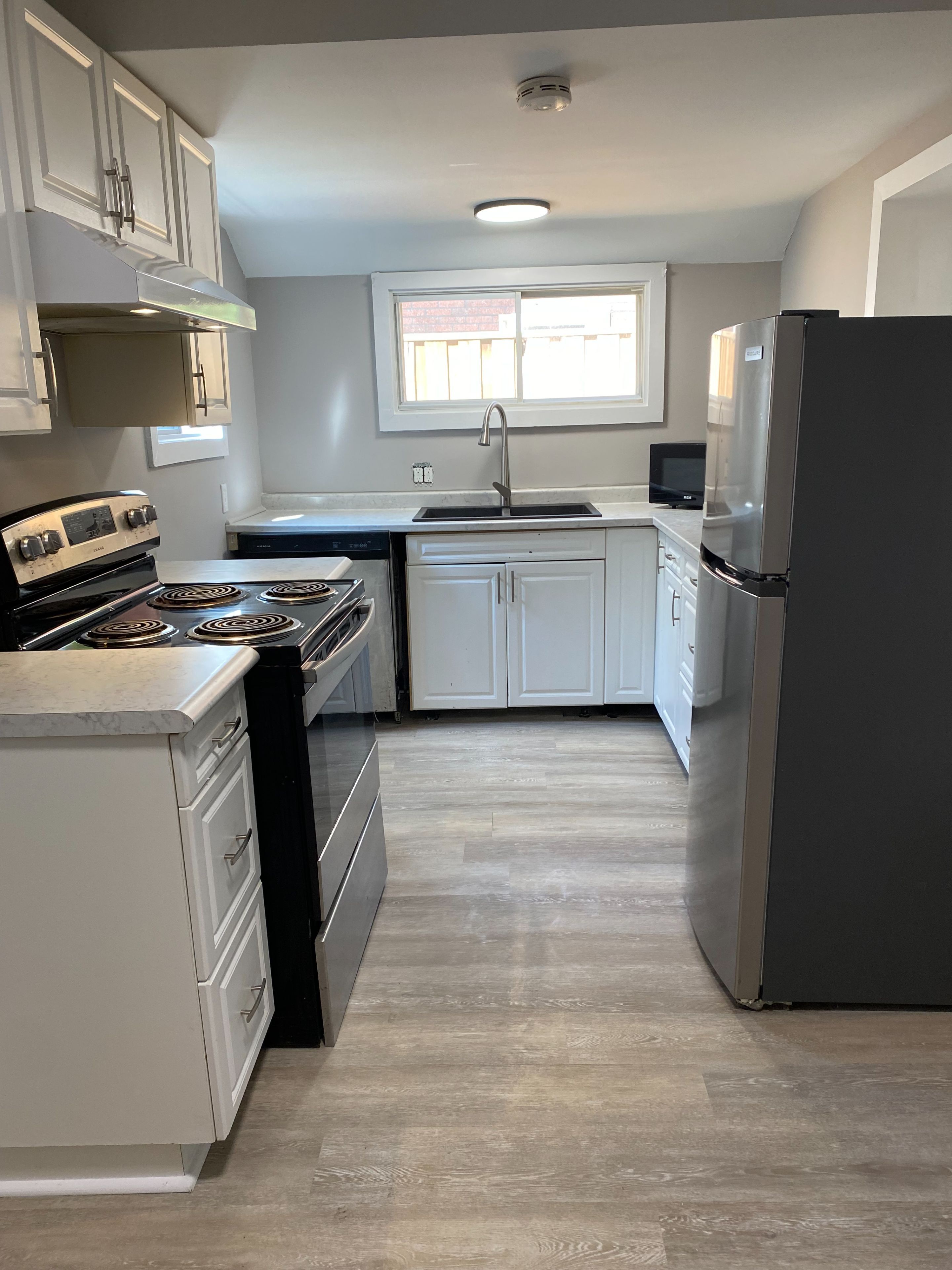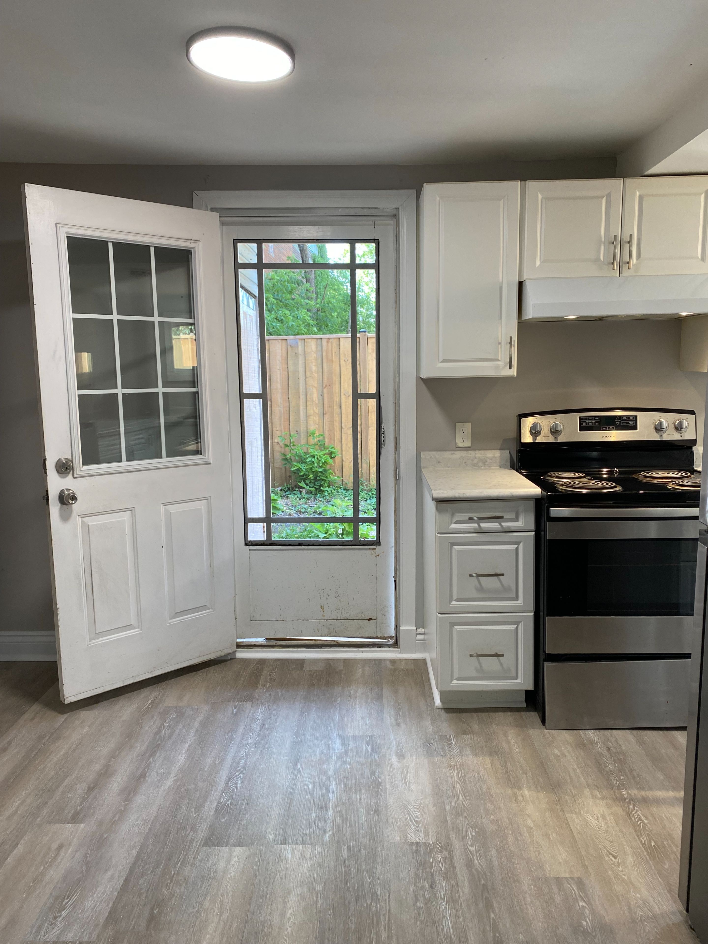 Great starter home or income property. Freshly painted and new flooring throughout. Two bedroom, with walk in closet, one 4 piece bathroom, newer kitchen with door to private fenced yard. On the bus route, close to shopping and place of worship.