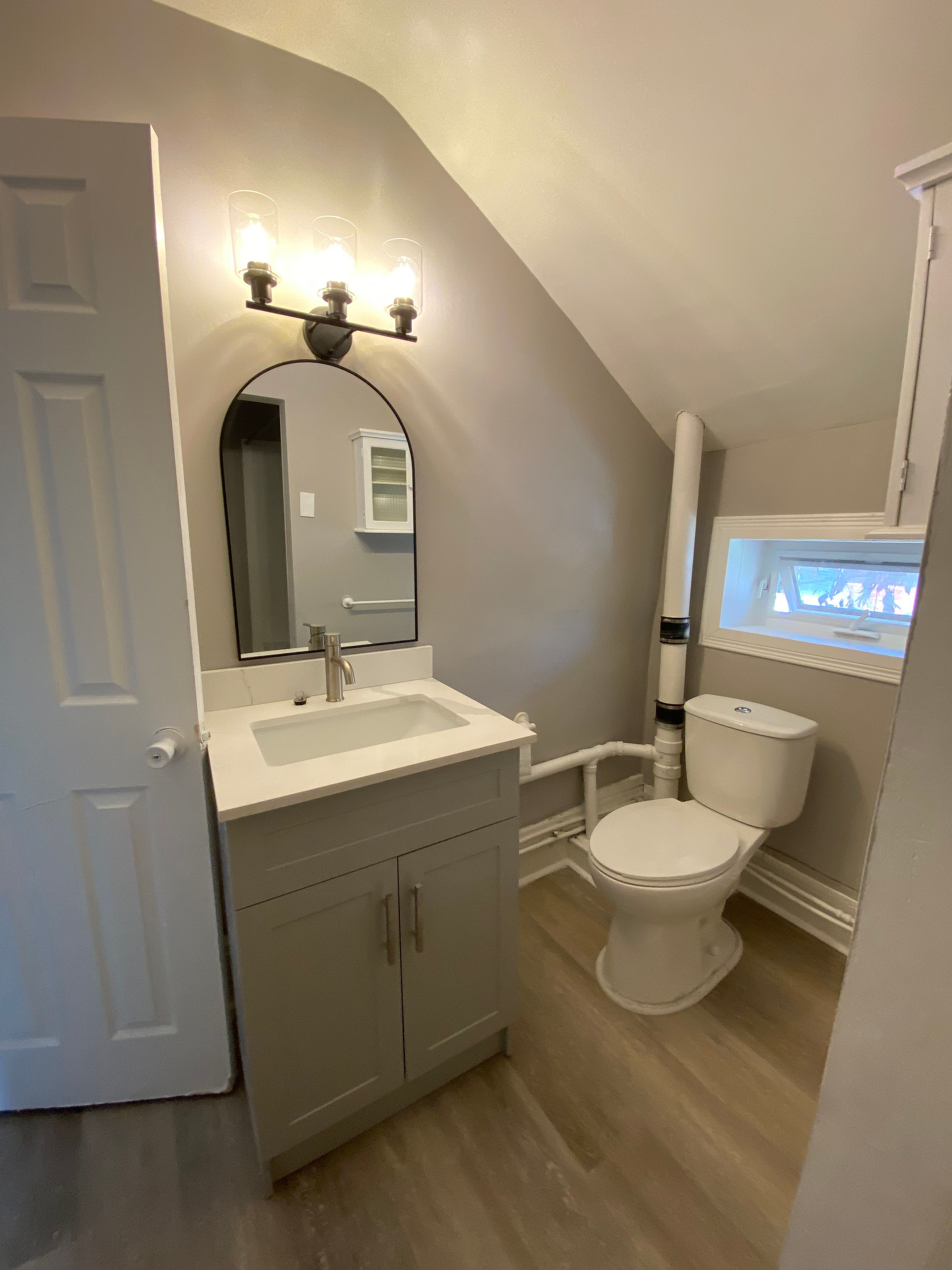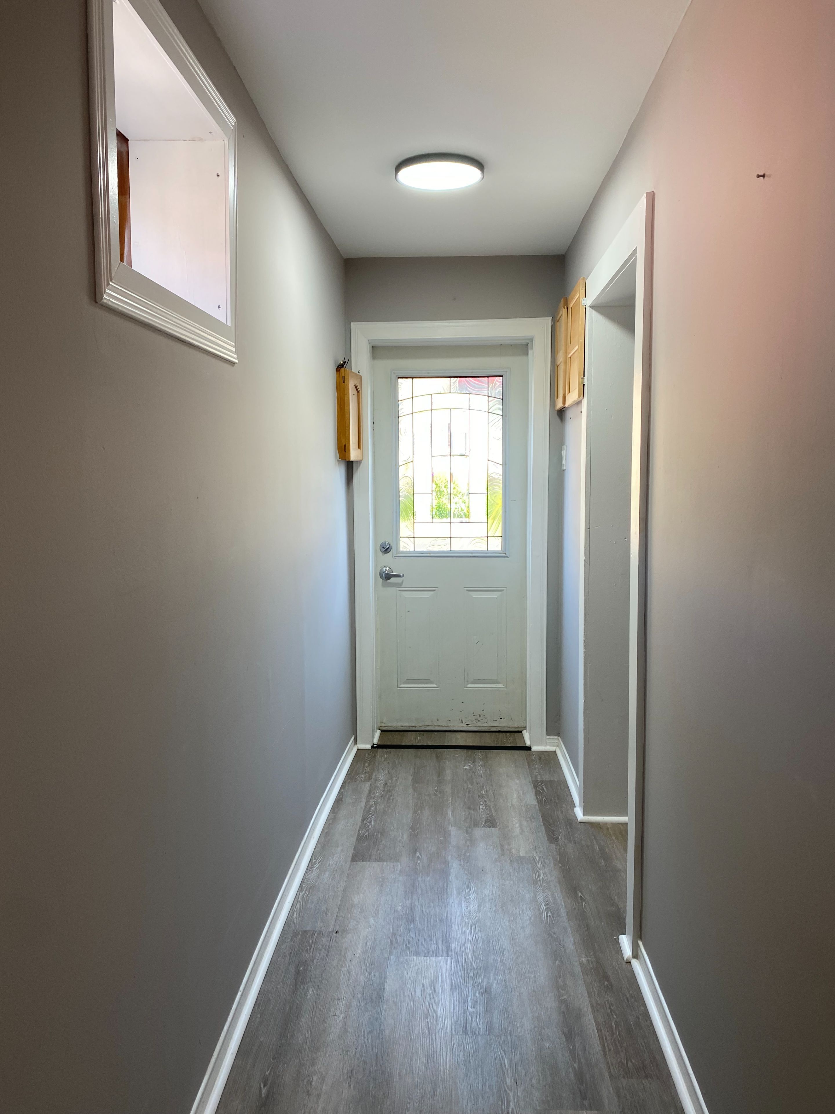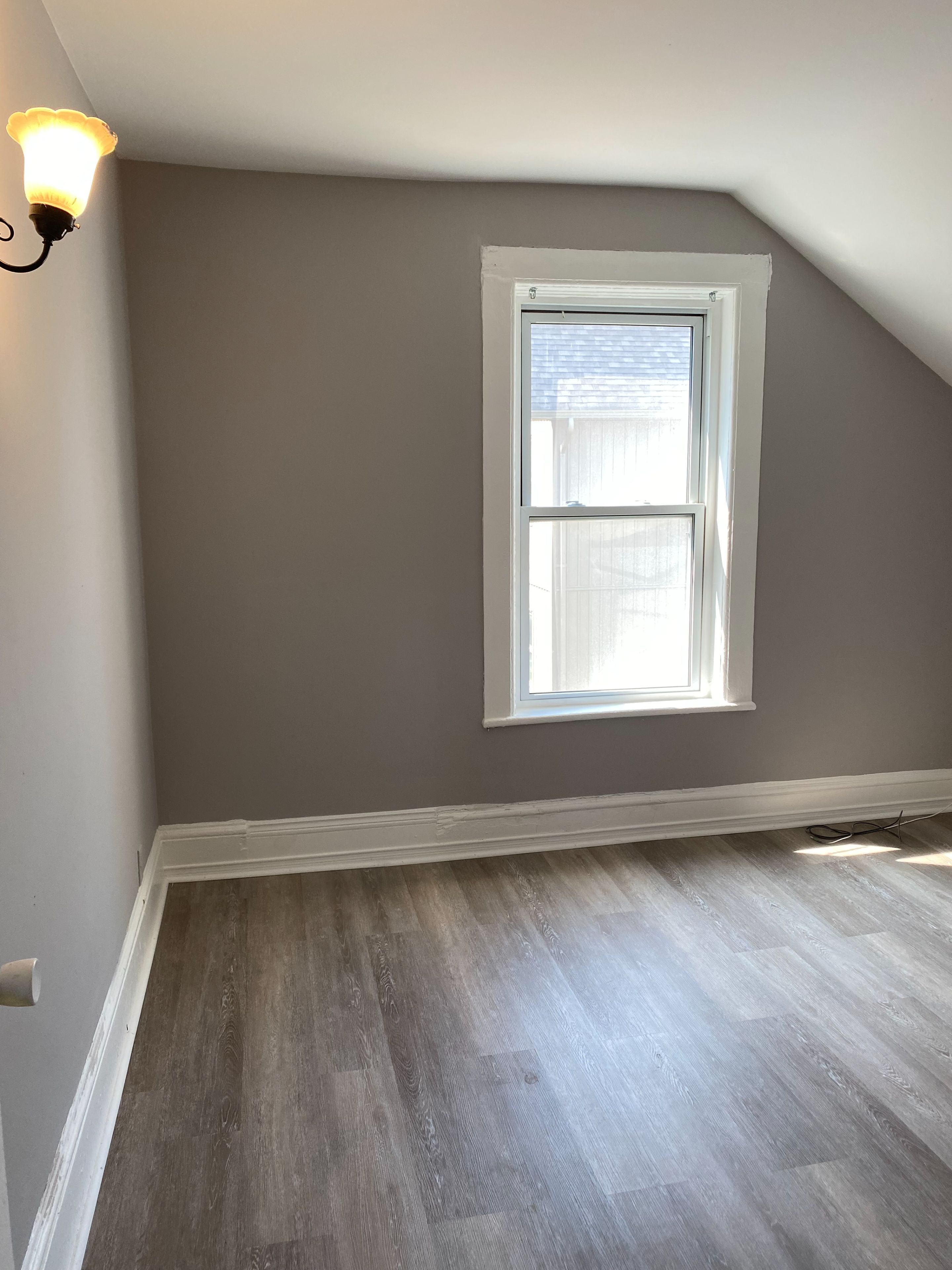 Great starter home or income property. Freshly painted and new flooring throughout. Two bedroom, with walk in closet, one 4 piece bathroom, newer kitchen with door to private fenced yard. On the bus route, close to shopping and place of worship.
