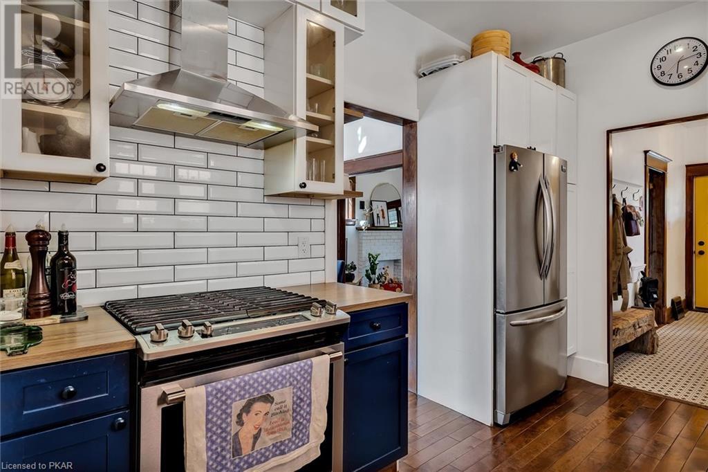 Welcome to 192 Aylmer St. N, current zoning allows for specific commercial uses (an office or clinic). This home has has the timeless charm of the 1920’s but all the modern conveniences of today. Upon entering you'll notice the high level of attention to detail and renovations throughout. The warm and inviting living room has original millwork and clean design. The living room opens through french doors to the dining room. This is the perfect place to gather with family and friends while overlooking the peaceful yard. Garden doors lead you from the dining room to the serene and well landscaped outdoor space - perfect for anyone with a green thumb and a love of gardening! There is a great renovated kitchen featuring a wood accent wall, gas stove with modern hood vent and an amazing bonus walk-in pantry along with a 2-piece bathroom. There are three bedrooms on the second floor, all with closets, and a renovated stylish 4-pc bathroom. The attic has recently been finished which makes a great play room for kids and additional storage. Situated downtown, you’re minutes away from the farmers market, restaurants, shopping, recreational facilities and nature, making it an ideal place to call home! Some of the many upgrades in this home are - New Fersina windows and doors-2017, New wiring and plumbing-2016. Kitchen and Bathrooms 2017, Flooring 2017, AC 2018, New Gutters 2018, Basement rim joists and attic were spray foam insulated 2022. Culligan Water system is owned. (id:22211)