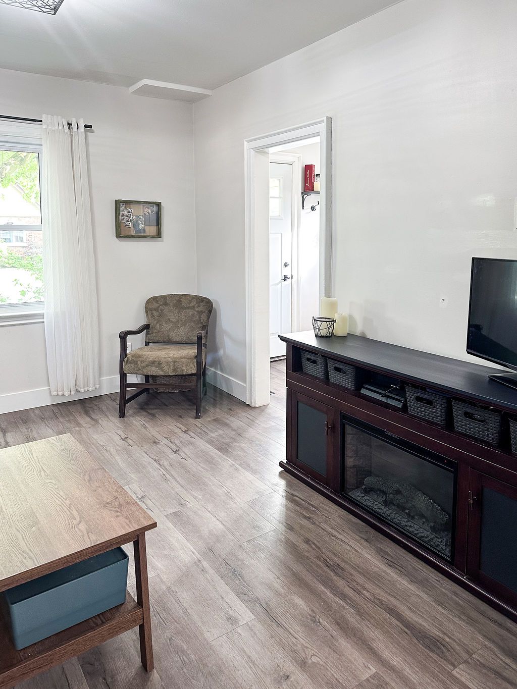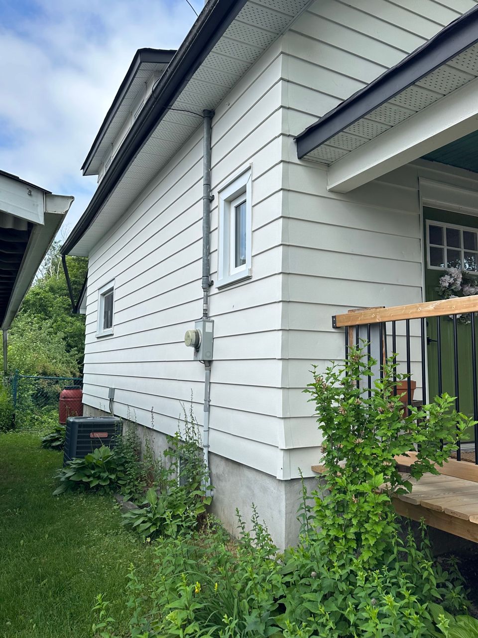Welcome to the perfect starter home. This home has been recently renovated giving new owner nothing to do but enjoy. New kitchen with custom extras, Scratch resistant waterproof flooring thru out home. New bathroom and plumbing , new roof and rock wool insulation between upper and main floor. giving a quiet sleeping area. The current owners have taken great care to replace everything behind the walls before replacing drywall. All the original 7 inch trim has been restored giving the home lots of charm. The treed lined backyard gives you privacy and shade with only a neighbour on one side and a church on the other and a right of way across the back of the property you can sit on the patio and enjoy the outdoors while still being close to all amenities.