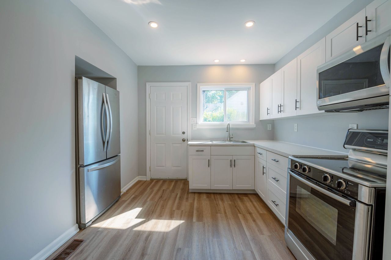 Prime north end Peterborough location. 2 bedrooms on the main level and 1 bedroom or family room on the second floor. Main floor laundry space. Recently renovated with upgraded wiring and plumbing, new kitchen cabinets, many pot lights and all new bathroom fixtures. Very clean and new, shows extremely well. 55' x 100' rectangular lot. Paved driveway with a single garage. Property is vacant and easy to show. Pre-list home inspection and survey in documents. All appliances included.