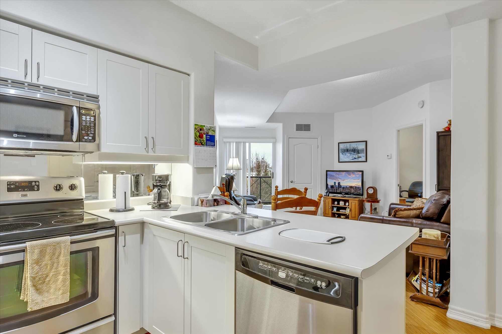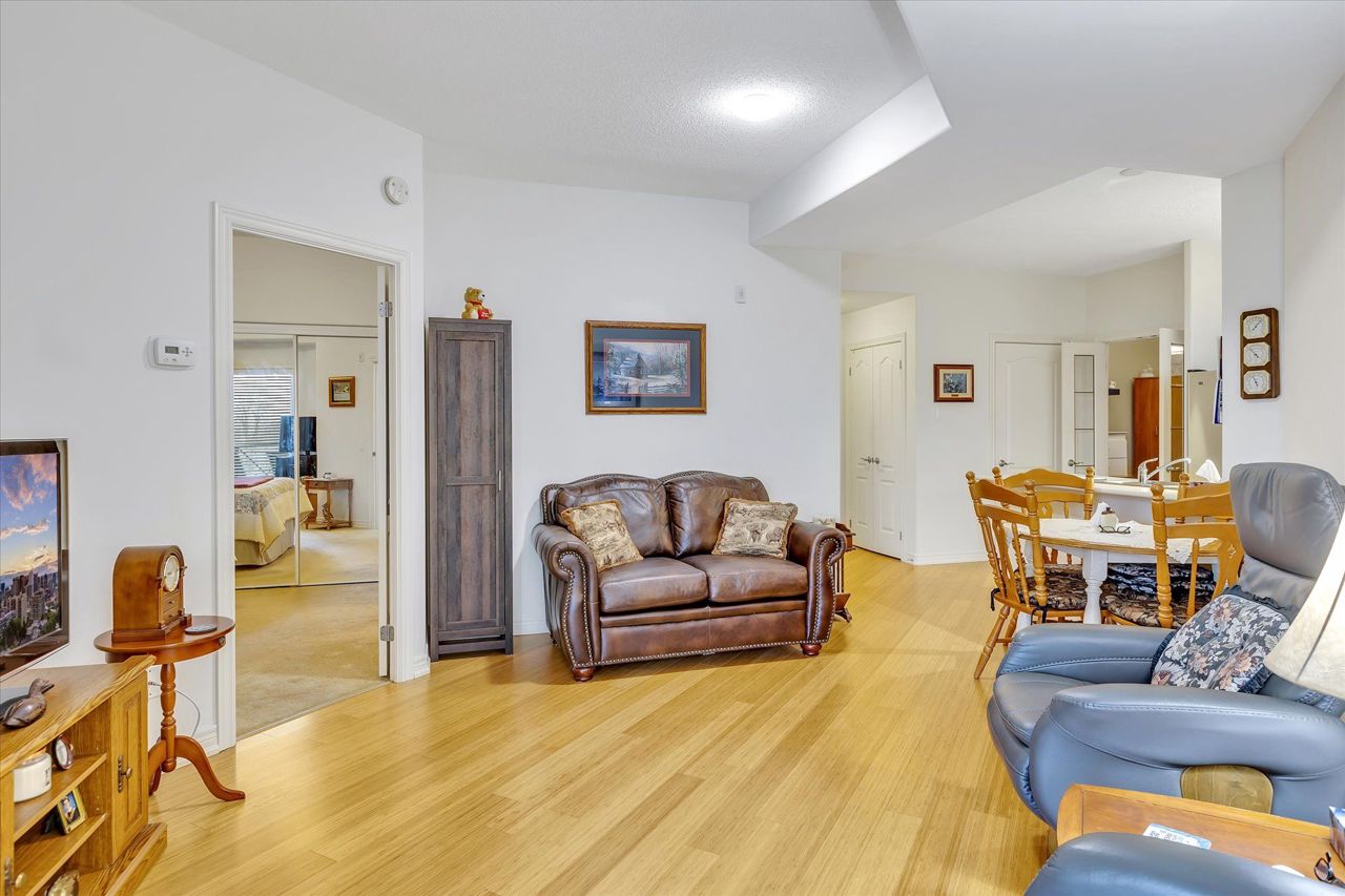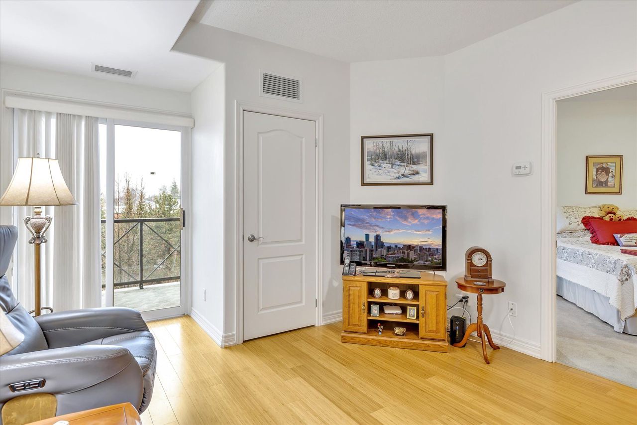 Welcome to Kawartha Glen Condominium! This penthouse unit offers an open concept living room / kitchen / dining area. Spacious master bedroom with a full ensuite bathroom. An additional bedroom/den, currently used as an office, two piece bathroom & large balcony facing south/west provides lots of light, energy efficient & offering low heating bills, well designed & maintained building. This was used as the model unit for the building and shows immaculate and pride of ownership. Hardwood floors in the living / kitchen and well designed space. All the appliances including laundry are all included. Parking and storage locker also included. You must see to appreciate! Located close to all amenities, walking distance to shopping, schools, hwy and golf course. Games room, common BBQ are and well manicured grounds.