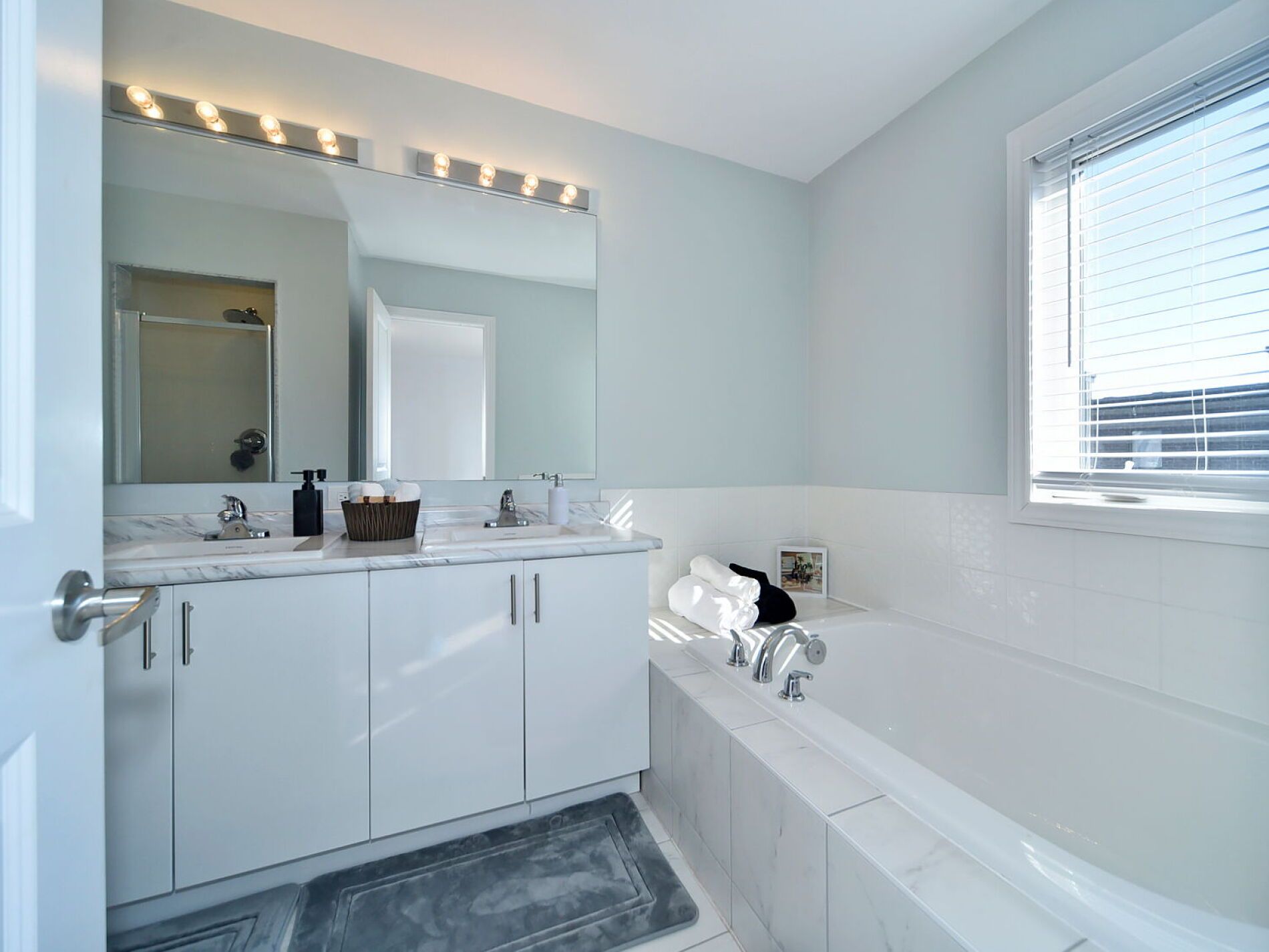 Location! Location! Location! Steps Away From Pickering's Beautiful Frenchman's Bay Waterfront Park & Marina. This Tastefully Upgraded, Modern Townhouse In Sought-After Bay Ridges Community Boasts Appr 2000 Sqft. Features Open Concept Layout, Living & Dining With Hardwood Floors And A Separate Family Room With Walk-Out To The Backyard. Open Concept Chef's Kitchen With Quartz Countertops, Built-In Stainless Steel Appliances, Rangehood Microwave, and Backsplash. High Ceilings, Potlights, Upstairs Features Spacious Master Bedroom With Large Walk-In Closet & Upgraded 5 Piece Ensuite. The Second Bedroom Offers A Closet And A Balcony, While The Third Bedroom Boasts A Huge Window And Closet. Close to Amenities, Lakefront Park, Nature Trails, Shopping Malls, Plazas, and Highway 401. Step Outside To A Fully Fenced, Interlocked Backyard With A Stone Firepit, Perfect For Relaxation.Upgrades Include New Interlocked backyard, Smart Pot Lights, Kitchen Backsplash, Paint And Many More. Incl: S/S Fridge, S/S Stove, B/I Dishwasher, B/I Microwave, Washer, Dryer.