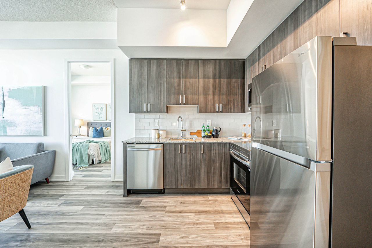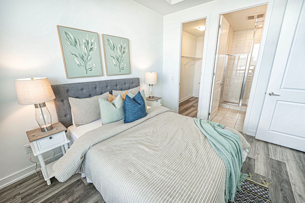 体验现代奢华,位于这间明亮宽敞的2+书房、2卫公寓中,拥有高达10英尺的挑高天花板、高大门、升级过的复合木地板和高端饰面。享受时尚的现代厨房,配备石英台面、不锈钢电器和别致的 backsplash。开放式布局从厨房无缝流向餐厅和起居区,通往私人阳台,享有令人惊叹的湖景和市景。主卧室配有3件式套间浴室和步入式衣柜,多功能书房具有出色的在家工作潜力。包含公寓内洗衣机、起居区额外照明的预留管路,以及1个停车位。Rogers网络是物业管理费的一部分!卓越的建筑配套设施:户外游泳池、健身房、24小时礼宾服务及更多。地理位置无与伦比,步行即可到达GO车站,几分钟车程即可到达401高速公路、学校、商店、皮克灵镇中心、Frenchmans Bay、滨水步道及更多!**额外**不锈钢冰箱、不锈钢炉灶、不锈钢嵌入式洗碗机、不锈钢油烟机微波炉、洗衣机、烘干机和中央空调。