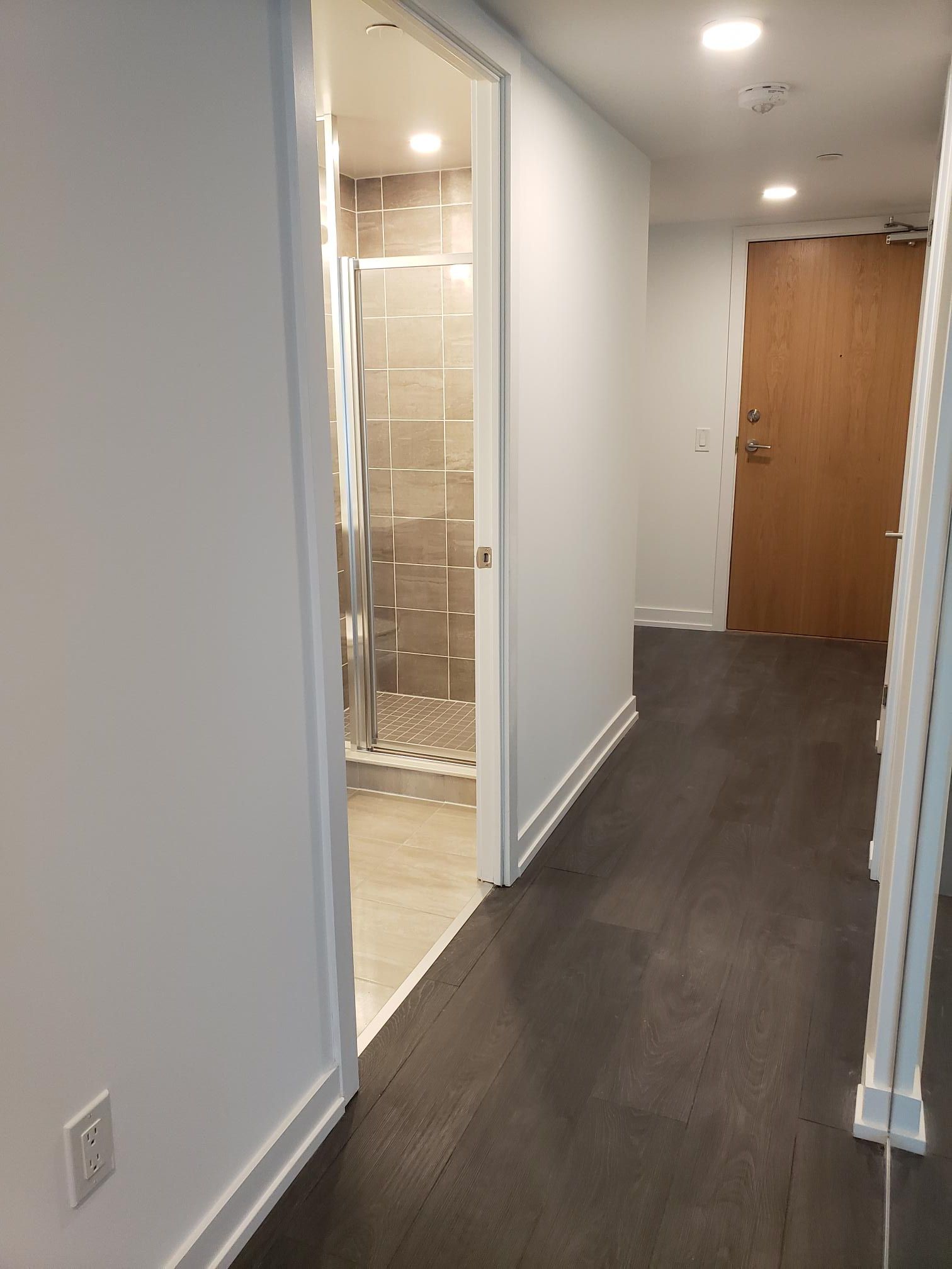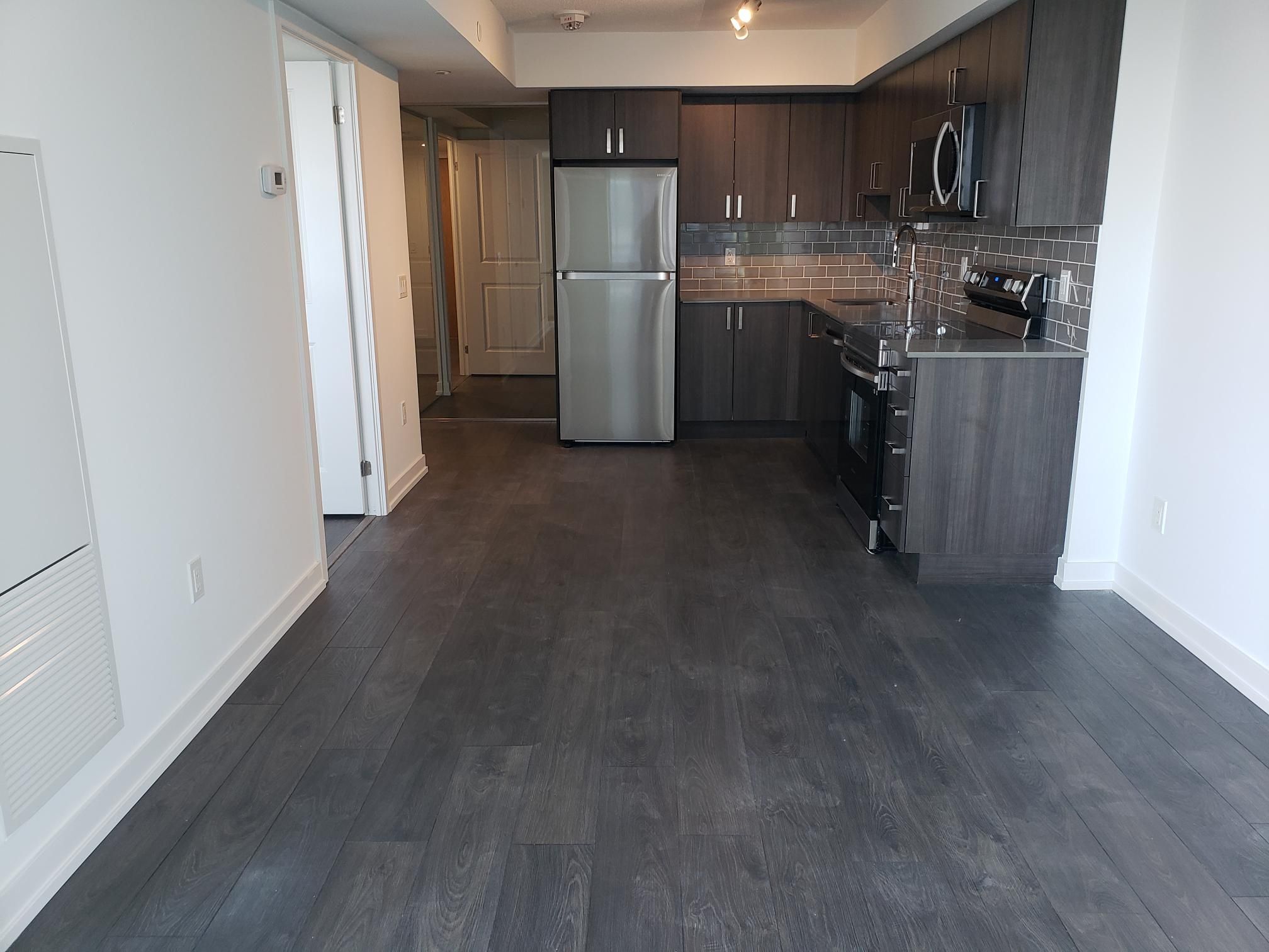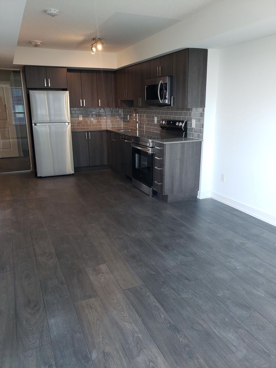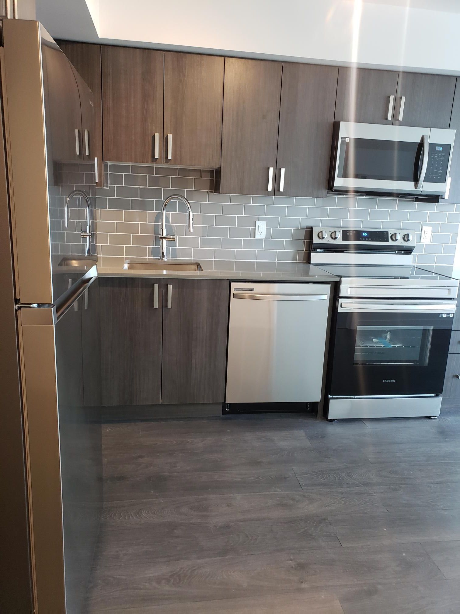 Brand New first time offered 1+ 1 bedroom suite. Total indoor area of 700 plus square feet and open balcony. The kitchen is modern includes a Quartz countertop and boasts Stainless Steel appliances. The open concept design has beautiful laminate flooring, equipped with a Samsung full size front load washer and dryer. The Master bedroom has a 4pc ensuite washroom. The City Tower also includes amenities such as a fitness room, yoga room, lounge, billiard room, a multi-purpose lounge/boardroom/bar and pet spa on the ground Level. 7th floor has a swimming pool and a barbecue area. The Building has concierge service and lots of spots for guest parking. Within walking distance to the go station and minutes to the Hwy, this location has it all.Fridge, Stove, Microwave Rangehood, Dishwasher, Washer And Dryer, Laminate Flooring, Modern Kitchen, Open Balcony