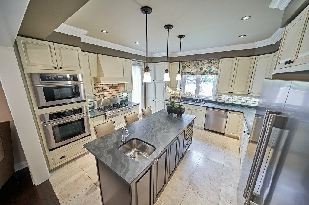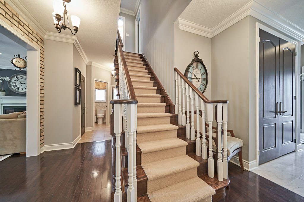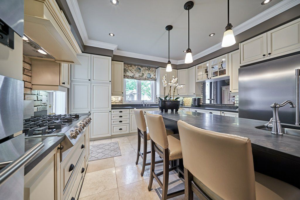This stunning Esquire-built home is meticulously maintained & beautifully upgraded with timeless finishes! 4 gas fireplaces, including a 2-sided one btwn primary bdrm & ensuite; crown moulding everywhere but basement & laundry; 9' ceilings on main floor & 8.5' in bsmt; custom kitchen boasts huge island with bar sink, 6' fridge/freezer combo, 6-burner gas cooktop, B/I oven, microwave & dishwasher, Brazilian slate counters & limestone floors; generous family room with B/I bookcases & double garden doors to backyard; custom closet organizer; impressive door hardware; pot lights in living room, family room, kitchen, gym & rec room; professionally finished basement with spacious, spa-like bath, recreation room & large gym (heated floors in bath & rec rm); 2' extra depth in garage, plus mezzanine storage; custom landscaping, with putting green, water feature & patio in backyard; interlocking 4-car driveway & stone terrace in front yard; roof shingles replaced in 2021; & much more!Lennox furnace; central air conditioner; central vacuum & accessories; garage door opener & remote; landscape lighting; irrigation system (front & back); all closet organizers; all bathroom mirrors.