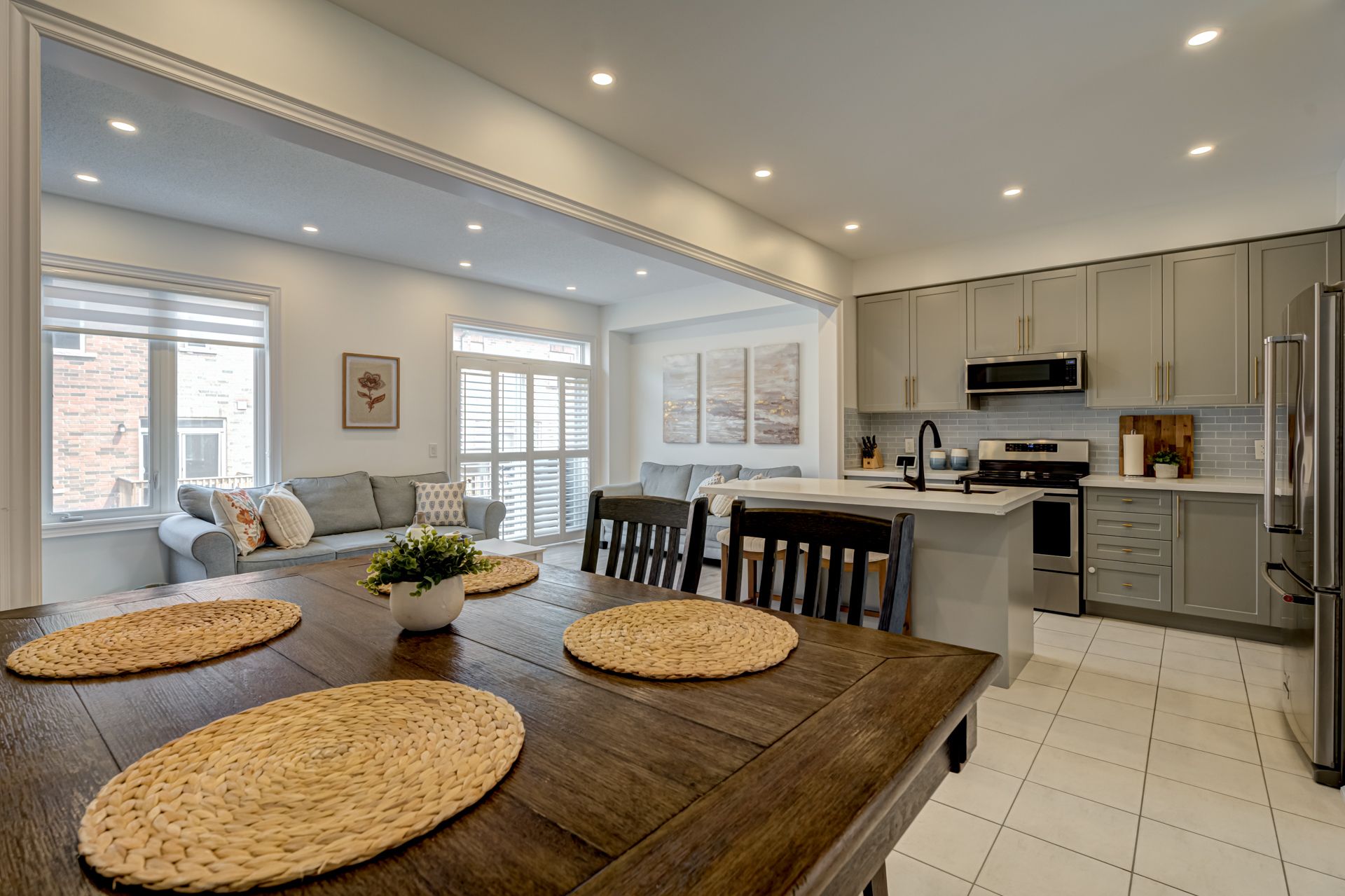 Welcome to 1714 Jade Street in the highly sought after community. This Beautiful free hold town home has over 2100 sq ft of living space, features an open concept living With 3 bedrooms & 4 baths. Move-In Ready. Bright open concept designer kitchen W/ Granite counter w/extended Cabinets and deep upgraded sink , Large family room with W/O to balcony, recreational room with added 3 piece bathroom which can be used as 4th bedroom, 9' Ceilings, Pot lights, Oak Staircase. Primary bedroom has walk-in closet and 3 pcs Ensuite. Minutes to shopping center, place of worship (Pickering Community Baptist Church and Pickering Islamic Centre), minutes from trails, parks.All ELFs, window covering, Stainless steel appliances in Kitchen, washer, Dryer.