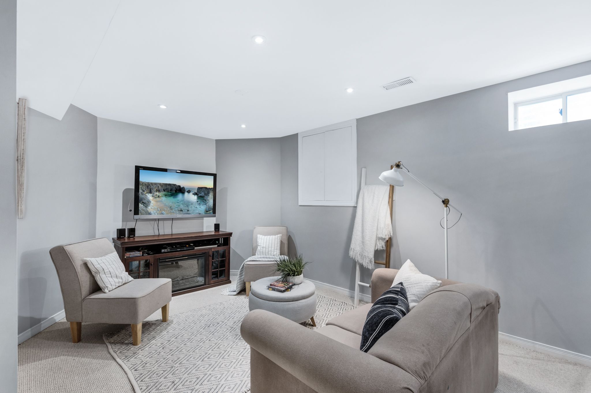 Broadloom Pot Lights Above Grade Window