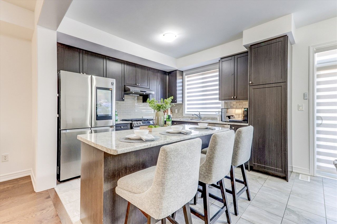 Well Maintained & Spacious 4 Beds Freehold Townhouse Located In A Sought After Family Neighbourhood. The Main Floor Features An Open Concept Living & Dining Which Leads Into A Stunning Kitchen. Hardwood Floor Throughout Main Level. Master Bed Retreat W/ Over-Sized 5 Pcs En-Suite, Massive W/I Closets & Large Windows For Plenty Of Natural Light. Stained Oak Staircase W/ Wrought Iron Spindles, Backsplash & S/S Appliances In Kitchen. Front Loading Washer & Dryer. 3Pc Rough-In In Basement For Future Bathroom. Close To Seaton Hiking Trail, Mins To Pickering Town Centre, Schools, Go Station, Hwy 401/ 407 & Smart Centre. Walking Distance To Parks, School Bus Services & Etc. A Must See!!All Existing Light Features, S/S Fridge, S/S Gas Stove, S/S B/I Dishwasher, S/S Range Hood, Front Load Washer & Dryer, Central A/C, G/D Opener & All Window Coverings.