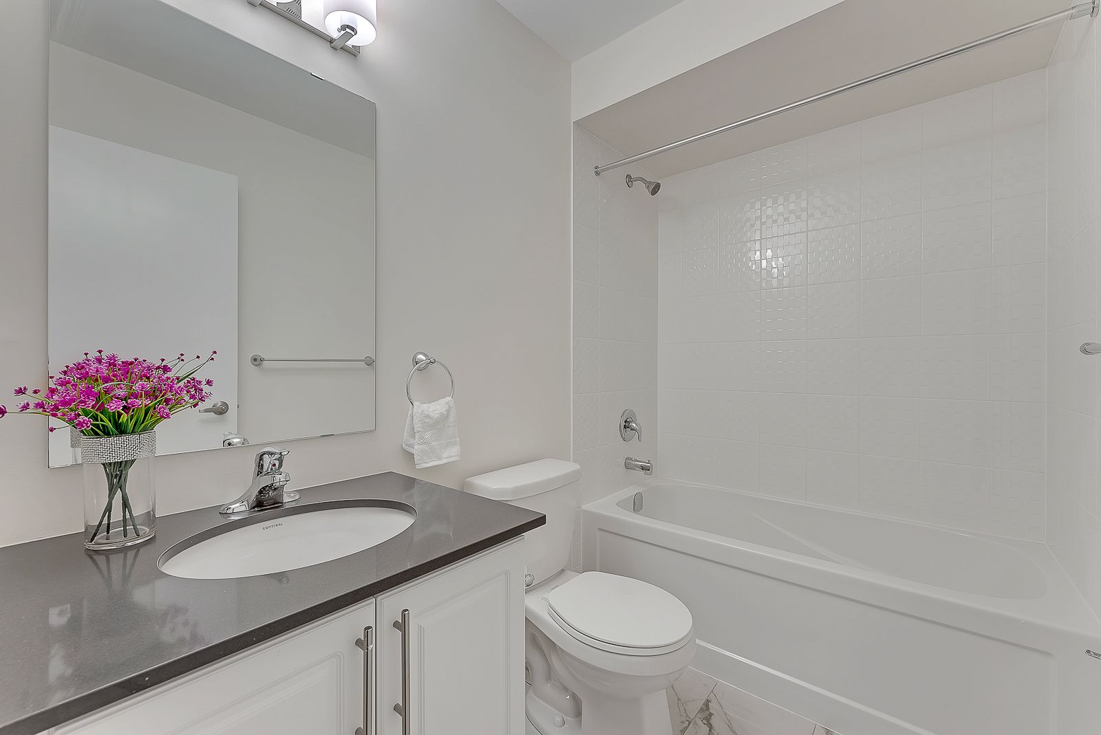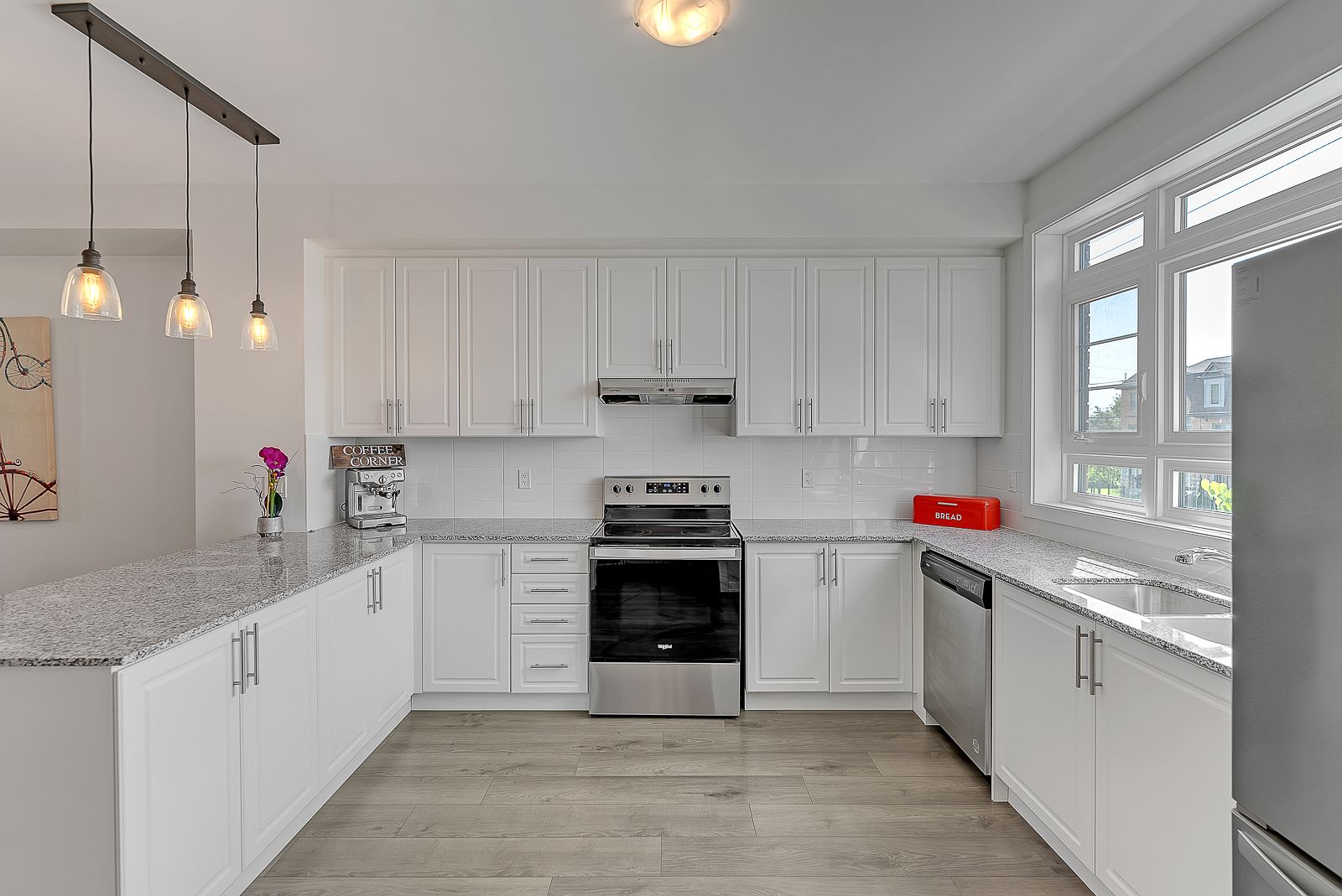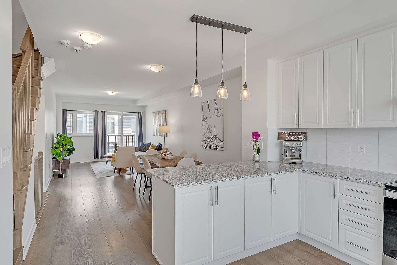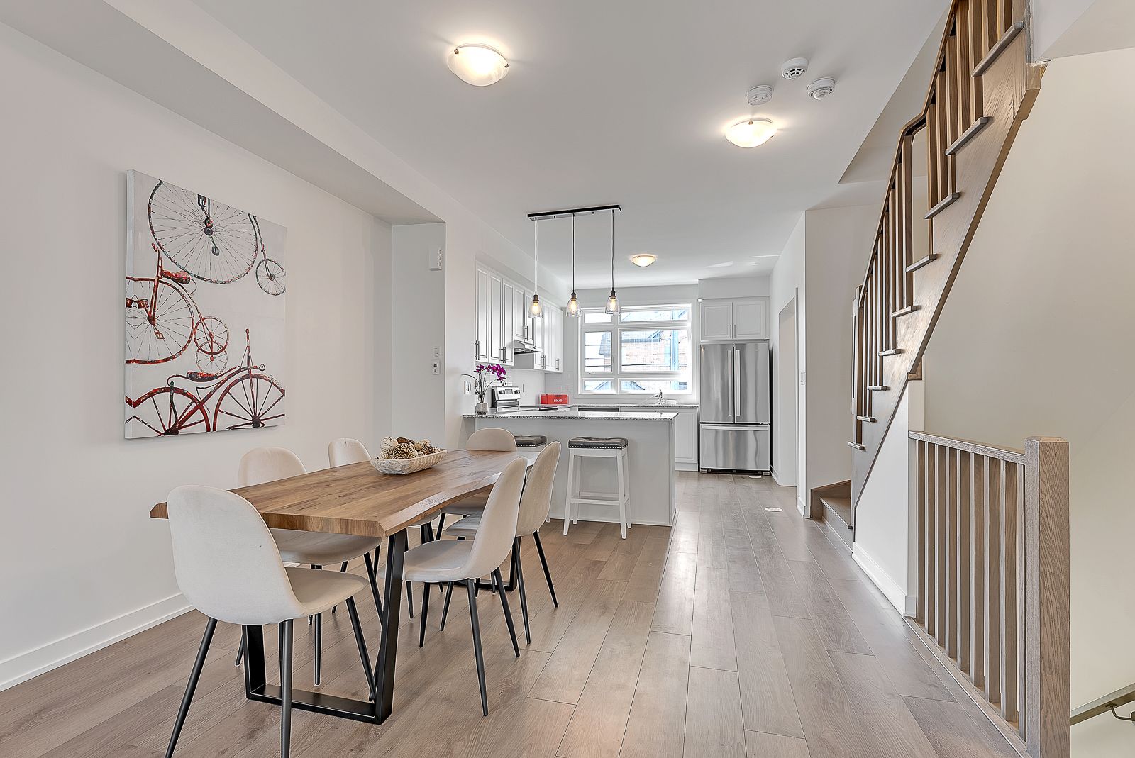 Beautiful open concept modern townhome located in Rouge Park Pickering. It features 3 bedrooms & 3 bathrooms along with a 2-car tandem garage! It boasts 9 ft ceilings & a bright and spacious living room with w/o to terrace with BBQ gas line. Large kitchen with granite countertops, breakfast bar & stainless steel appliances. Primary bedroom features a walk-in closet & stunning ensuite. Surrounded by nature & close to top rated schools, parks, hwys 401 & 407.Stainless Steel Appliances: Fridge, Stove, Dishwasher, Hood Range Fan. Stacked Washer & Dryer.
