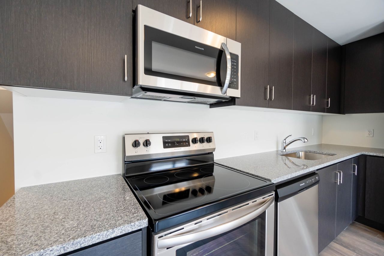 Welcome to Maxx Urban Towns! Discover contemporary living in this brand new, never lived in, spacious stacked townhouse in prime Pickering. With an open concept kitchen, a large balcony, and 9' ceilings, this unit is perfect for entertaining. The kitchen features granite countertops and stainless steel appliances. 2 Large bedrooms and even a balcony in the primary bedroom. Free high-speed internet is included. Located next to Pickering Golf Course and Creekside Park, with easy access to the 401, Pickering Go Station, Restaurants, tons of surrounding parks, big box stores and more!S/S Fridge, S/S Stove, Built In Dishwasher, Microwave, Washer And Dryer, Internet included, One Parking.