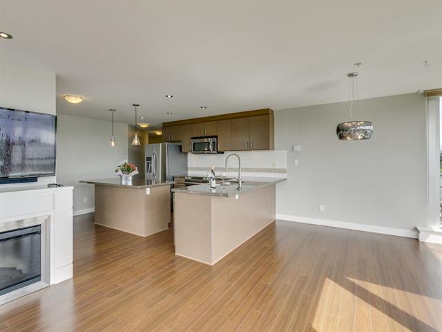 SOLARIS - Large 5th floor, 3-BDR/ 2BTH Corner unit. Air Cond. S.E. exposure with Featured Parquet Flooring on sundeck facing morning Sun & Stunning views of Mount Baker & Golden Ears Mountains. All glass floor to ceiling soundproof windows, deluxe kitchen with granite counter tops and tile back splash, upgraded Lighting, New Deluxe S.S. Fridge, Stove & Dishwasher. Large Pantry. Built in Washer & Dryer, laminate floors, fireplace in living room, Master Bdrm with large double closet, 5-piece en-suite with soaker tub and large separate shower. 4-piece Main Bath. California Closets & Black out blinds. New Paint. 5 minute walk to community centre library, transit, shopping, park & West Coast Express. Laser Measured, Drone & Virtual Toured. this home is pre-inspected report is available.