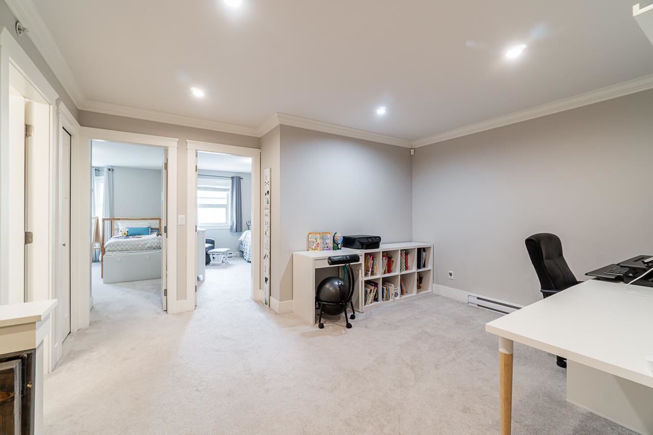 Your family will love living at Brogden Brown, a centrally located family friendly complex. Enjoy your open plan living space with kitchen/dining and family room. Grey and white modern finishes include quality finishes with 9 ft. ceilings, crown moulding and tasteful fireplace surround built-ins. Double bonus with a large powder room on the main floor and private fenced in yard! Room for everyone in this home with a large primary, walk-in closet, 4 piece ensuite including a relaxing soaker tub! Additional bedrooms are large and feature large closets. A flex space upstairs is perfect for a play area or home office. Well thought out storage solutions include under stair closets and a double garage. Enjoy your new community with short walks to schools, shops, transit and highway access.